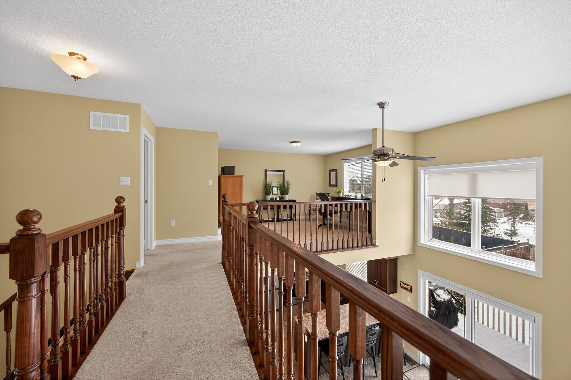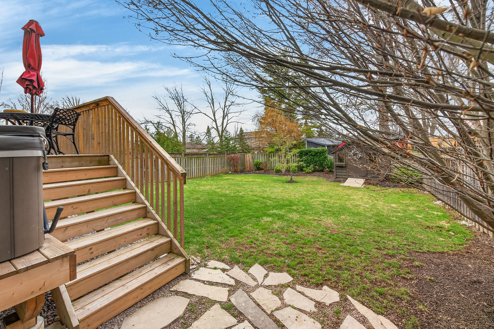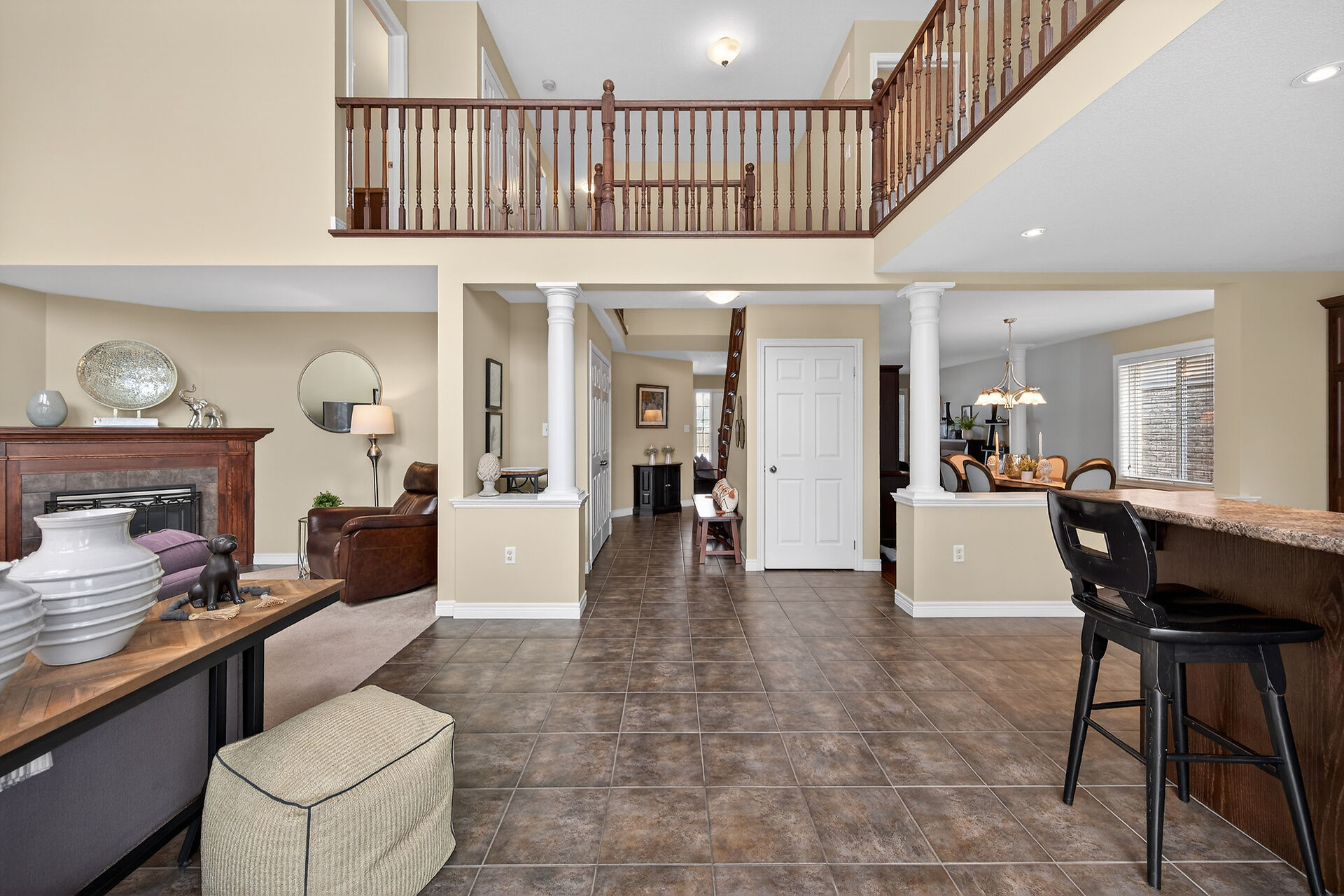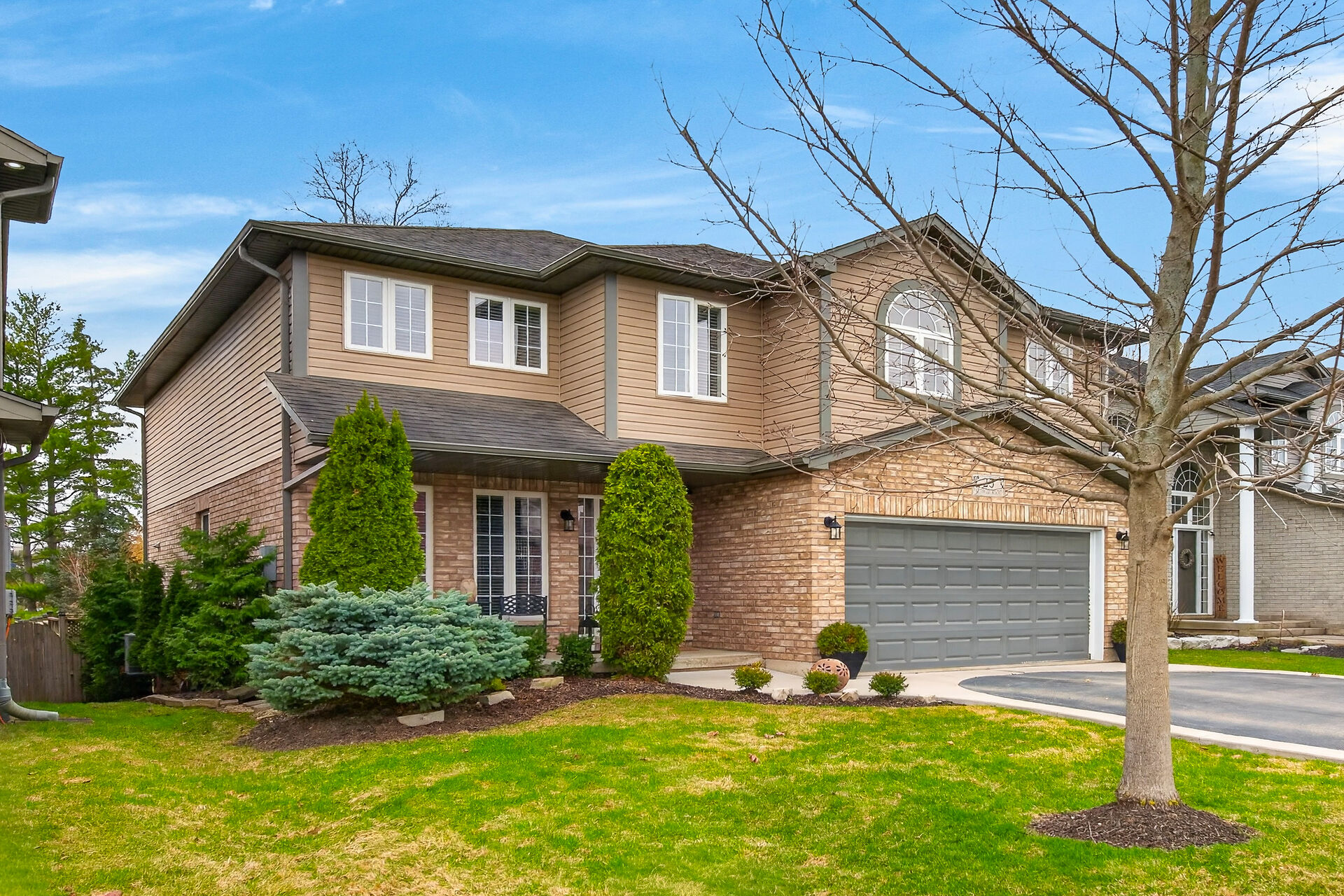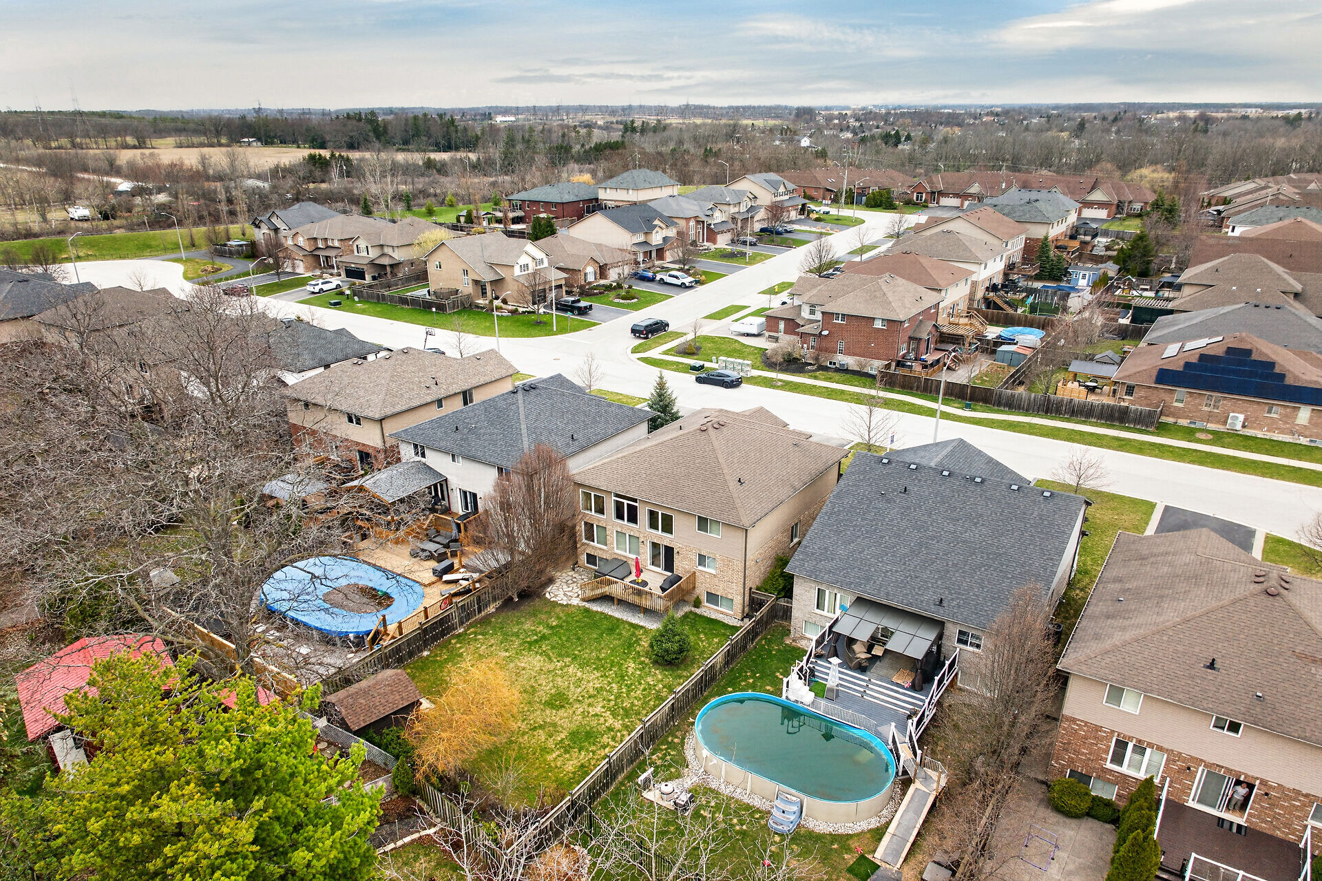 Welcome to this meticulously maintained home with a sophisticated open-concept layout. The family room features impressive two-story south-facing windows, filling the space with natural light, along with a gas fireplace. The main floor offers a formal living & dining area, a chef's kitchen with dinette, powder room, main floor laundry, garage access & patio doors to the back deck. Upstairs are three generous bedrooms, a versatile loft, main bath, & a primary suite with walk-in closet & spa-like ensuite. The insulated basement offers future potential with large windows & a bathroom rough-in. Enjoy the fully fenced, landscaped yard with deck, hot tub, and shed, all in one of Caledonia's most desirable neighbourhoods.