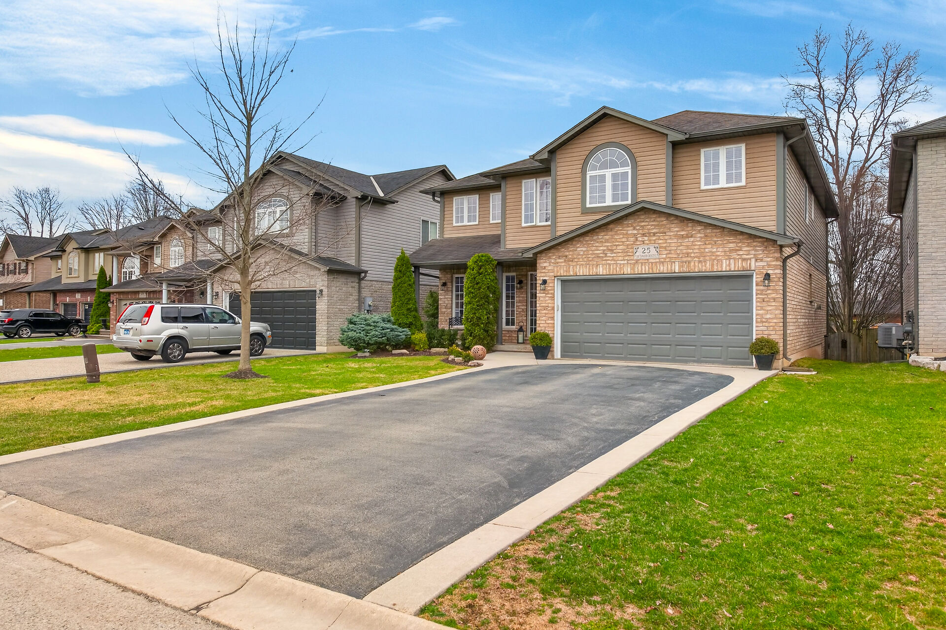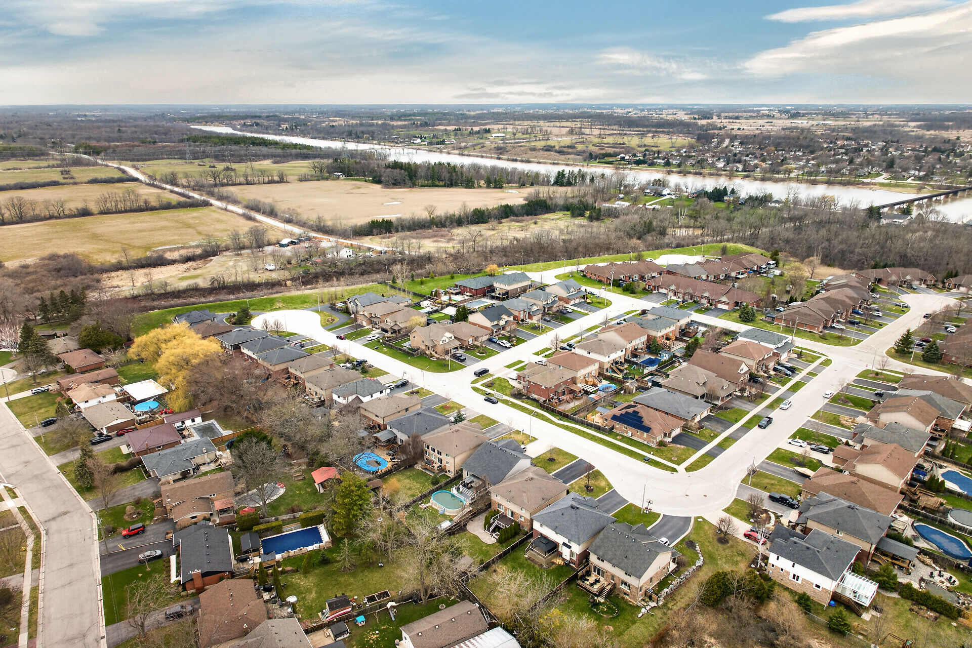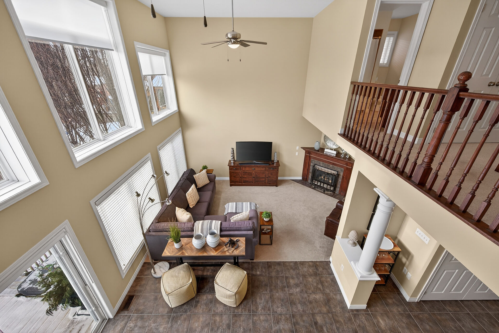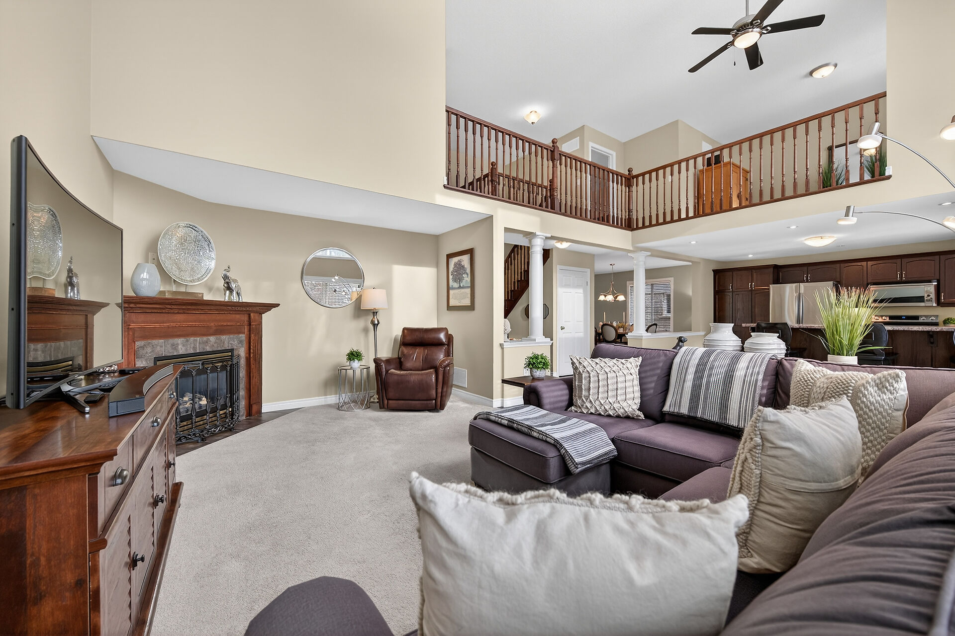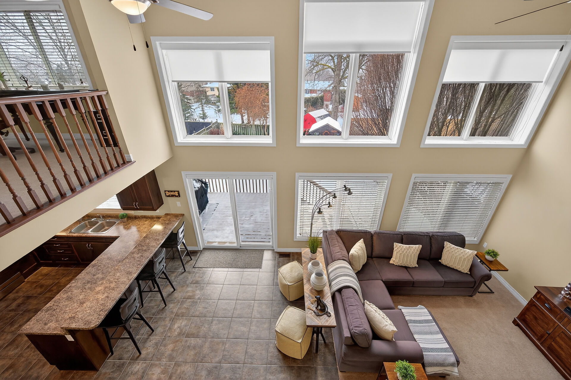 Welcome to this meticulously maintained home with a sophisticated open-concept layout. The family room features impressive two-story south-facing windows, filling the space with natural light, along with a gas fireplace. The main floor offers a formal living & dining area, a chef's kitchen with dinette, powder room, main floor laundry, garage access & patio doors to the back deck. Upstairs are three generous bedrooms, a versatile loft, main bath, & a primary suite with walk-in closet & spa-like ensuite. The insulated basement offers future potential with large windows & a bathroom rough-in. Enjoy the fully fenced, landscaped yard with deck, hot tub, and shed, all in one of Caledonia's most desirable neighbourhoods.