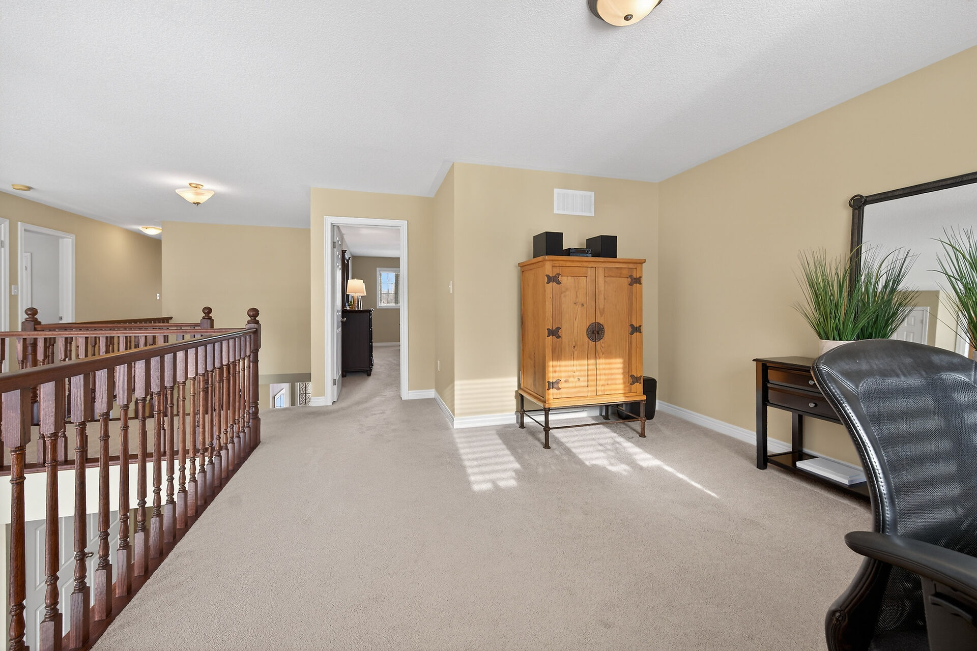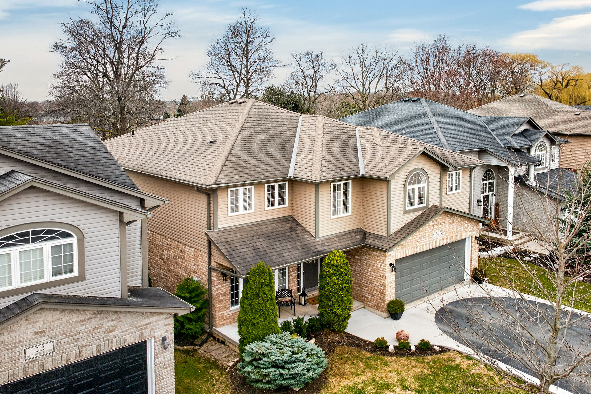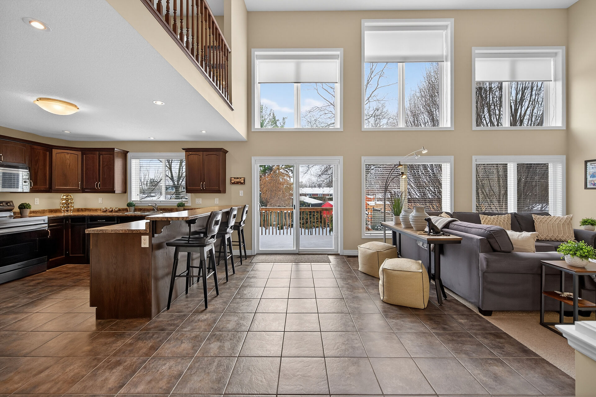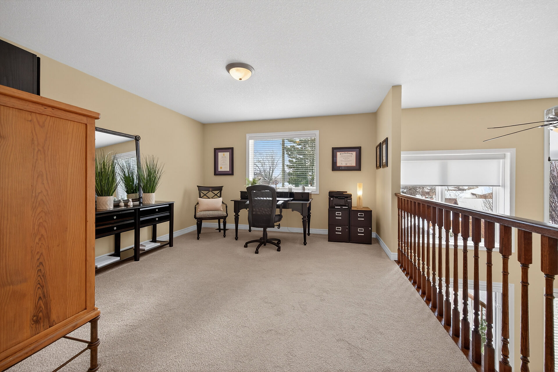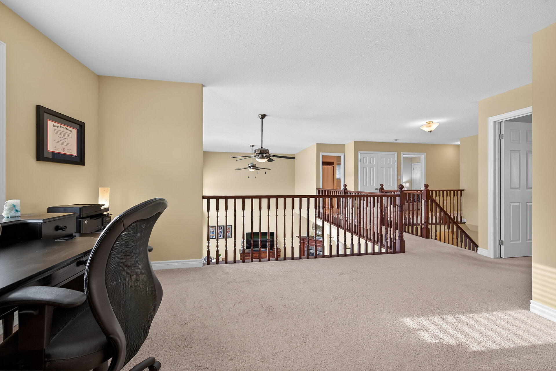 Welcome to this meticulously maintained home with a sophisticated open-concept layout. The family room features impressive two-story south-facing windows, filling the space with natural light, along with a gas fireplace. The main floor offers a formal living & dining area, a chef's kitchen with dinette, powder room, main floor laundry, garage access & patio doors to the back deck. Upstairs are three generous bedrooms, a versatile loft, main bath, & a primary suite with walk-in closet & spa-like ensuite. The insulated basement offers future potential with large windows & a bathroom rough-in. Enjoy the fully fenced, landscaped yard with deck, hot tub, and shed, all in one of Caledonia's most desirable neighbourhoods.