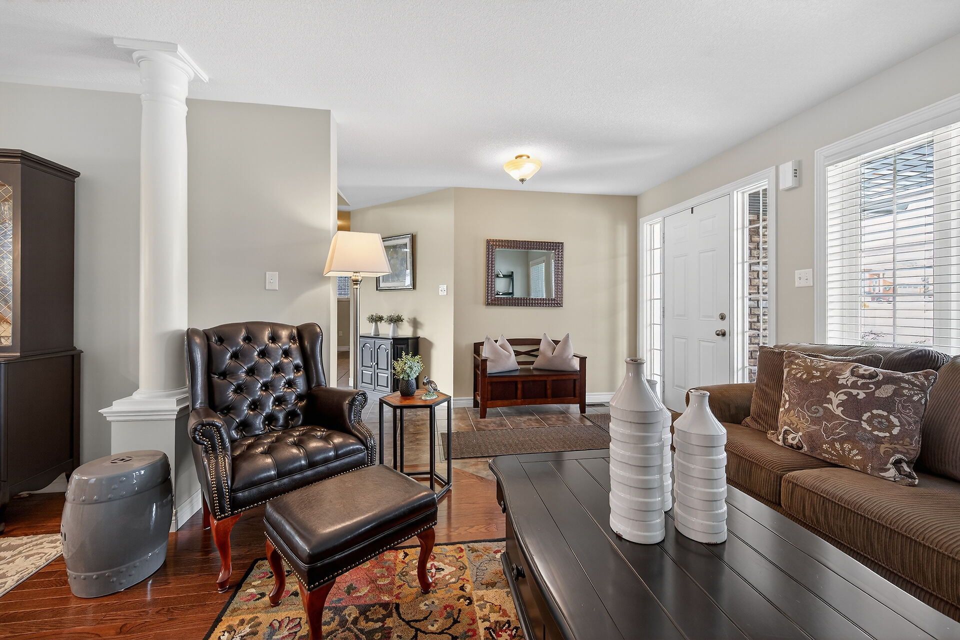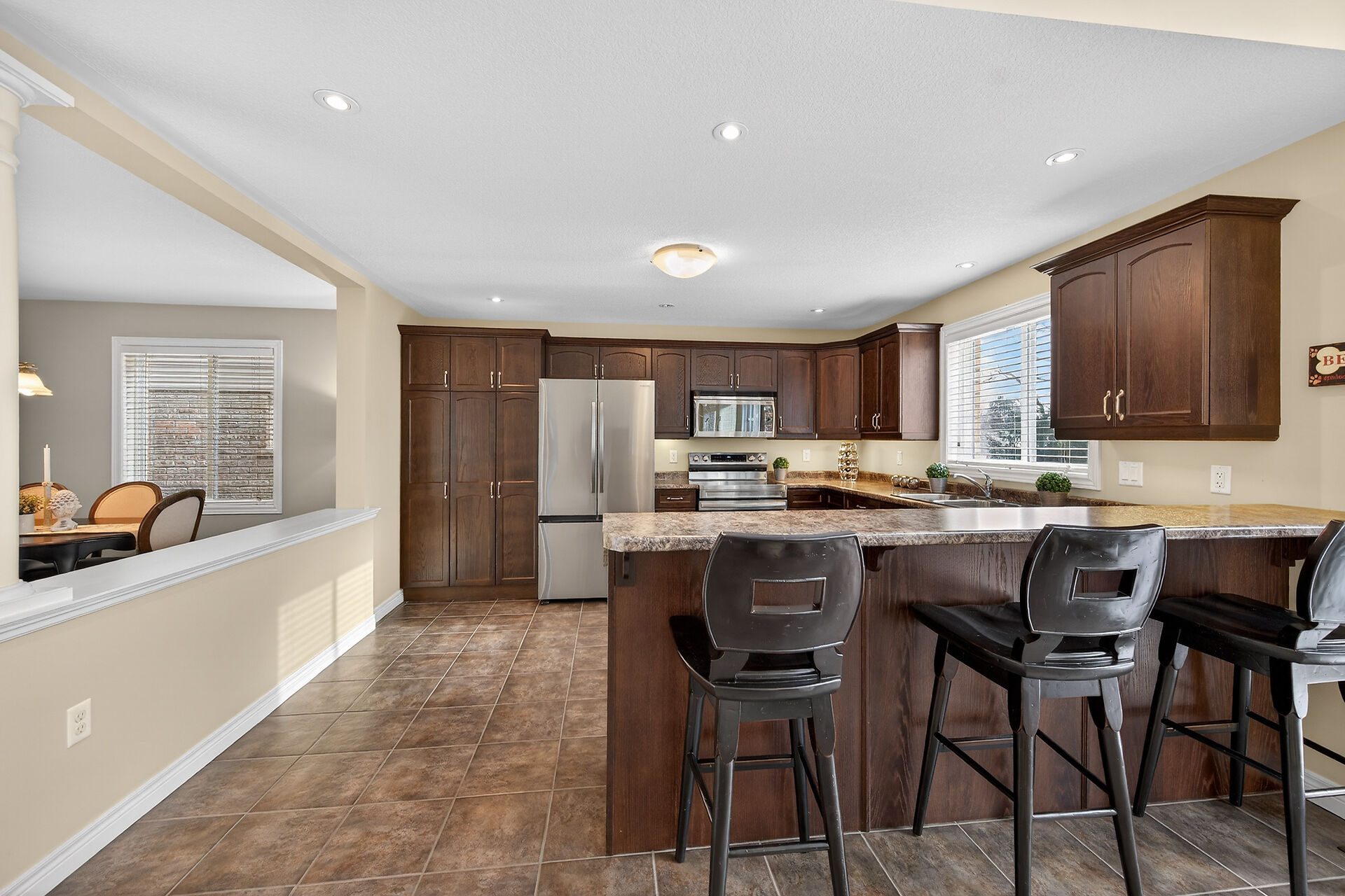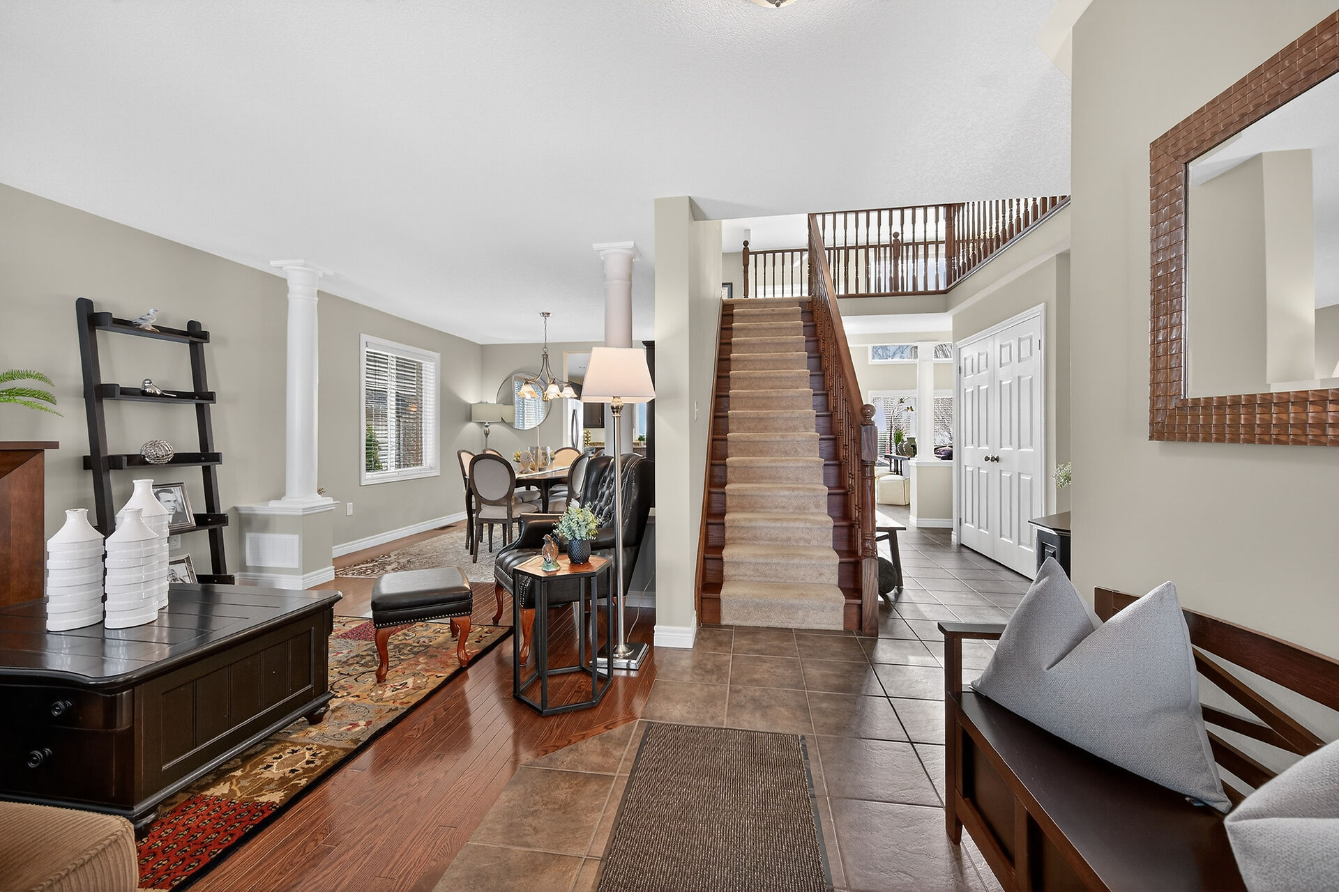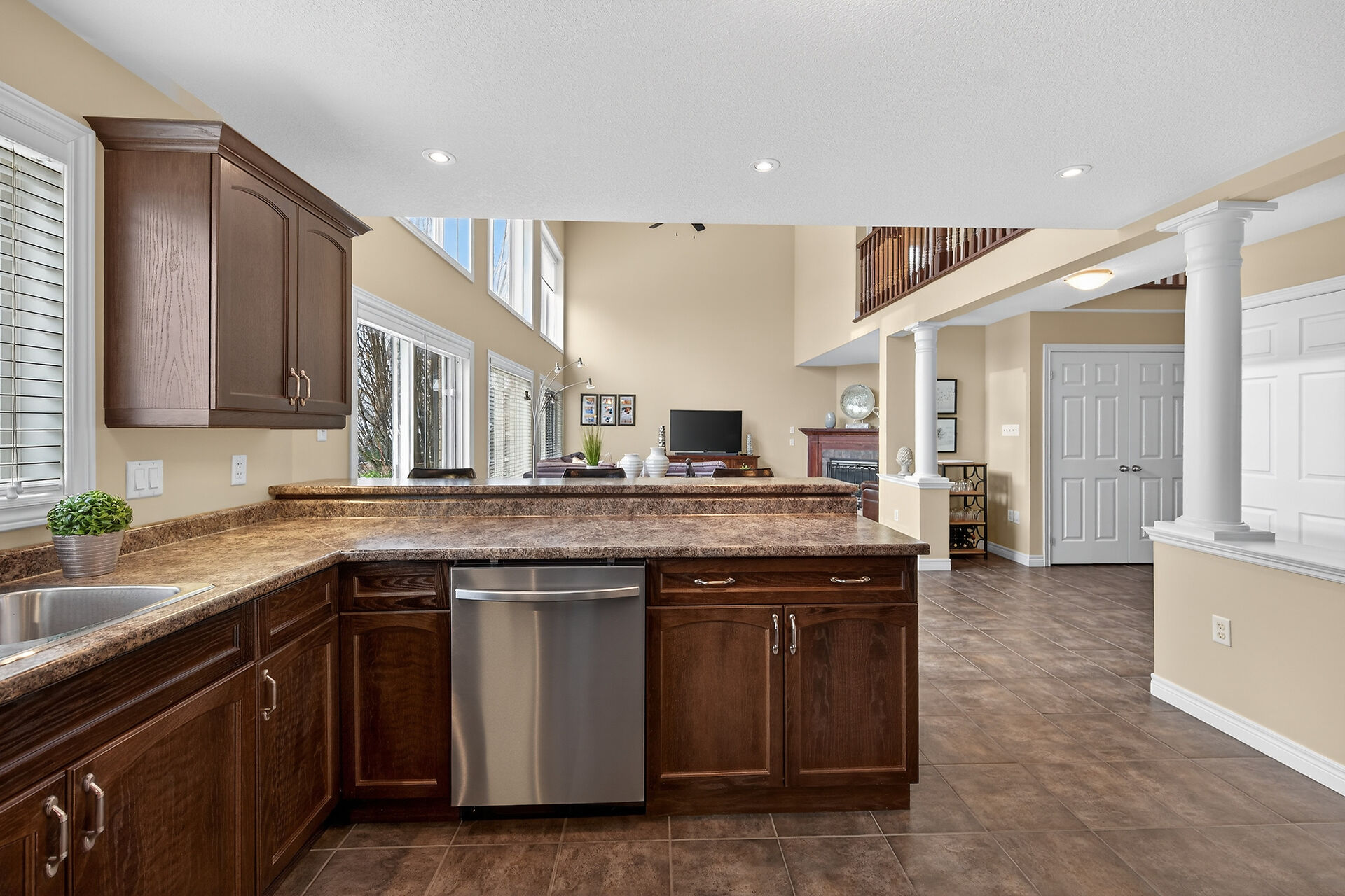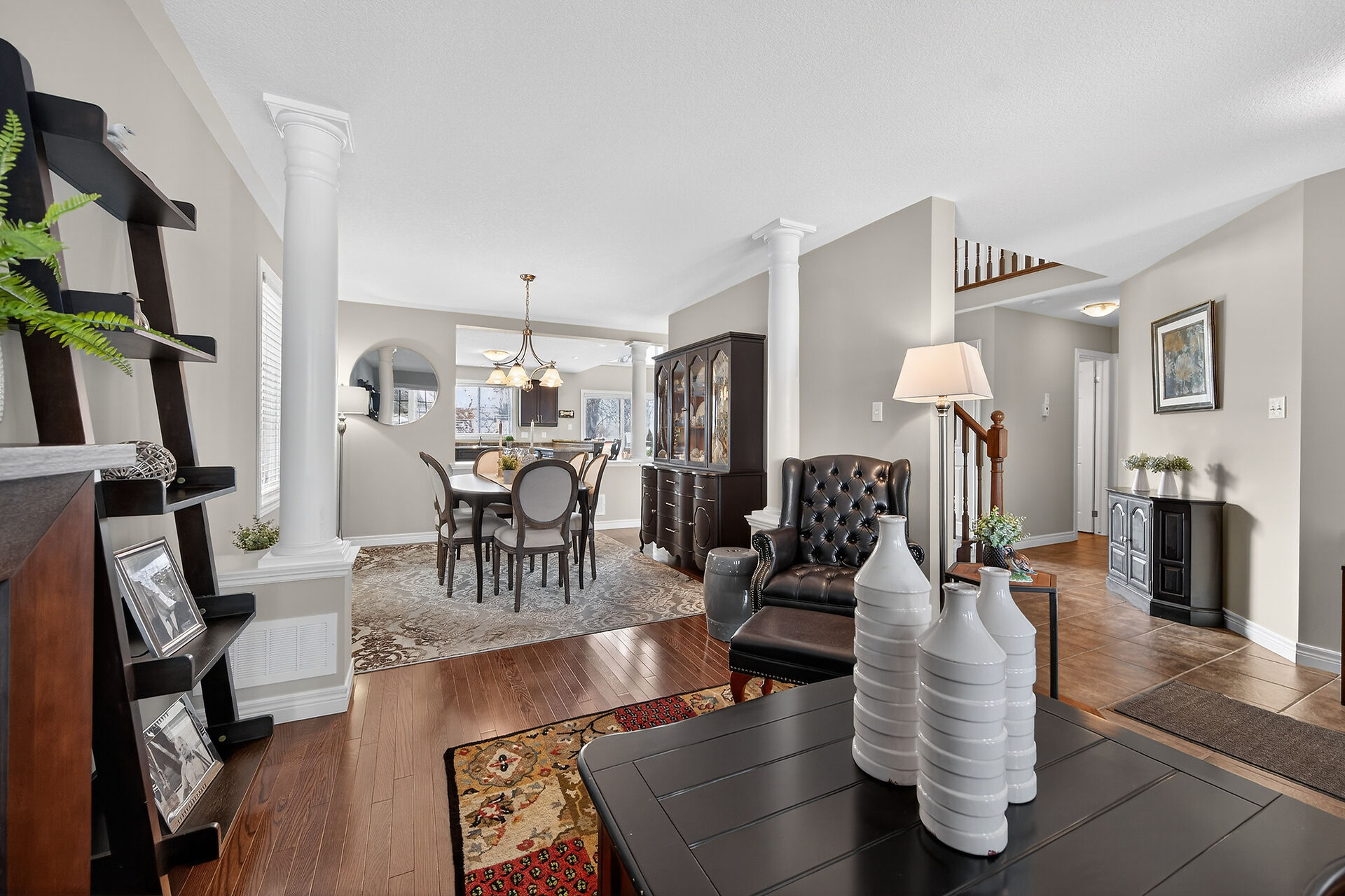 Welcome to this meticulously maintained home with a sophisticated open-concept layout. The family room features impressive two-story south-facing windows, filling the space with natural light, along with a gas fireplace. The main floor offers a formal living & dining area, a chef's kitchen with dinette, powder room, main floor laundry, garage access & patio doors to the back deck. Upstairs are three generous bedrooms, a versatile loft, main bath, & a primary suite with walk-in closet & spa-like ensuite. The insulated basement offers future potential with large windows & a bathroom rough-in. Enjoy the fully fenced, landscaped yard with deck, hot tub, and shed, all in one of Caledonia's most desirable neighbourhoods.