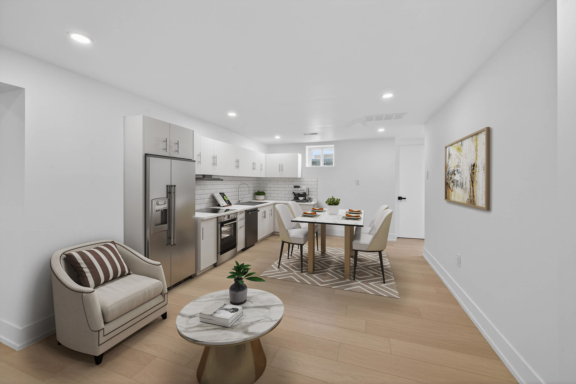 Welcome to 124 Corman Ave. Fully renovated with all Building permits and ESA certificate. Surrounded by custom million dollar homes! Almost 2,000 square feet of living space. Spacious 3+2 bedrooms and 2 full bathrooms. Everything new within last few months 2025- 1 inch city water line, 100 AMPS electrical, plumbing, custom kitchen with quartz counter tops and backsplash, led pot lights, 2 full bathrooms, all windows and doors, custom trim work, all baseboards and casing, S.S appliance package included, high efficiency Gas furnace, AC unit, Water heater (all owned with warranty), list goes on! Updated sump pump for piece of mind, fully fenced, 141.50 feet deep corner lot. Enjoy the wood burning fireplace!