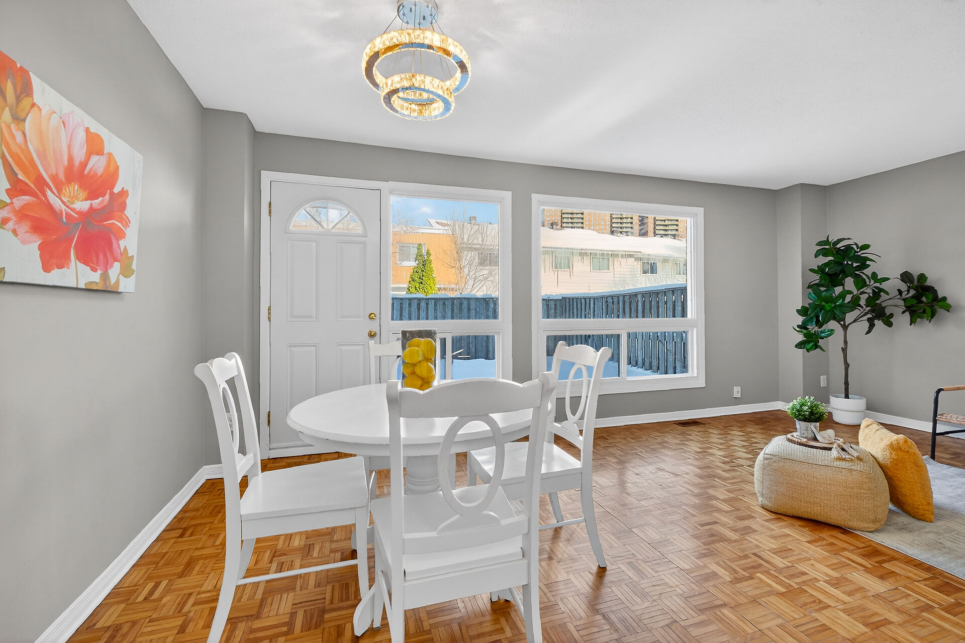 Affordable 4 bed, 1.5 bath townhome condo offers generous room sizes & space for the whole family. Bright, open main level with foyer, galley style kitchen with a new dishwasher & microwave/hood fan & located conveniently adjacent to the eating area Spacious living room with large windows & access to the fully fenced backyard & powder room. The 4 bedrooms, located on 2nd level are great sized, including a huge primary bedroom, each with loads of closet space. A full bathroom completes the upper level. The lower level boasts lots of storage space, a laundry area, and a large L-shaped rec room space. Carpet free home. New light fixtures, new garage door & freshly painted. 1 vehicle garage. Amazing location!