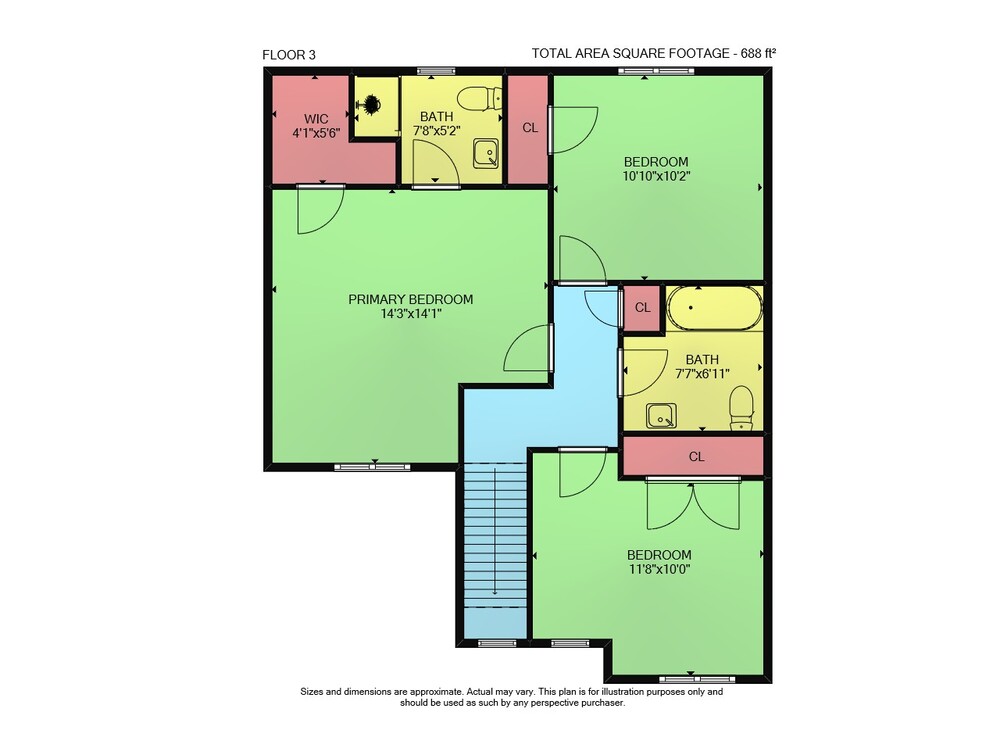 Floor 2: 560 sq ft, Floor 3: 688 sq ft, Floor 1: 507 sq ft