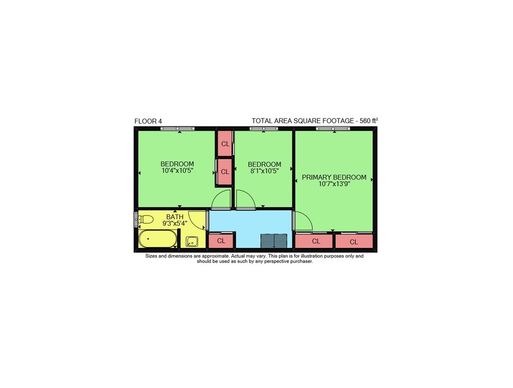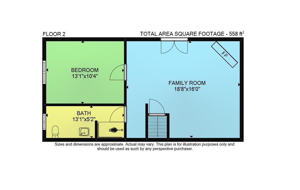 Floor 3: 736 sq ft, Floor 4: 560 sq ft, Floor 2: 558 sq ft, Floor 1: 796 sq ft