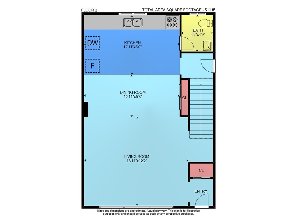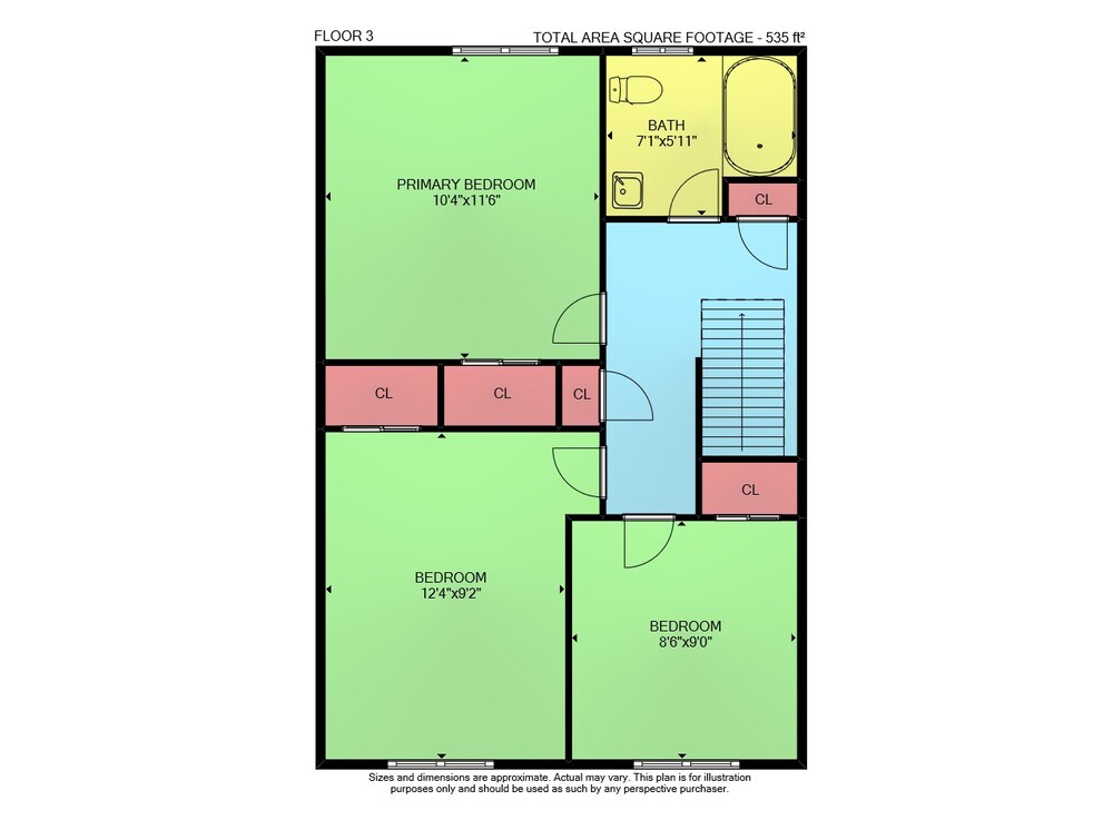 Floor 2: 511 sq ft, Floor 3: 535 sq ft, Floor 1: 500 sq ft