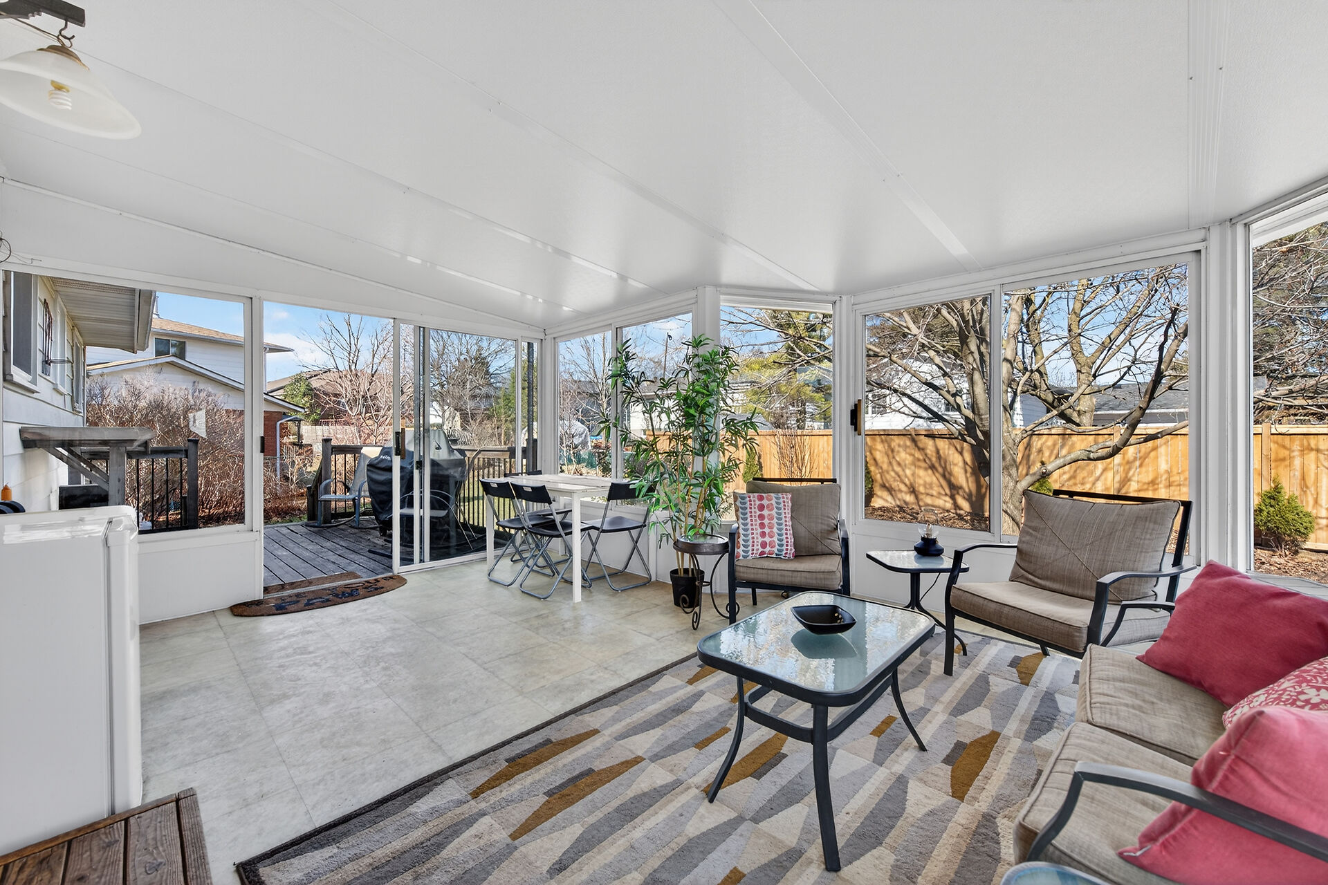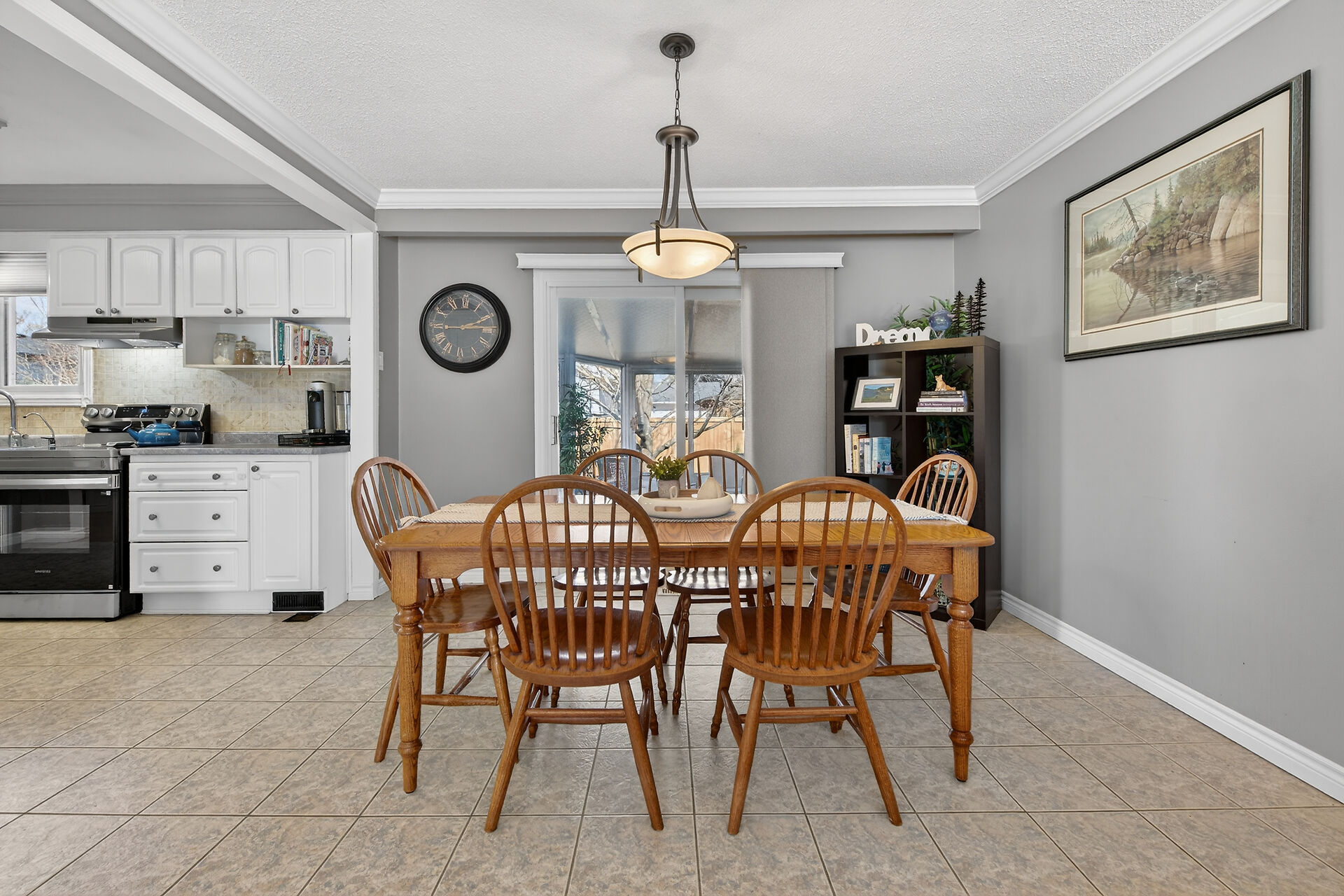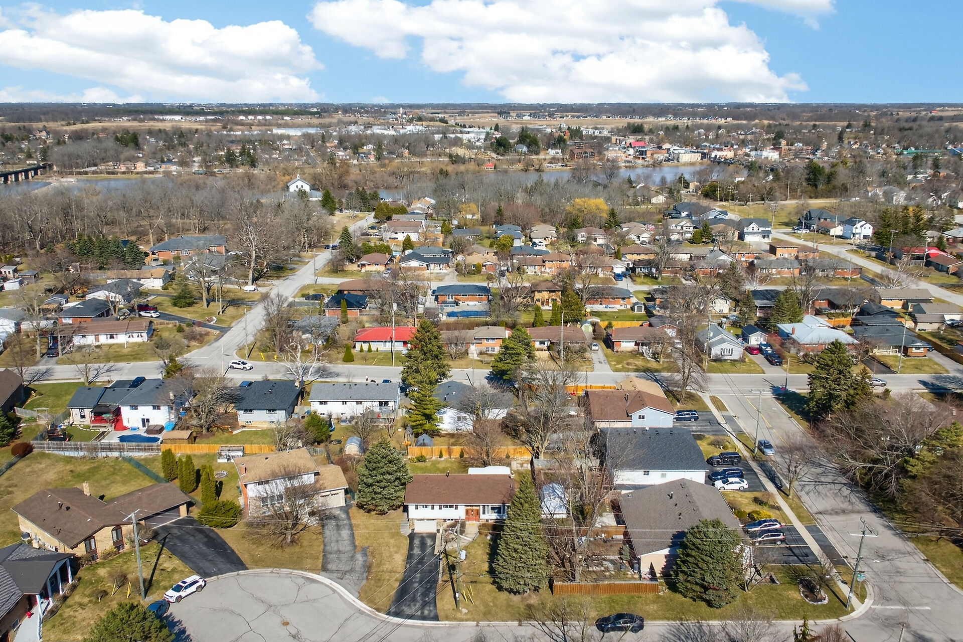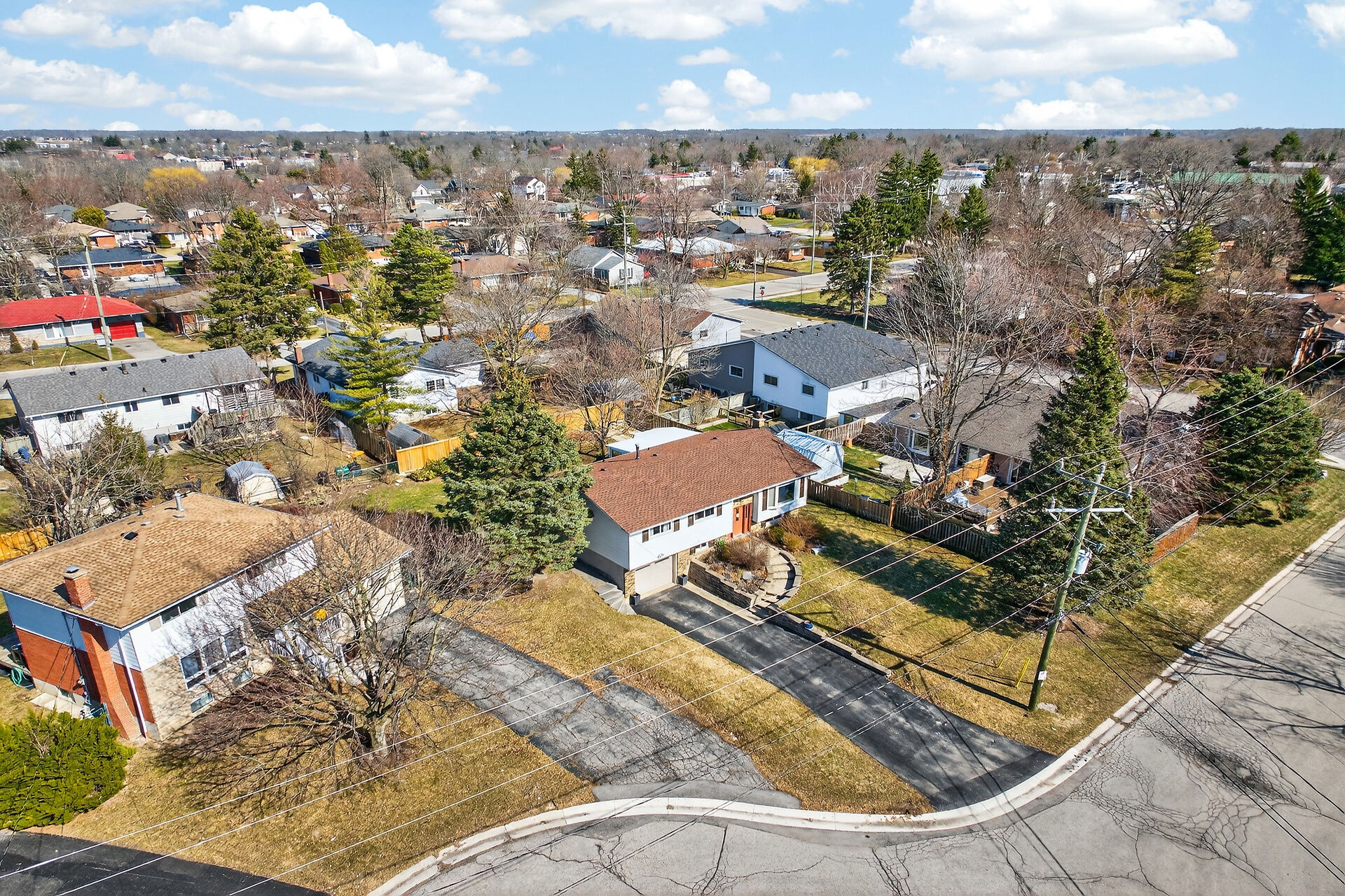 Nestled on an oversized pie-shaped lot, this well-maintained raised bungalow offers space & style. The welcoming entry features wainscoting & opens to a bright living room with hardwood floors & a bay window. The dining area has sliding doors to a 3-season sunroom overlooking the backyard. The kitchen offers abundant white cabinetry & newer appliances. The main floor includes three bedrooms & a beautifully renovated bathroom. The lower level features a large family room with gas fireplace & above-grade window, a fourth bedroom, laundry/utility room, 2-pc bath and garage access. Parking for 4+1. Close to amenities, schools, parks, trails and the Grand River. Numerous updates completed (roof '22; furnace/a/c '21 etc.)