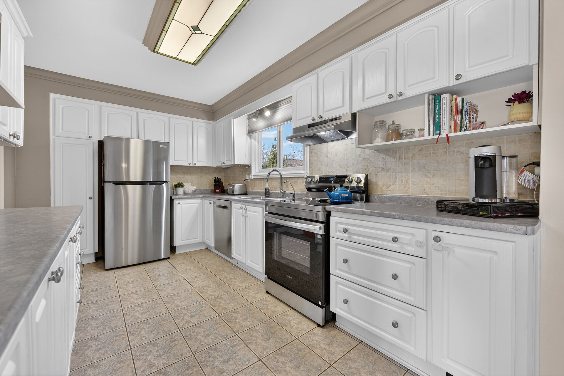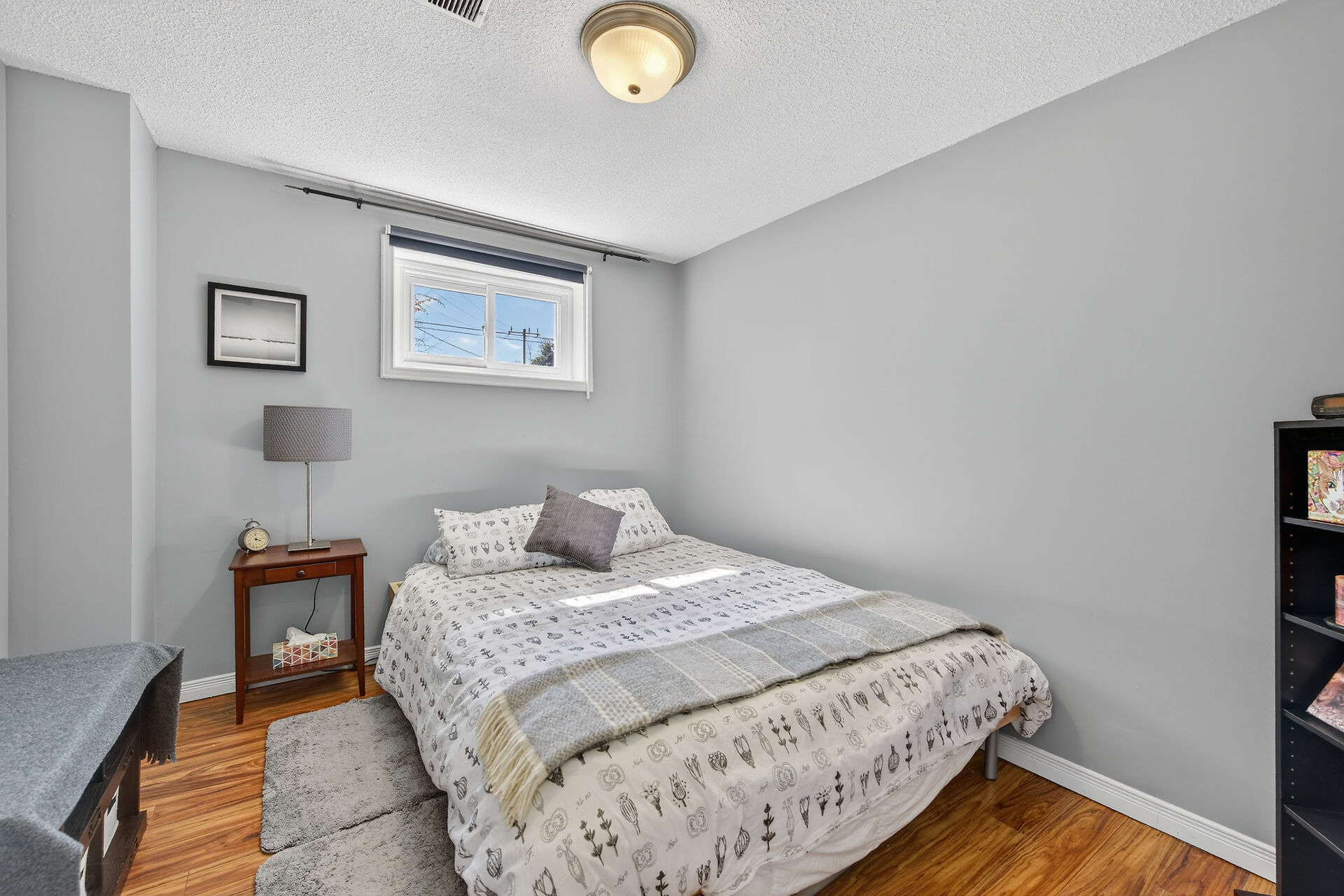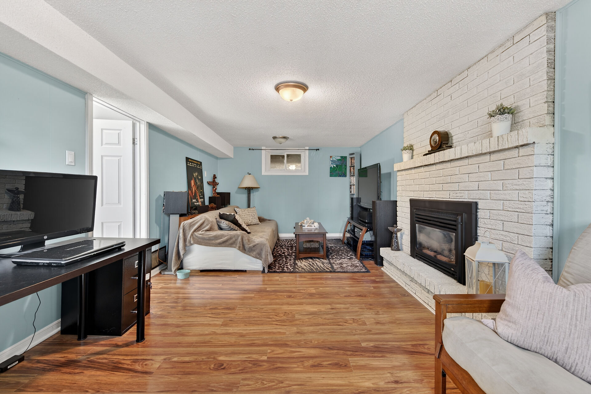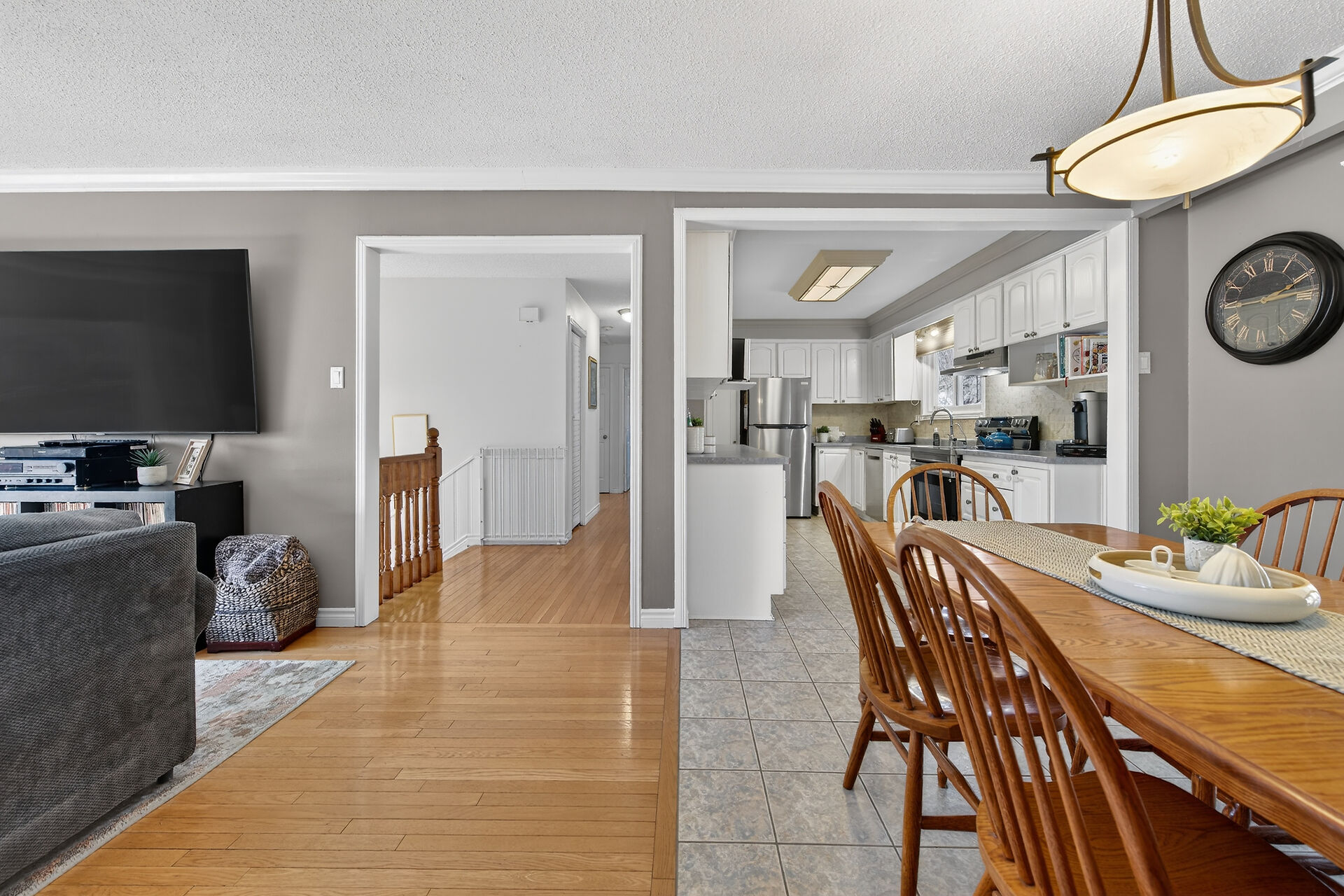 Nestled on an oversized pie-shaped lot, this well-maintained raised bungalow offers space & style. The welcoming entry features wainscoting & opens to a bright living room with hardwood floors & a bay window. The dining area has sliding doors to a 3-season sunroom overlooking the backyard. The kitchen offers abundant white cabinetry & newer appliances. The main floor includes three bedrooms & a beautifully renovated bathroom. The lower level features a large family room with gas fireplace & above-grade window, a fourth bedroom, laundry/utility room, 2-pc bath and garage access. Parking for 4+1. Close to amenities, schools, parks, trails and the Grand River. Numerous updates completed (roof '22; furnace/a/c '21 etc.)
