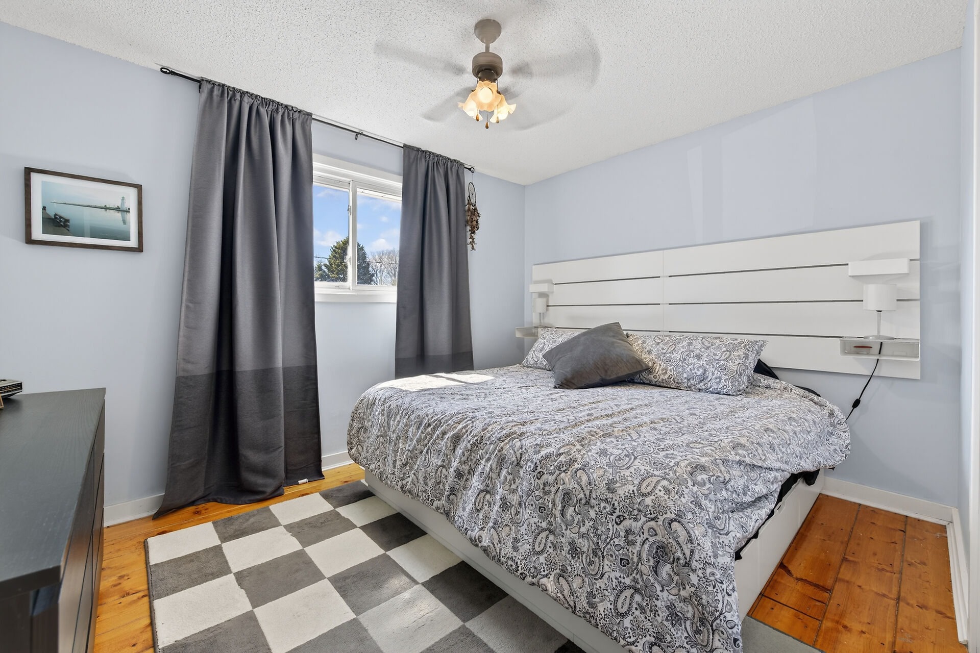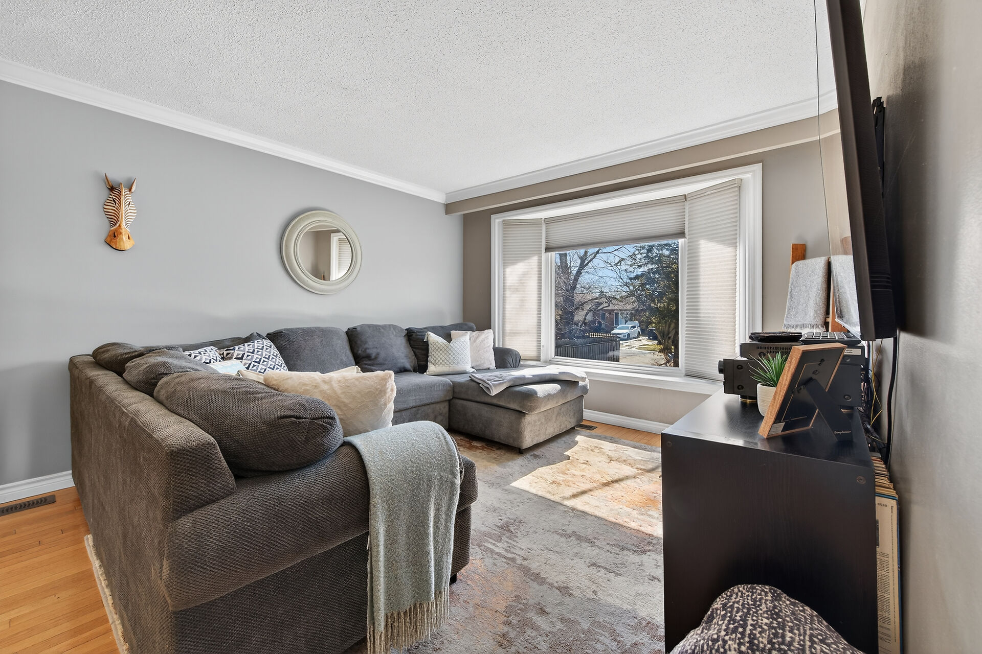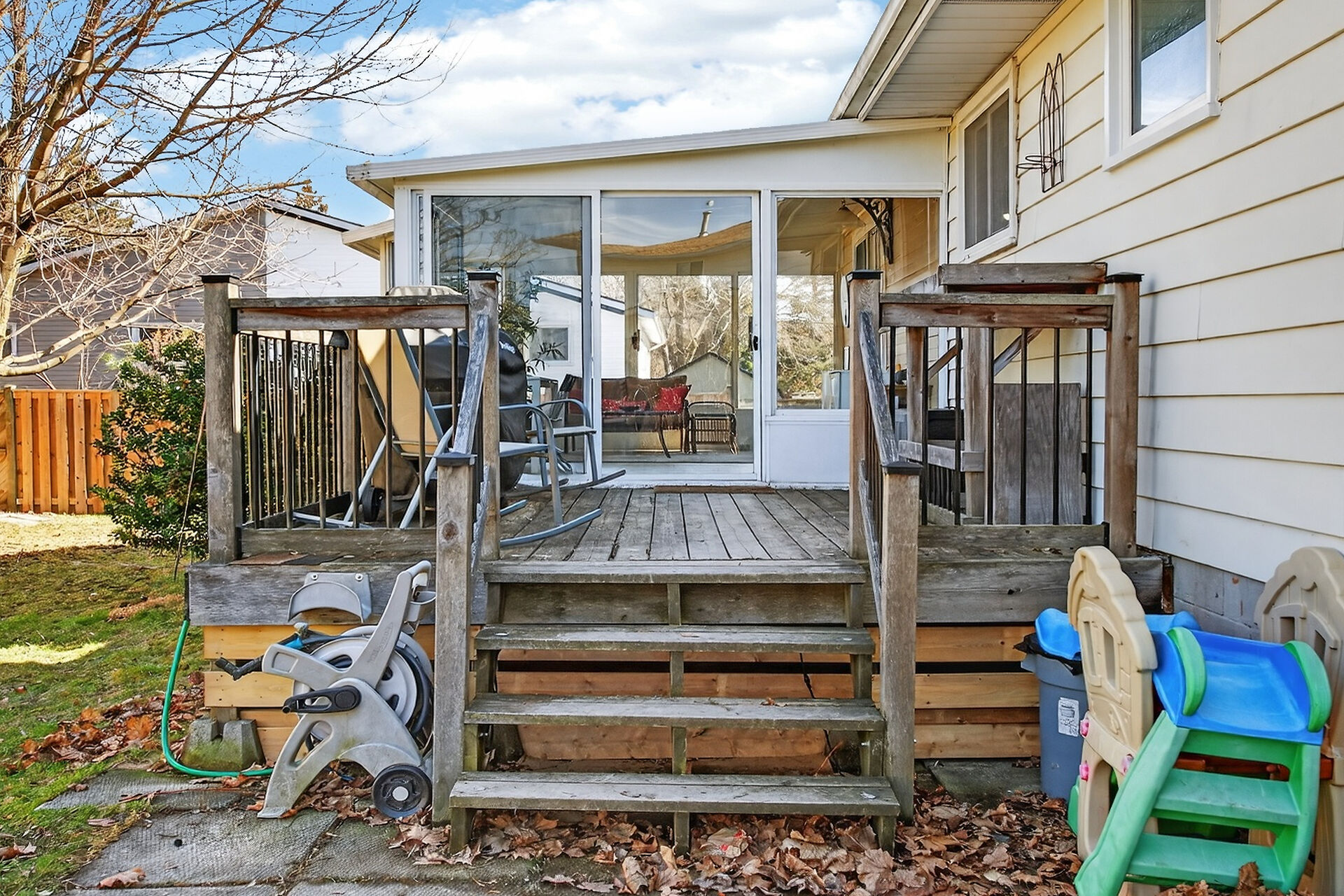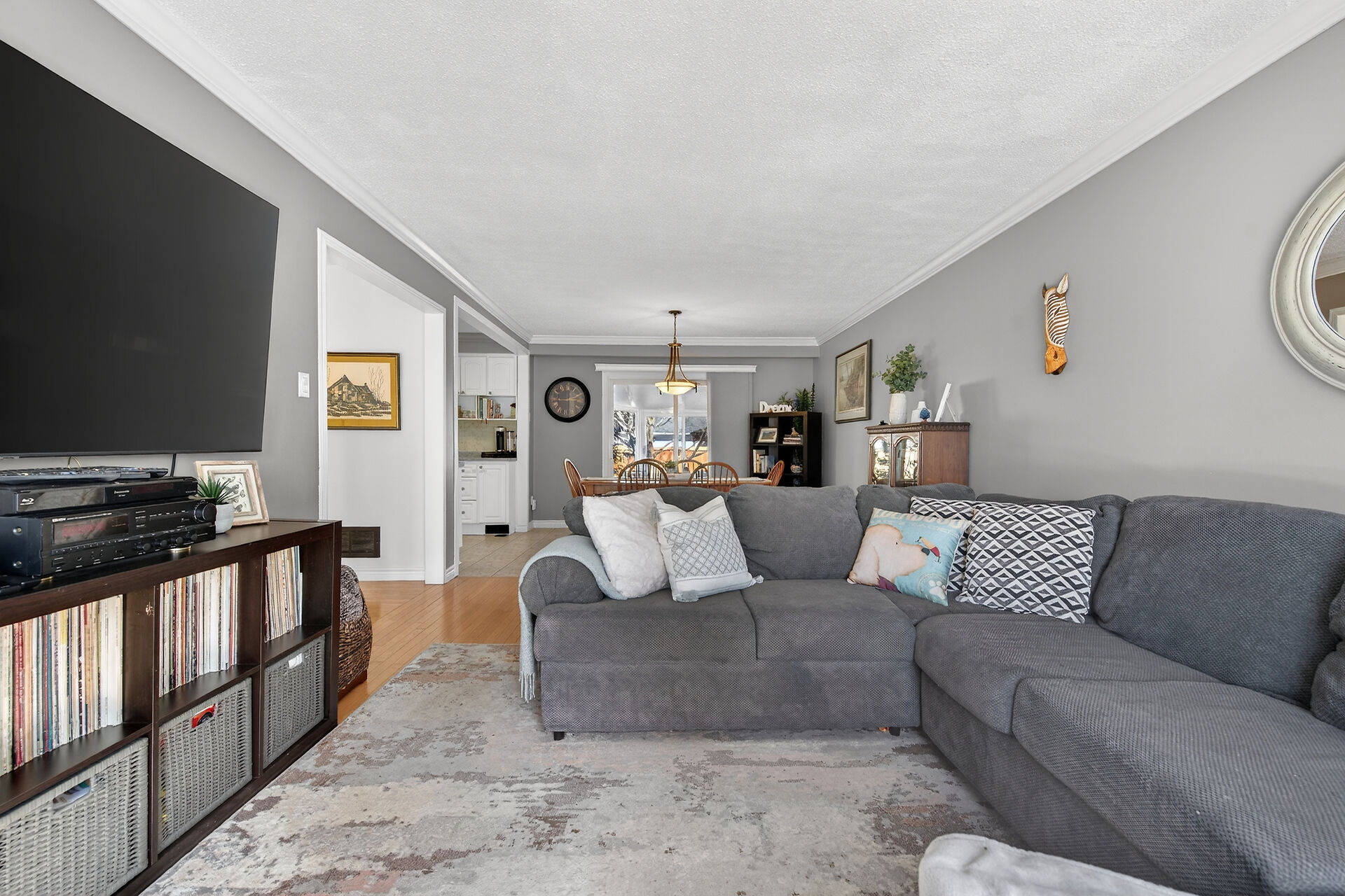 Nestled on an oversized pie-shaped lot, this well-maintained raised bungalow offers space & style. The welcoming entry features wainscoting & opens to a bright living room with hardwood floors & a bay window. The dining area has sliding doors to a 3-season sunroom overlooking the backyard. The kitchen offers abundant white cabinetry & newer appliances. The main floor includes three bedrooms & a beautifully renovated bathroom. The lower level features a large family room with gas fireplace & above-grade window, a fourth bedroom, laundry/utility room, 2-pc bath and garage access. Parking for 4+1. Close to amenities, schools, parks, trails and the Grand River. Numerous updates completed (roof '22; furnace/a/c '21 etc.)