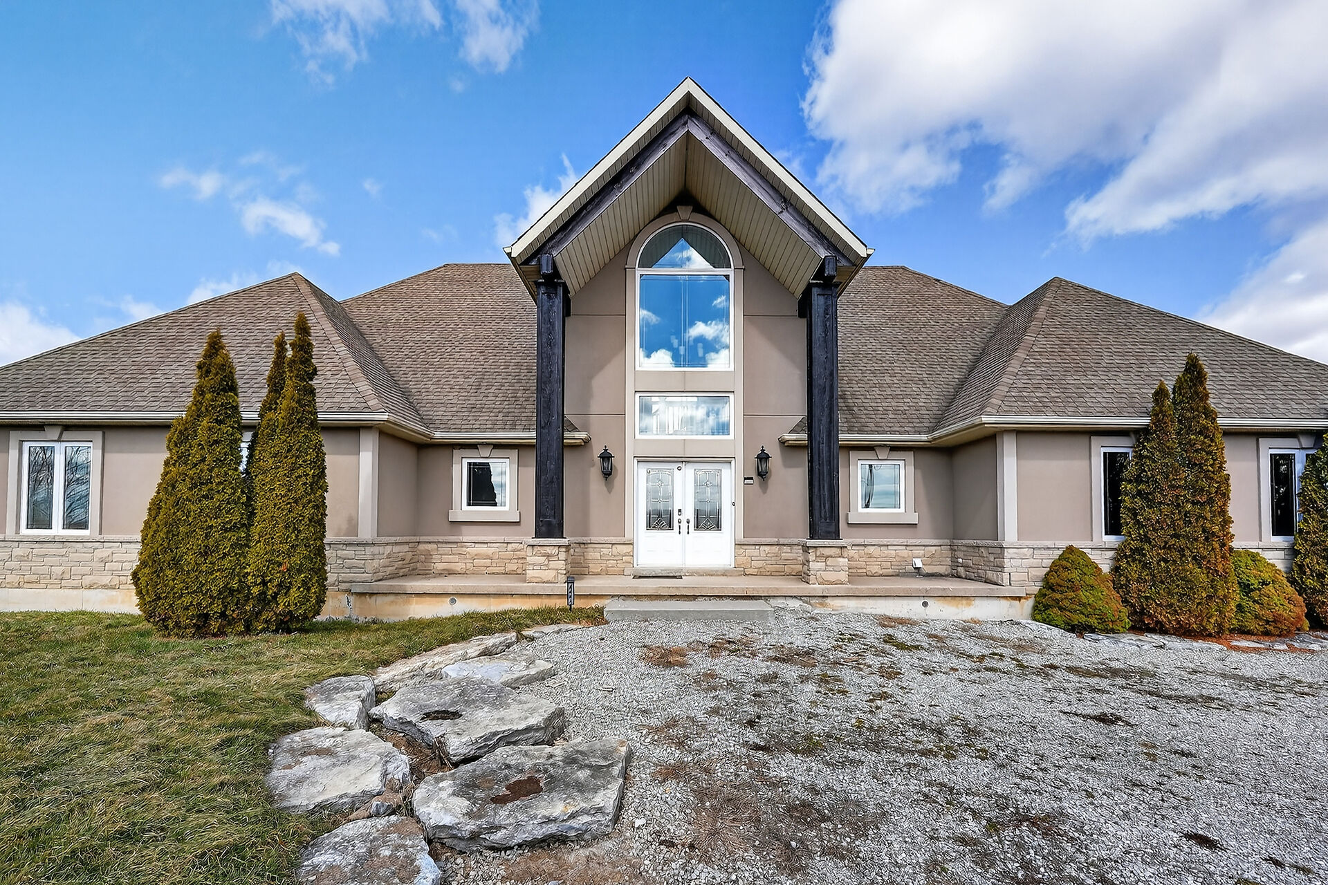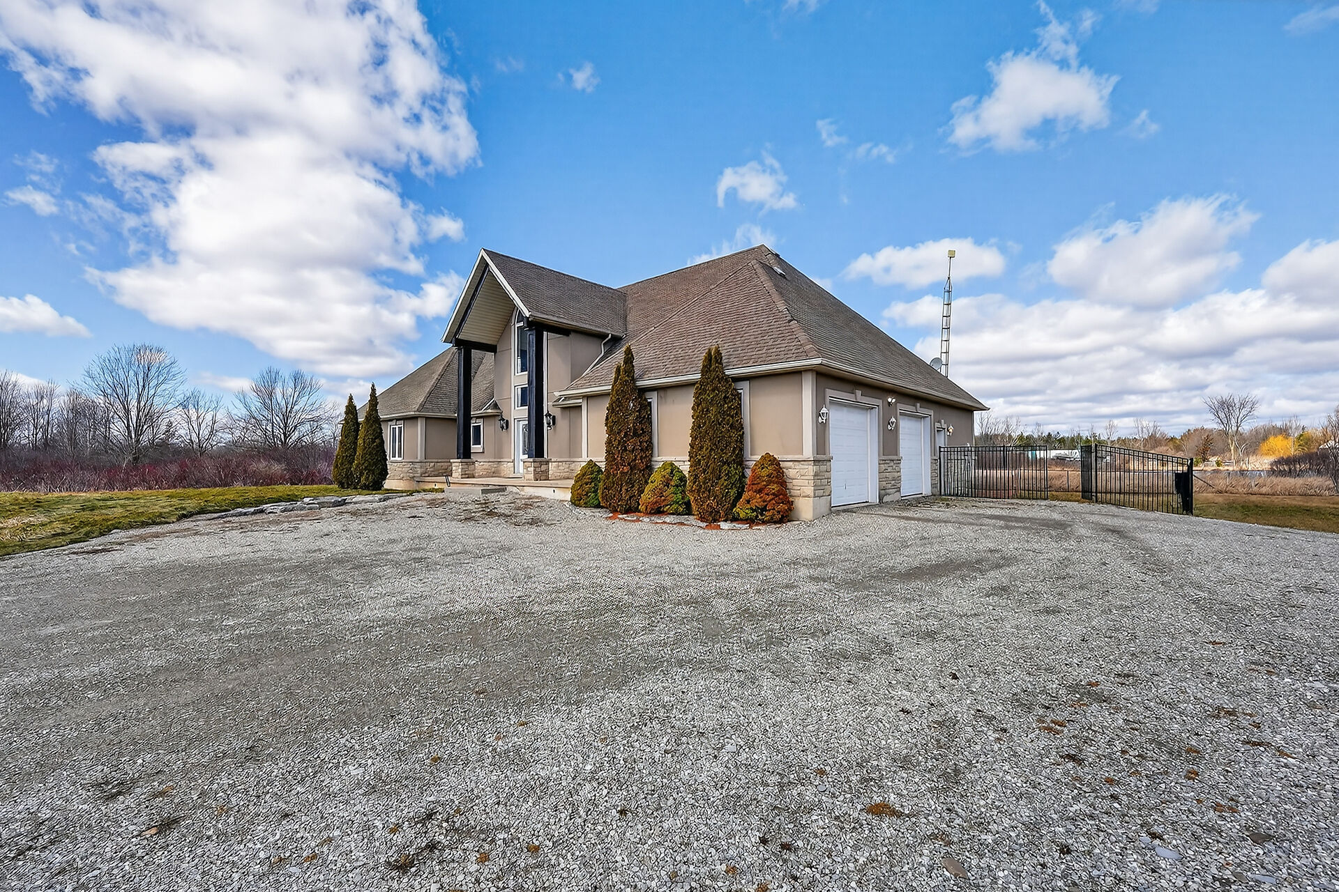 Set across three adjoining lots (4481, 4485 & 4495), this 5 bedroom, 4 bathroom bungalow-loft blends luxury with long-term potential. Surrounded by nature yet minutes to downtown, it's walkable to Byng Island with boat launches to the Grand River, and Lake Erie. Inside, an open-concept main floor features a two-story foyer, bright great room with fireplace, formal dining, and a kitchen with granite counters and stainless appliances. The main-floor primary suite includes a walk-in closet, spa ensuite, and deck access with water views. Upstairs offers a living area, office, and guest suite. The lower level with separate access adds flexible space for extended family or income.