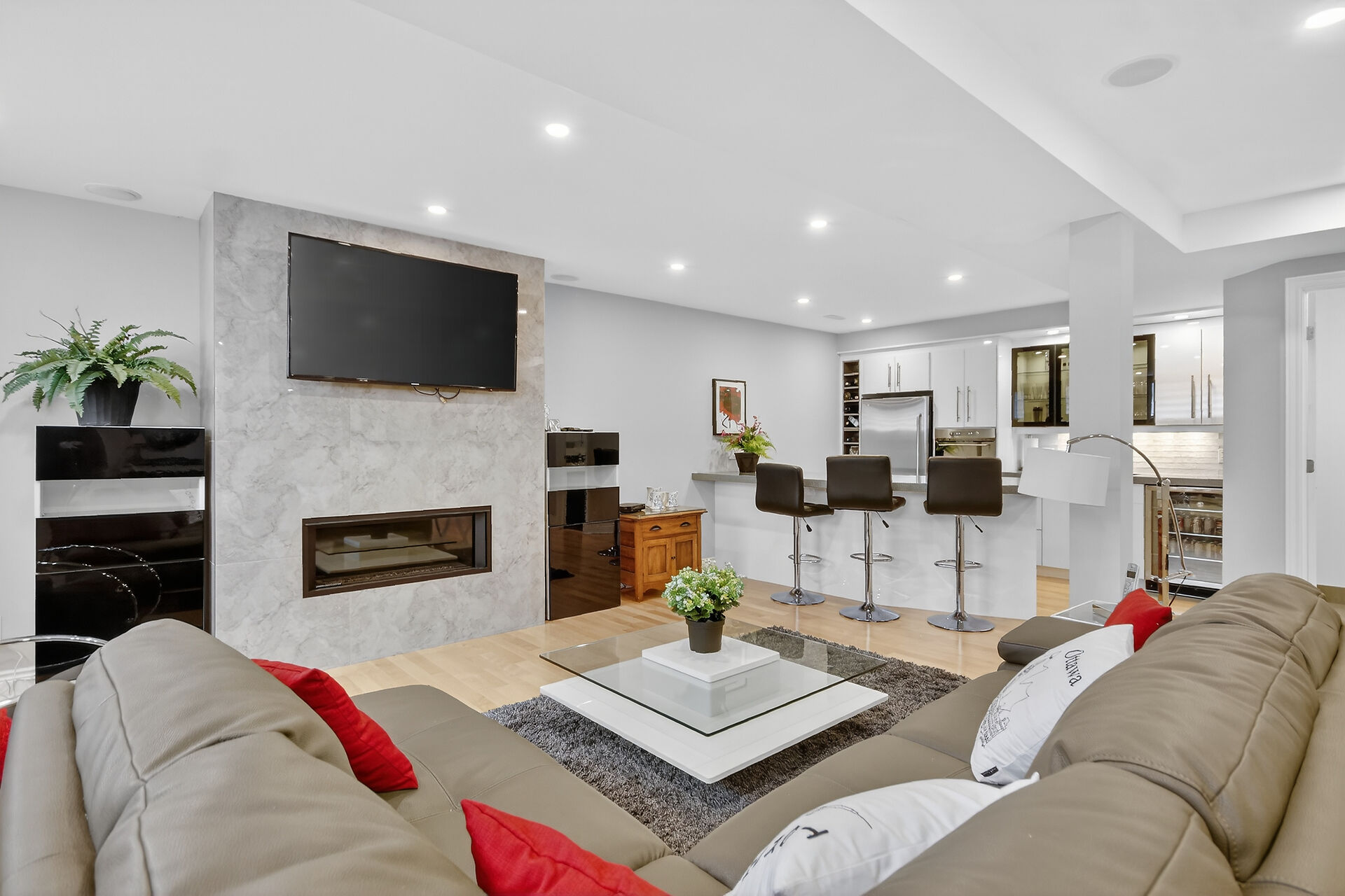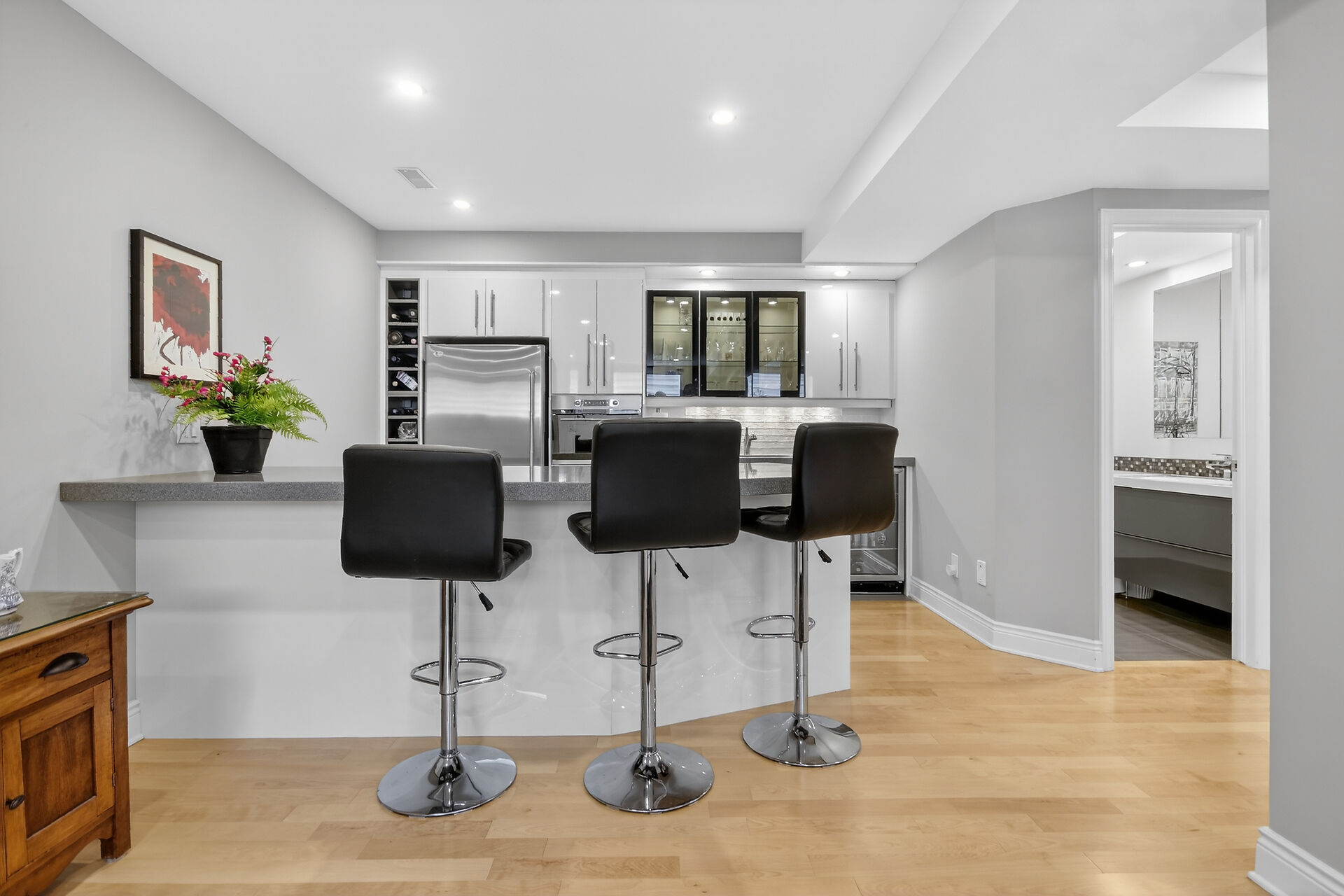 Finished lower level with bar area