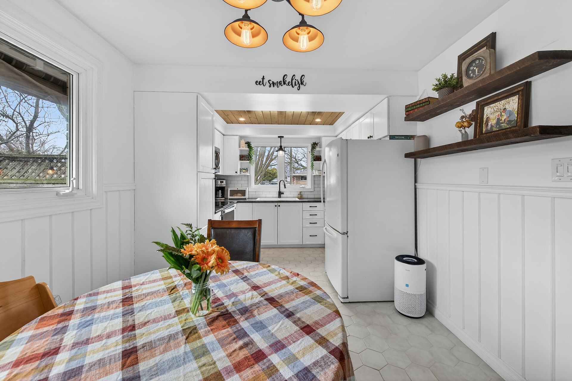 Welcome to this well-maintained 4+1 bedroom, 2 bath 3-level backsplit in a desirable West Mountain neighbourhood. The renovated kitchen & dining area features heated floors and a walkout to a private patio with awning. The bright living room offers hardwood flooring and a bay window. The upper level includes 4 spacious bedrooms and an updated 4-piece bath. The finished lower level has a rec room, bedroom/office, 3-piece bath, and laundry. Enjoy a large backyard with mature trees, gardens, and a decorative shed. Updates include roof/eaves (2017), kitchen/dining and driveway (2020), mechanicals (2021), bath/laundry (2022). Side entry offers in-law potential. Close to schools, parks, shopping, and highways.