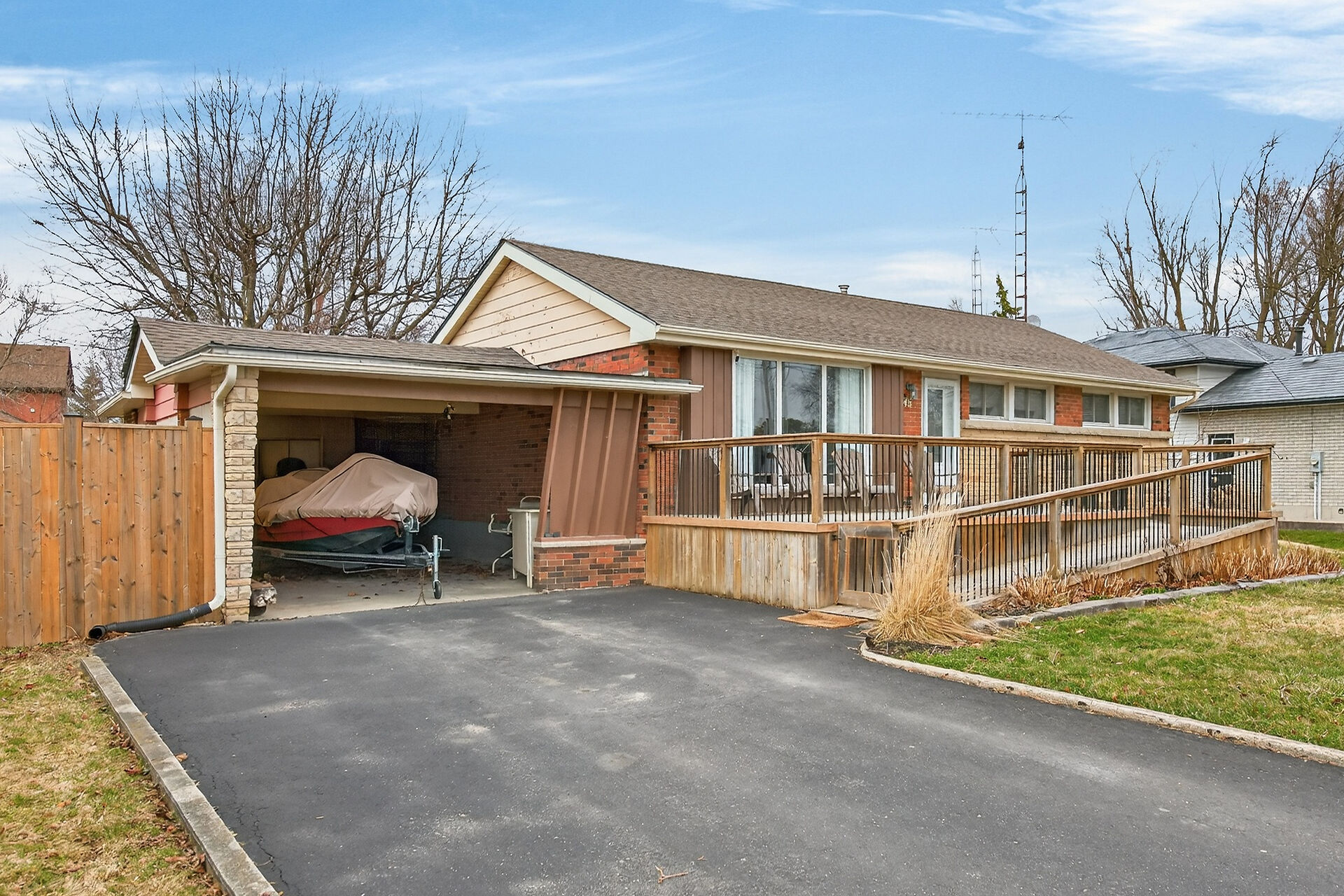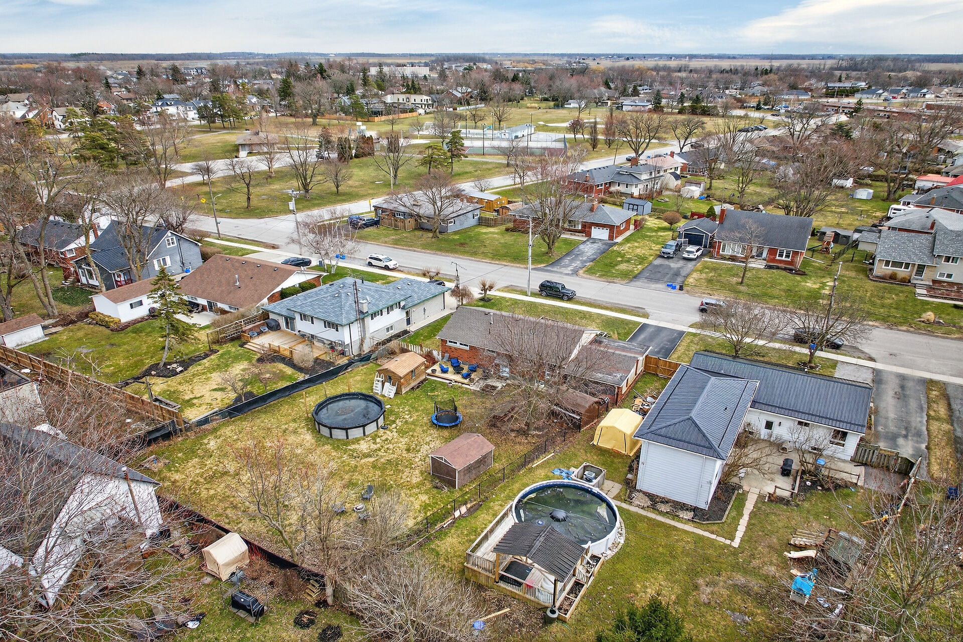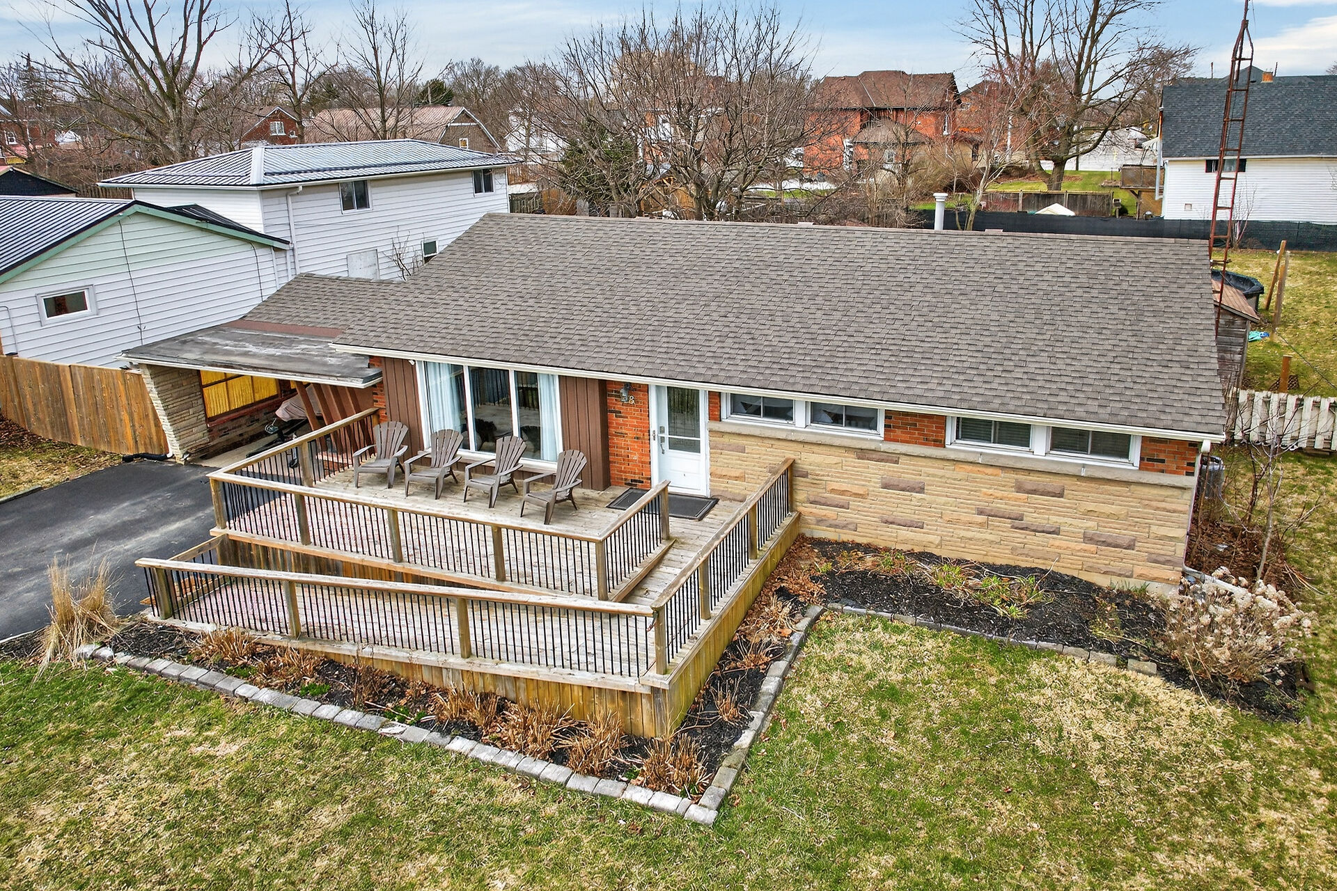 Affordable brick bungalow situated on a spacious 76'x163' lot in a sought-after Hagersville neighborhood. With parks, schools, shops, and amenities all within walking distance, the home offers 1,600 sq ft of finished space featuring 3 bedrooms, a modern kitchen, updated bathroom, and a finished basement with family room and laundry. The fenced backyard has a 24' above ground pool, 2 sheds, firepit, kids' bunkie, and a large deck for outdoor enjoyment. The front includes a entertainer's deck with accessible ramp, carport, and paved driveway with parking for 3 vehicles. Located 30 minutes commute south of Brantford/Hwy 403 & 15 minutes to Caledonia. Ideal home for first time buyers, retirees or families.