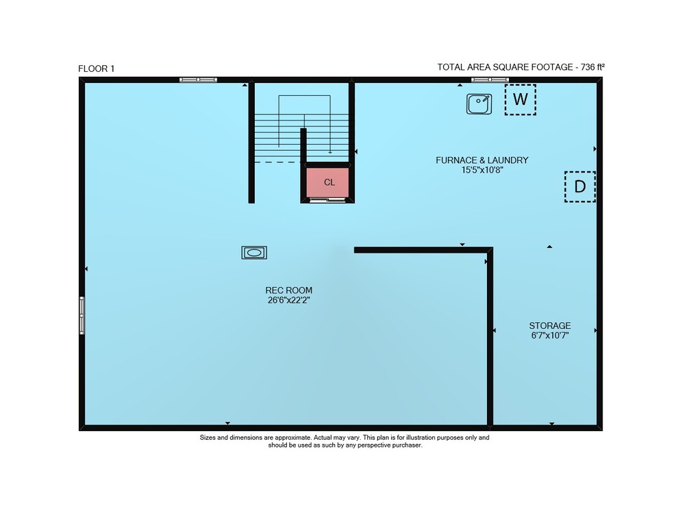 Floor 1: 736 sq ft