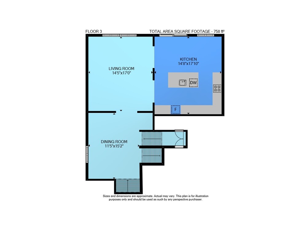 Floor 2: 229 sq ft, Floor 3: 758 sq ft,