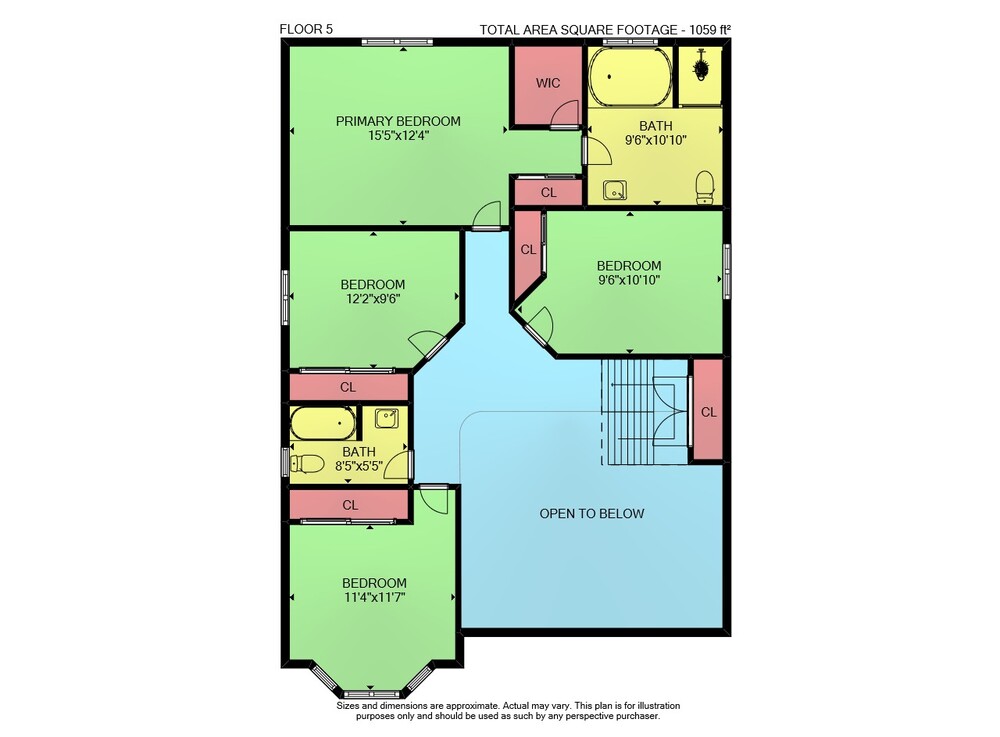 Floor 4: 271 sq ft, Floor 5: 1059 sq ft,