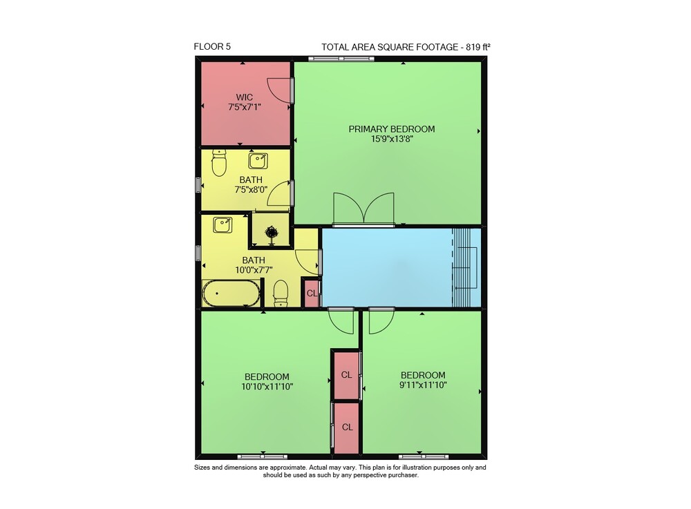 Floor 5: 819 sq ft, Floor 2: 482 sq ft,
