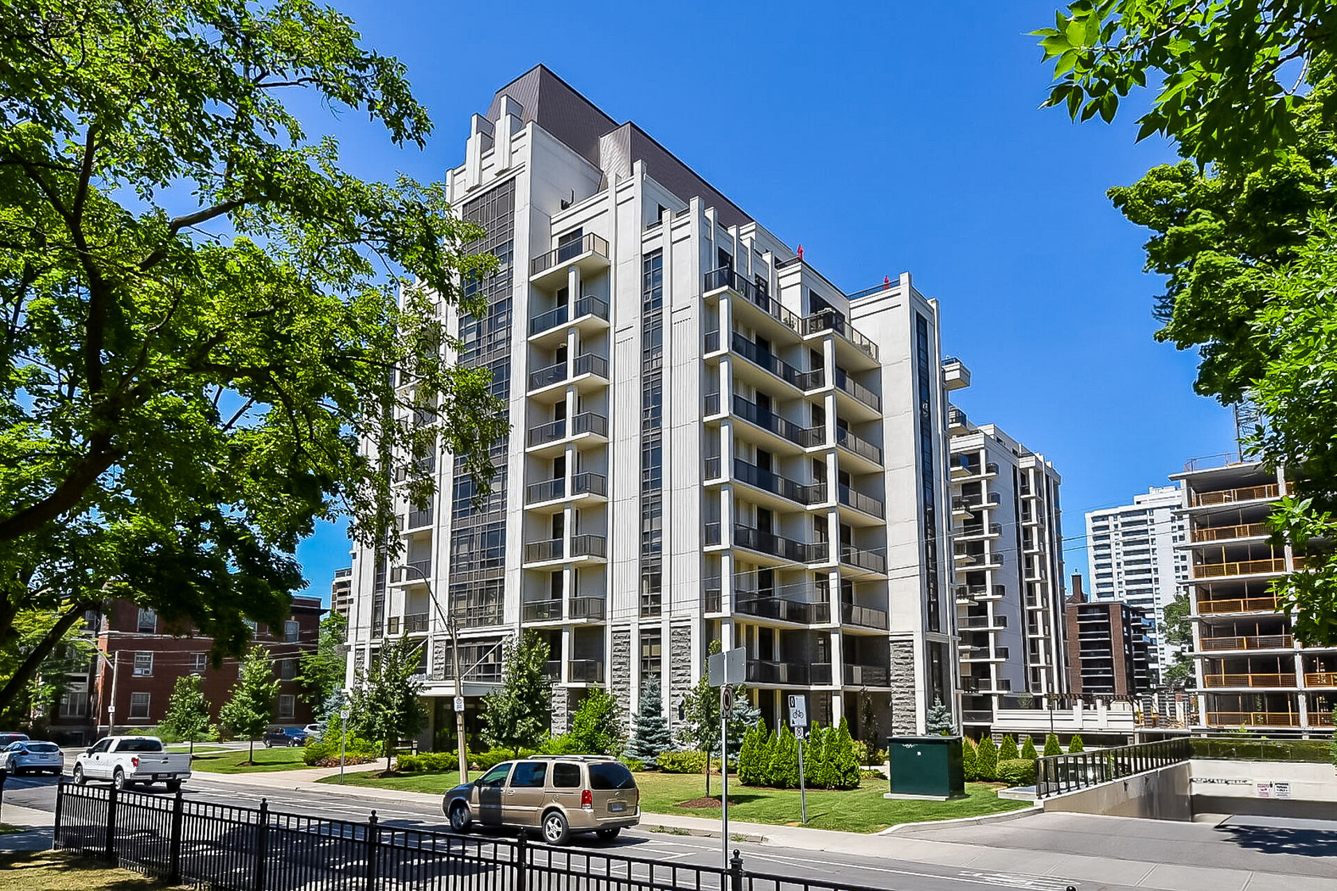 Welcome to 90 Charlton. Fall in love with this beautifully appointed 1,350 sq ft lower penthouse unit. The epitome of luxury, this gorgeous space is flooded with natural light. The open-concept layout features 2 generous bedrooms, 2 full bathrooms, a versatile den, and in-suite laundry. Two private balconies offer over 140 sq ft of outdoor retreat space with breathtaking southern exposure and peaceful views of Durand Park and the Hamilton Escarpment. Enjoy premium amenities including a fully equipped gym and party and meeting rooms. Secure underground parking space included. This truly walkable neighbourhood means you are just steps from everything Hamilton has to offer.