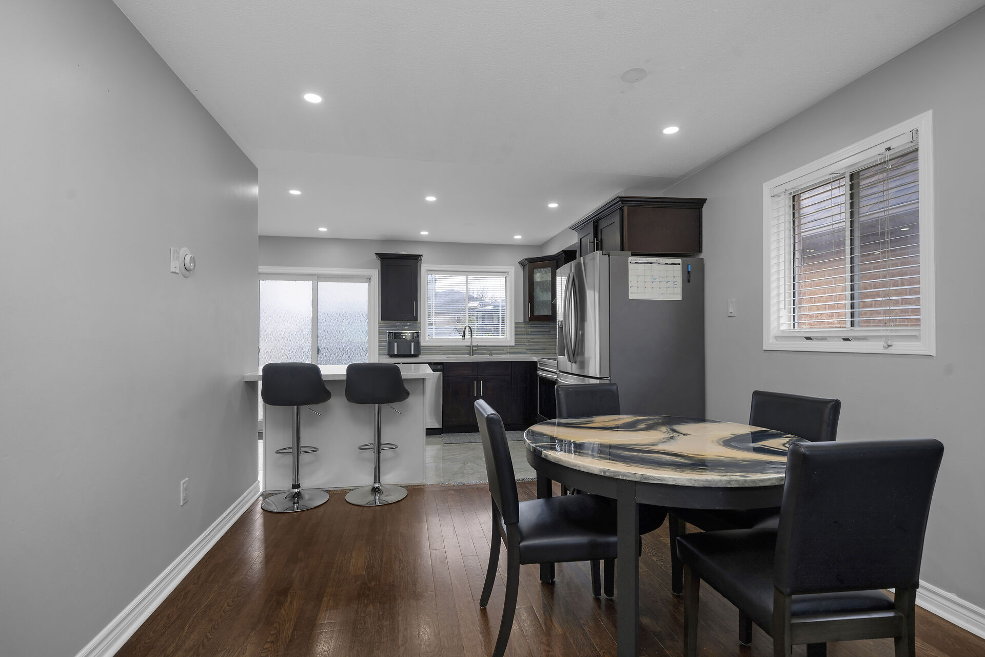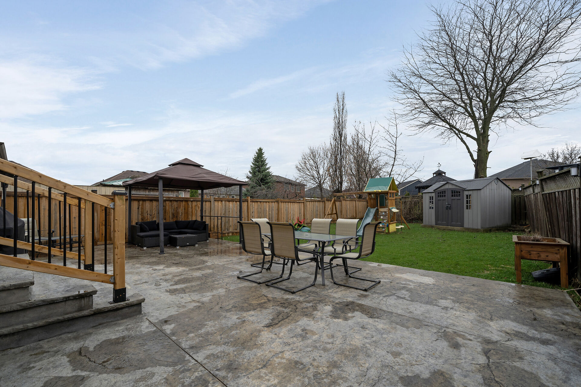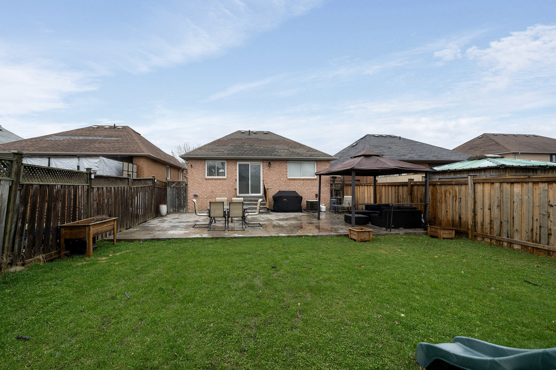 Raised Bungalow features 2 Bdrm. Second Brdm set up as office. Finished Bsmt offers extra 2 Bdrms. Convenient indoor access to the garage. Functional living main floor and Bsmt. 2 Kitchens, Upgraded main floor Bathroom and Main flr Kitchen. The main level boasts flexibility for both everyday living and entertaining. Many Stainless steel appliances. Carpet-free interior. Step outside to a spacious backyard with stamped concrete, Playset, Gazebo and large storage shed.