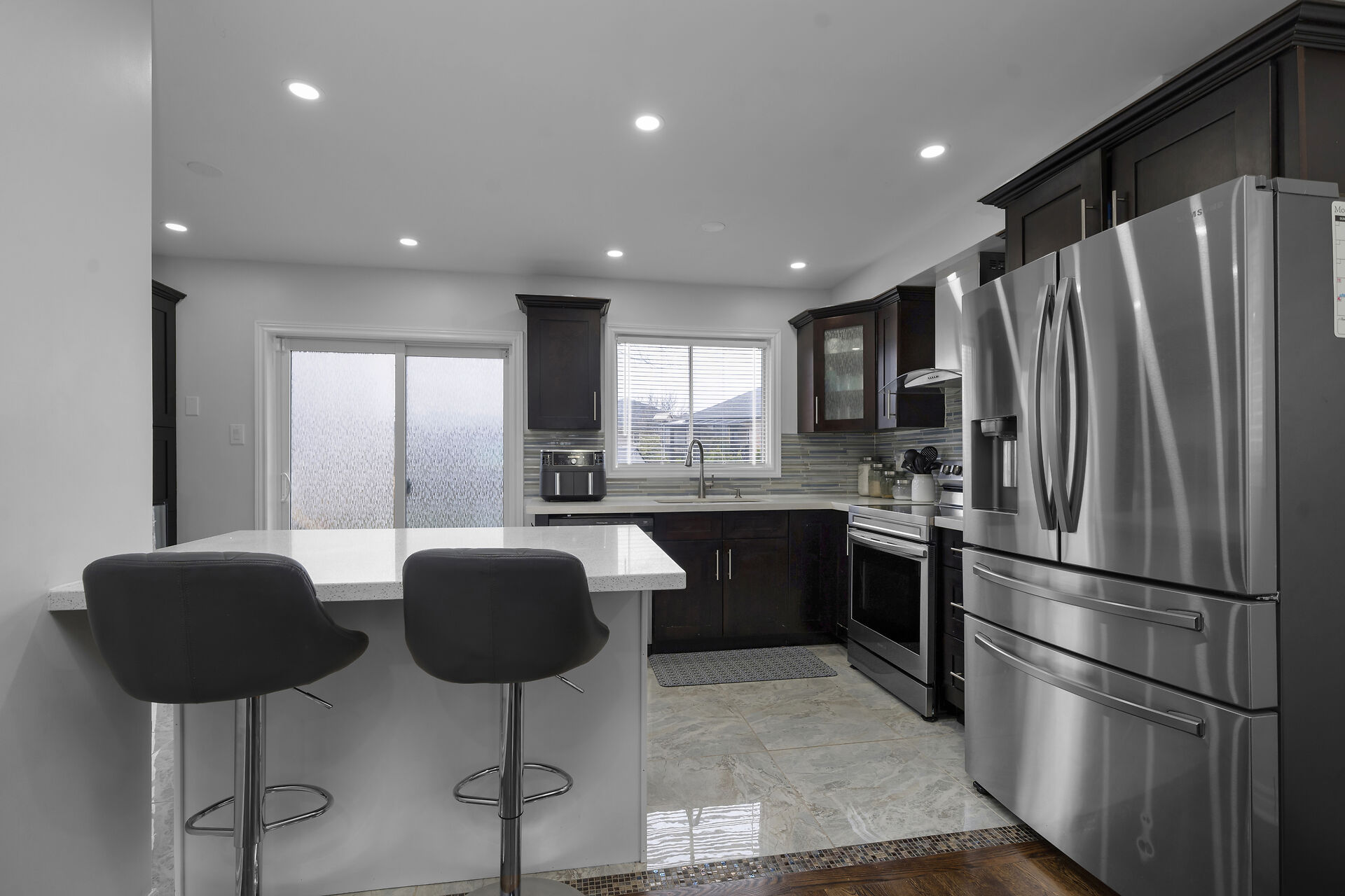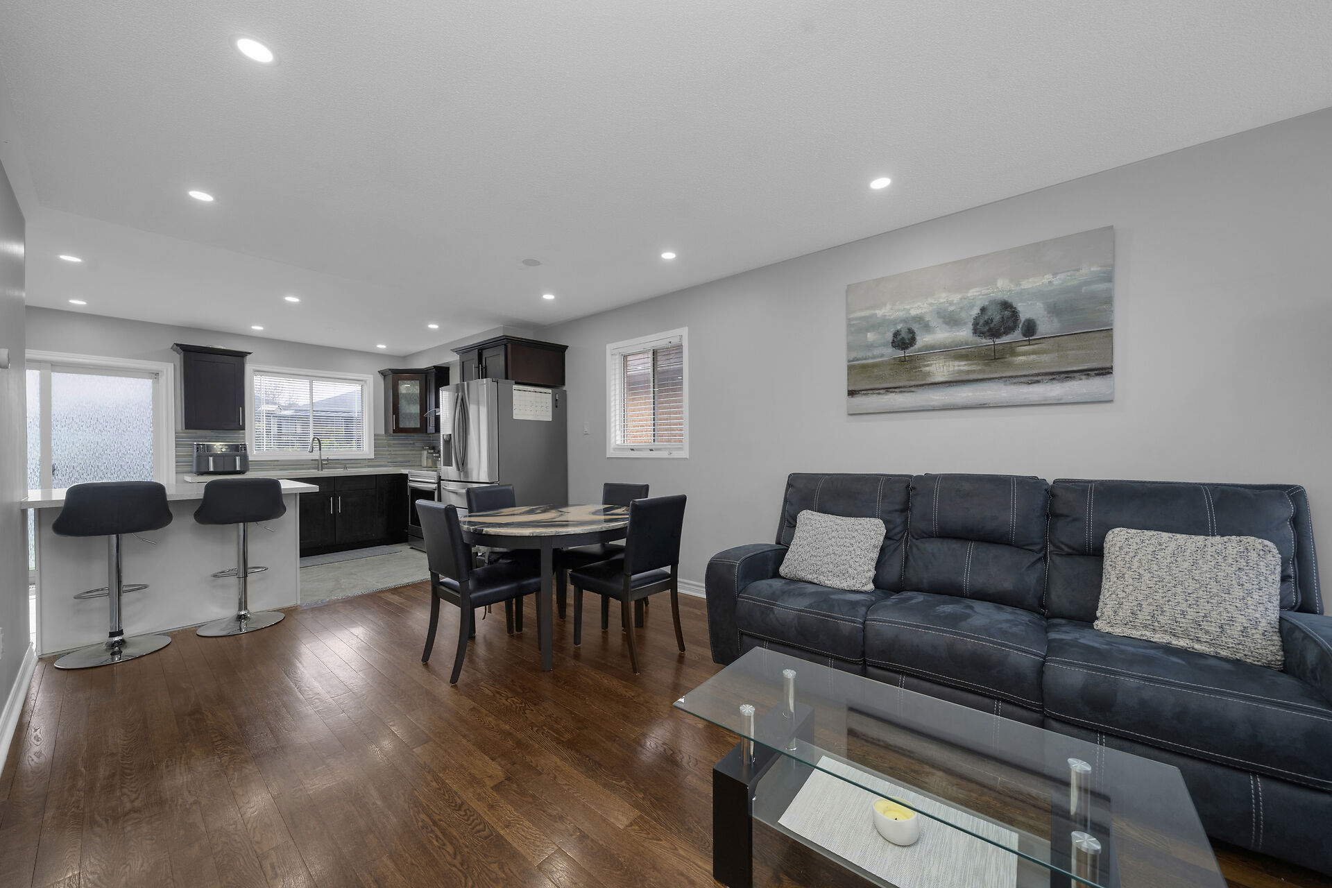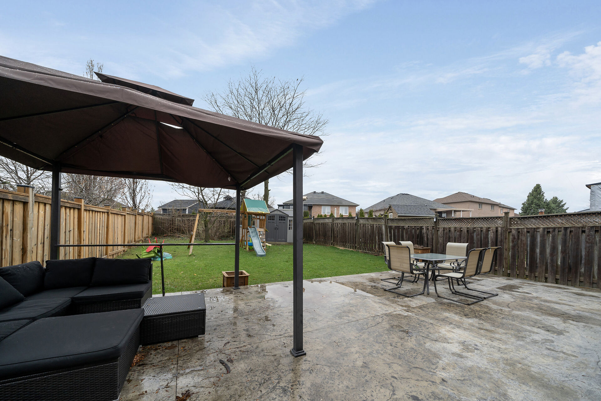 Raised Bungalow features 2 Bdrm. Second Brdm set up as office. Finished Bsmt offers extra 2 Bdrms. Convenient indoor access to the garage. Functional living main floor and Bsmt. 2 Kitchens, Upgraded main floor Bathroom and Main flr Kitchen. The main level boasts flexibility for both everyday living and entertaining. Many Stainless steel appliances. Carpet-free interior. Step outside to a spacious backyard with stamped concrete, Playset, Gazebo and large storage shed.