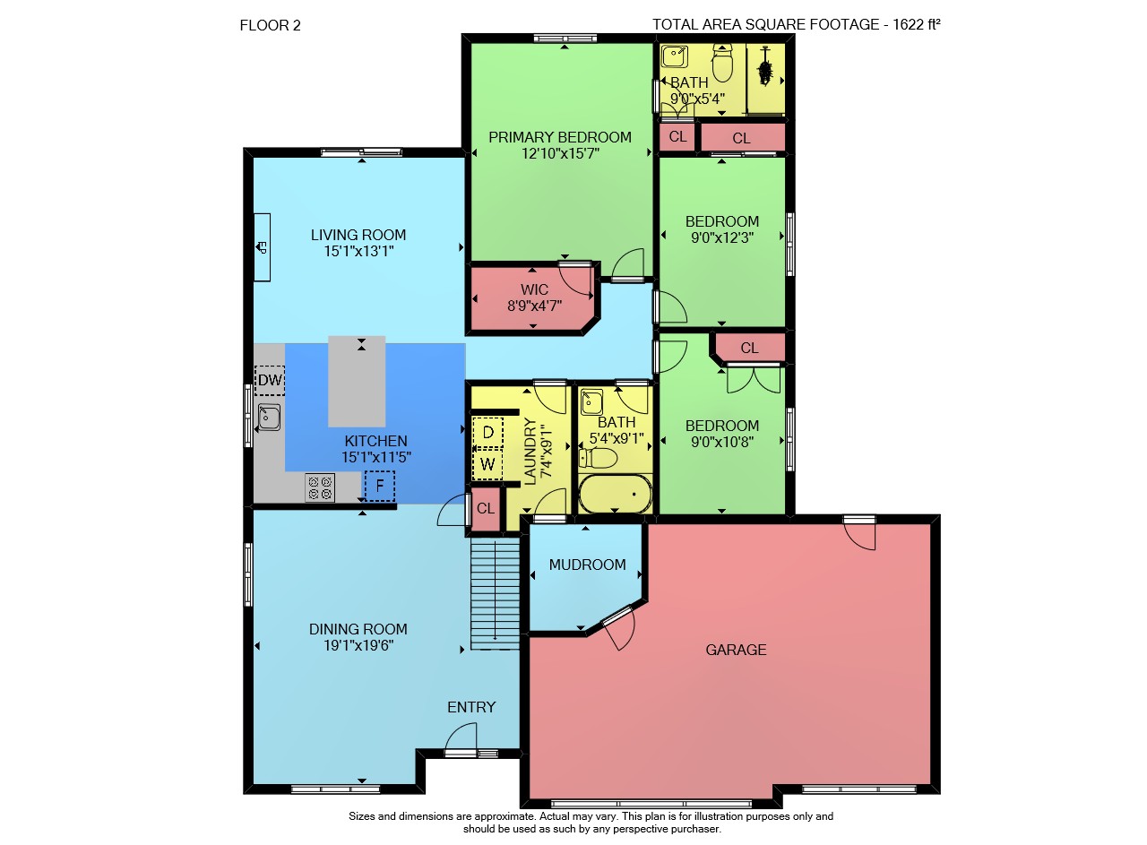 Sizes & Dimensions Are Approximate, Actual May Vary