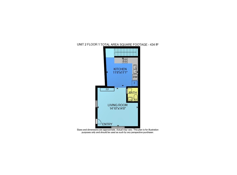 Unit 2 Floor 1: 434 sq ft, Unit 2 Floor 2: 874 sq ft,