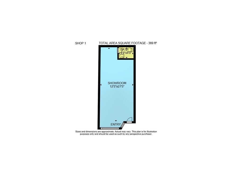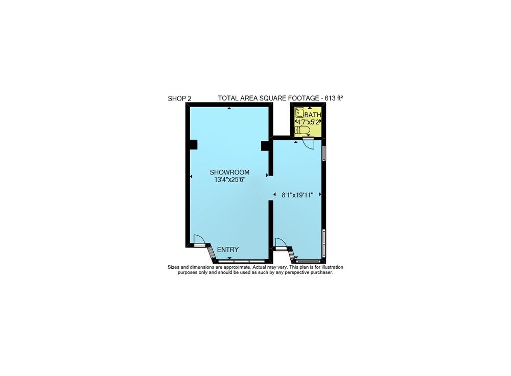Shop 1: 369 sq ft, Shop 2: 613 sq ft