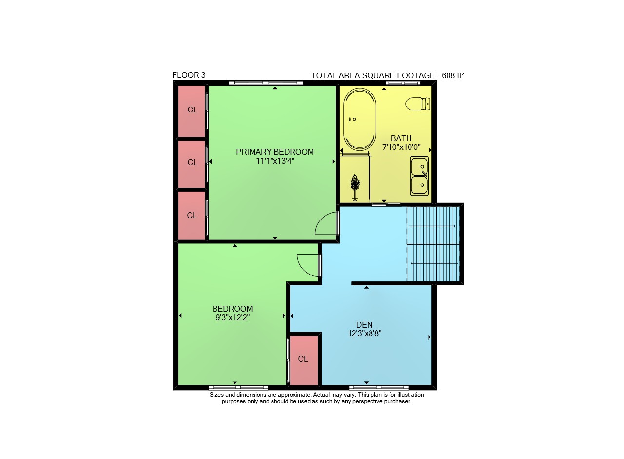 Floor 2: 607 sq ft, Floor 3: 608 sq ft, Floor 1: 471 sq ft