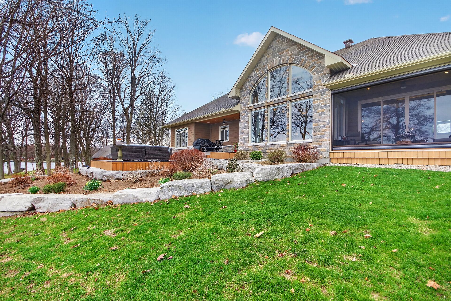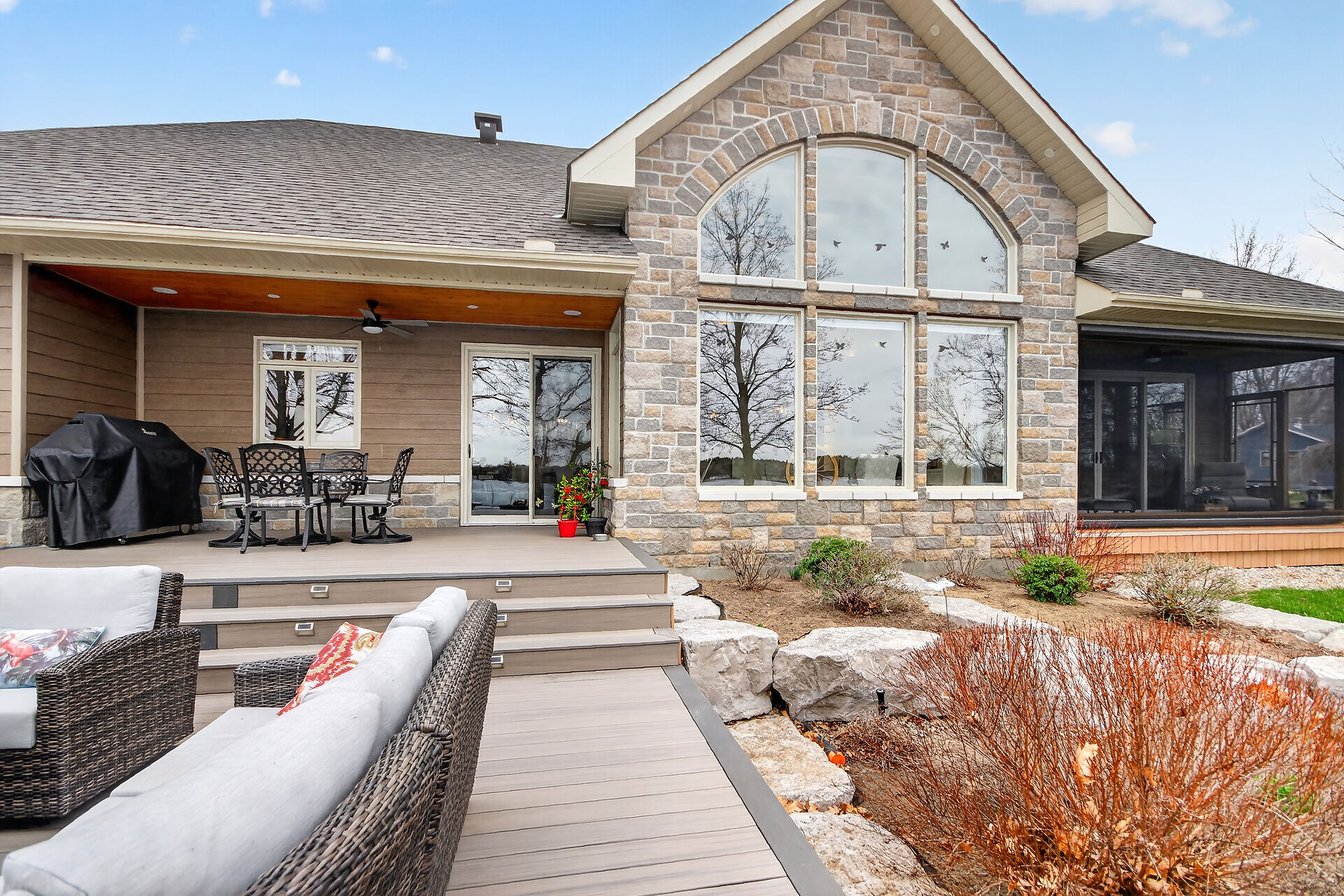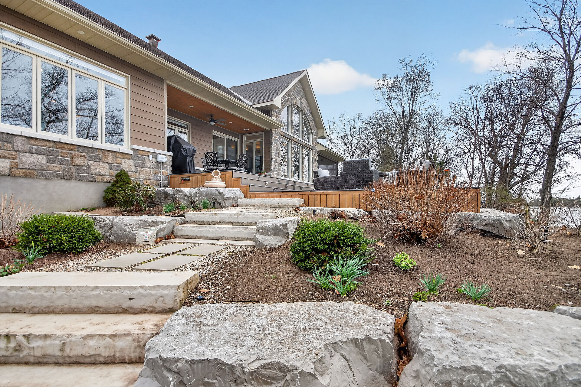 Welcome to this stunning Mississippi Lake custom-built bungalow offering over 2,900 sq ft of refined living, designed w/ all the luxury and craftsmanship you would expect in a high-end home. Ideally located just a short drive from Carleton Place, w/easy access to Highway 7, this exceptional for commuters seeking both convenience and tranquility.Set on a beautifully landscaped waterfront lot with 100 feet of shoreline to enjoy breathtaking sunrises and all-day natural light.The outdoor space is truly an entertainer's dream-featuring a spacious deck, a sitting area, a covered porch, and a 26-foot dock with custom stairs. 3+1 bdrm, 2.5 bath, landscaped, Generac, attached garage with bonus room above and so much more!