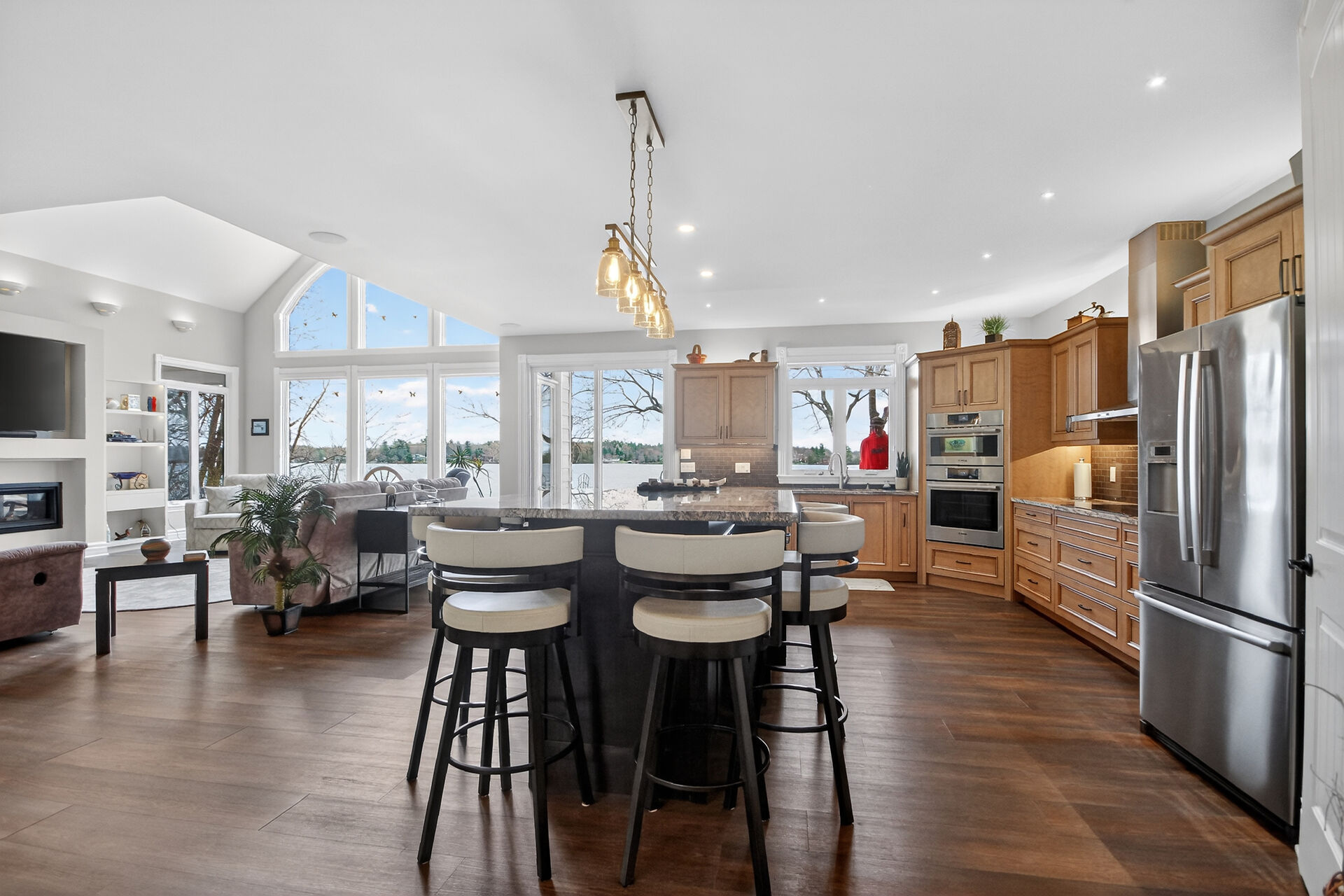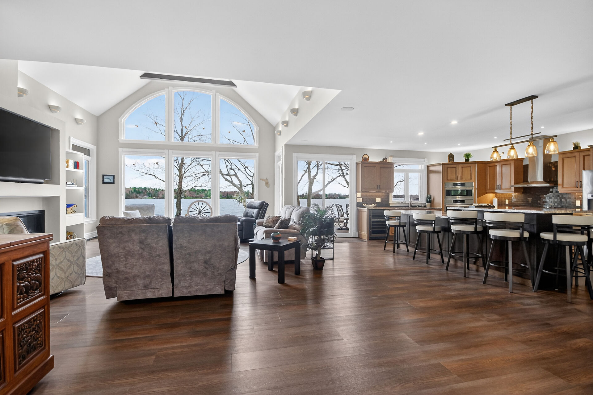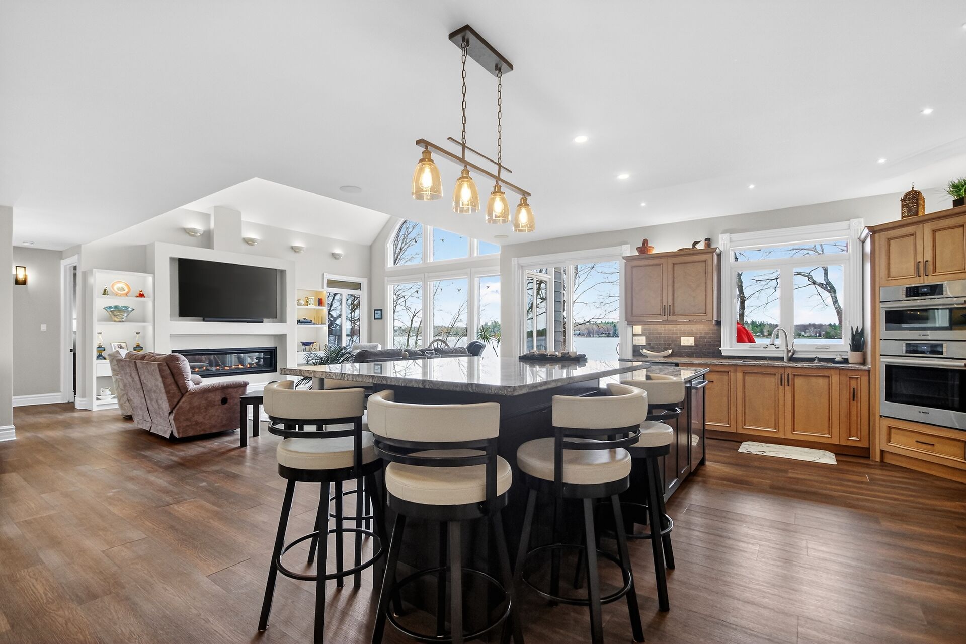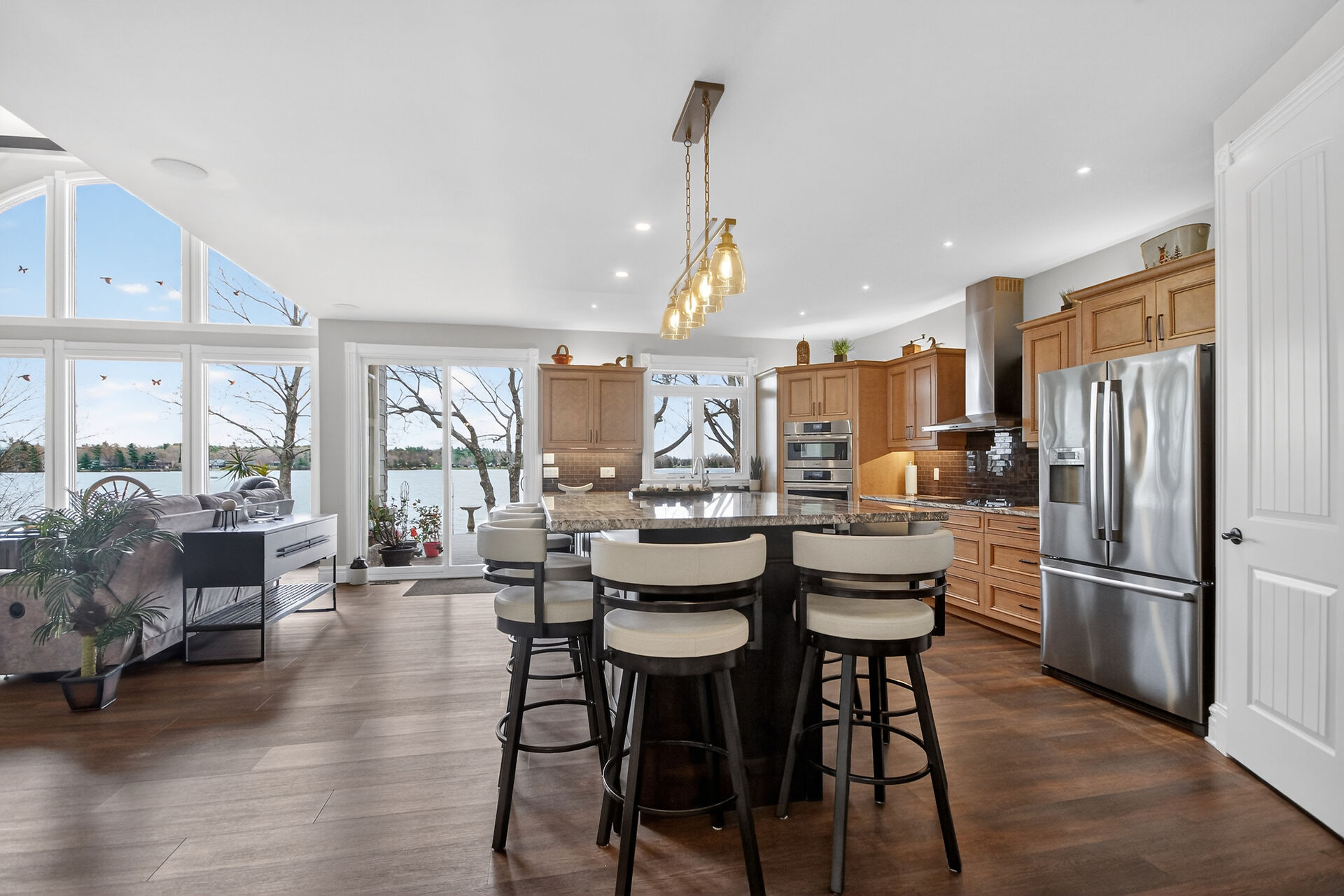 Welcome to this stunning Mississippi Lake custom-built bungalow offering over 2,900 sq ft of refined living, designed w/ all the luxury and craftsmanship you would expect in a high-end home. Ideally located just a short drive from Carleton Place, w/easy access to Highway 7, this exceptional for commuters seeking both convenience and tranquility.Set on a beautifully landscaped waterfront lot with 100 feet of shoreline to enjoy breathtaking sunrises and all-day natural light.The outdoor space is truly an entertainer's dream-featuring a spacious deck, a sitting area, a covered porch, and a 26-foot dock with custom stairs. 3+1 bdrm, 2.5 bath, landscaped, Generac, attached garage with bonus room above and so much more!