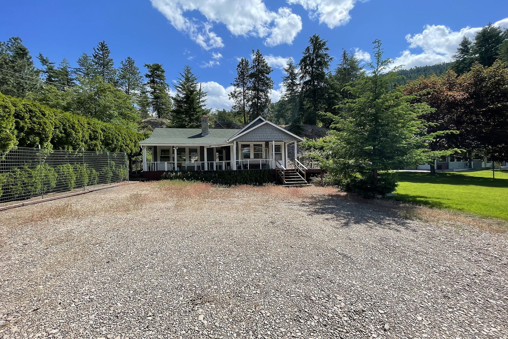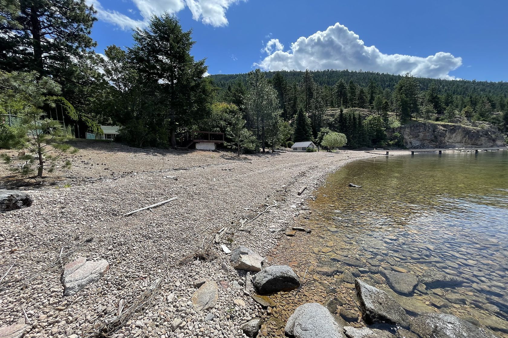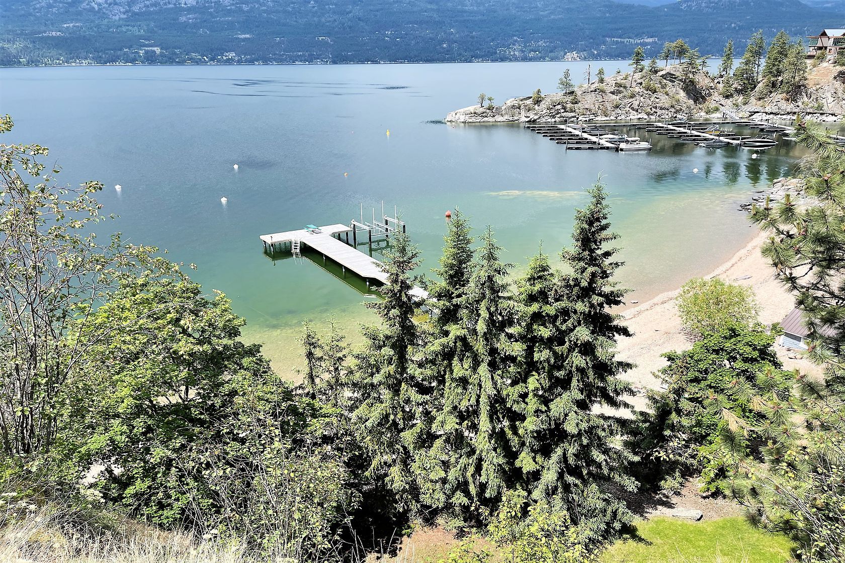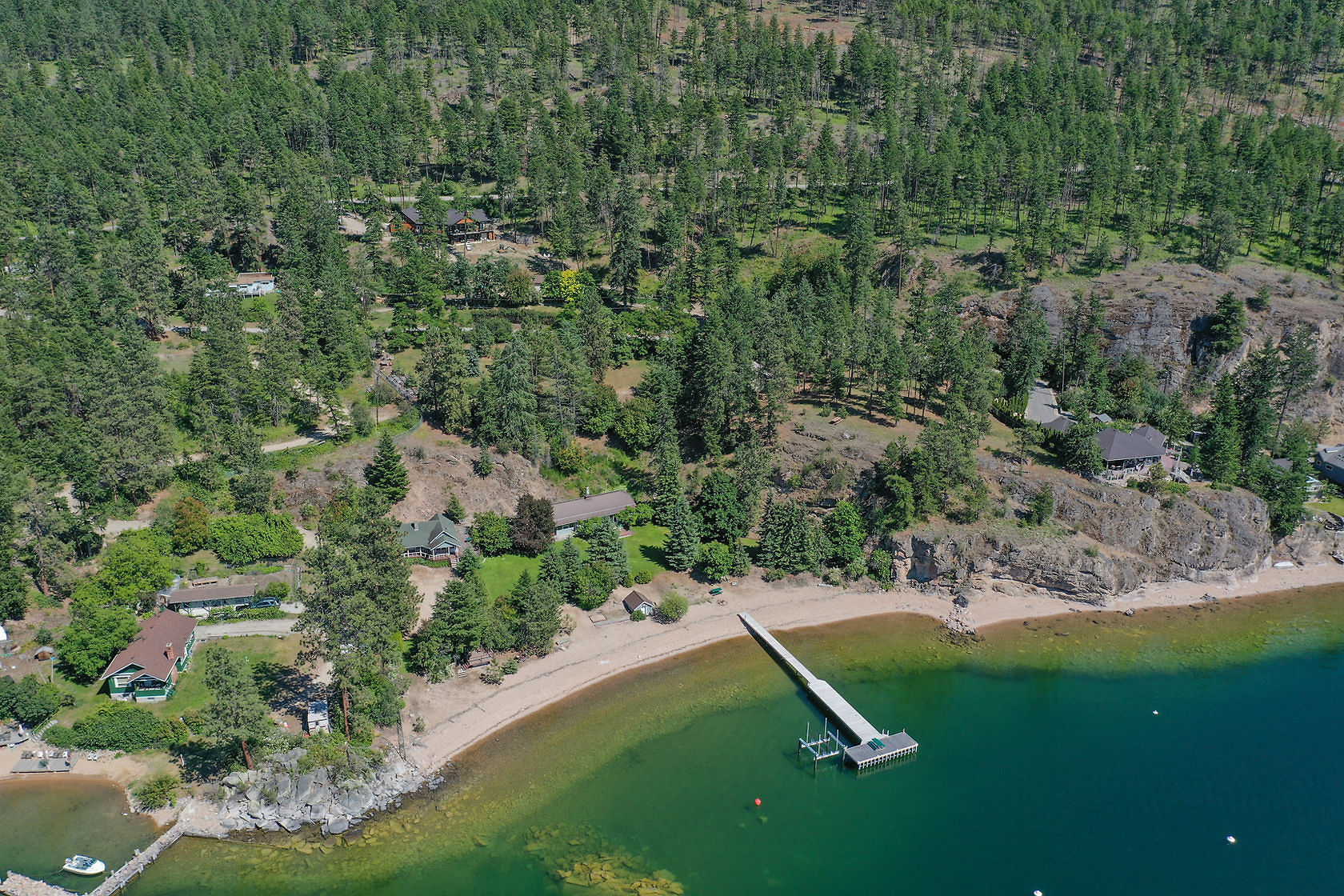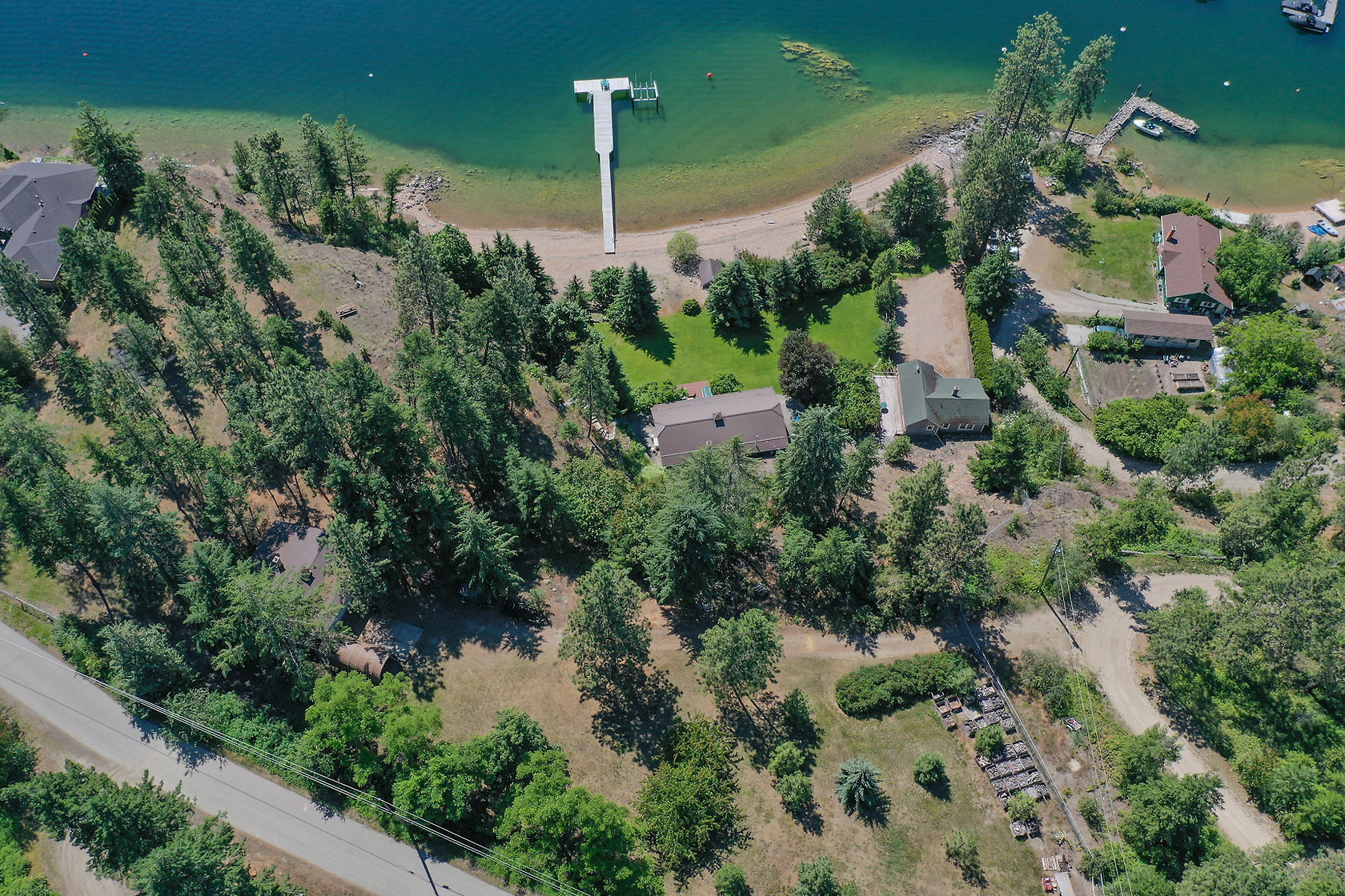 Sand, Sunsets & Space. This is a rare Gem with approx. 3 acres & 415 feet of gorgeous level Lakefront with a Home, Cottage & Shop awaiting your ideas....dream big, this property has it all and more! Large lawn area at Lakeside with the kind of privacy only a large acreage can provide and all gated and fenced. The upper area is huge with fruit trees, shop and an amazing rock bluff view of the lake and mountains. Recent dock with 16,000 Lb lift, end of the road privacy, expansive lawn, wide and deep lake frontage and crystal clear water awaits you. Truly, this property will inspire you and provide decades of enjoyment and memories. There is only one of these properties!