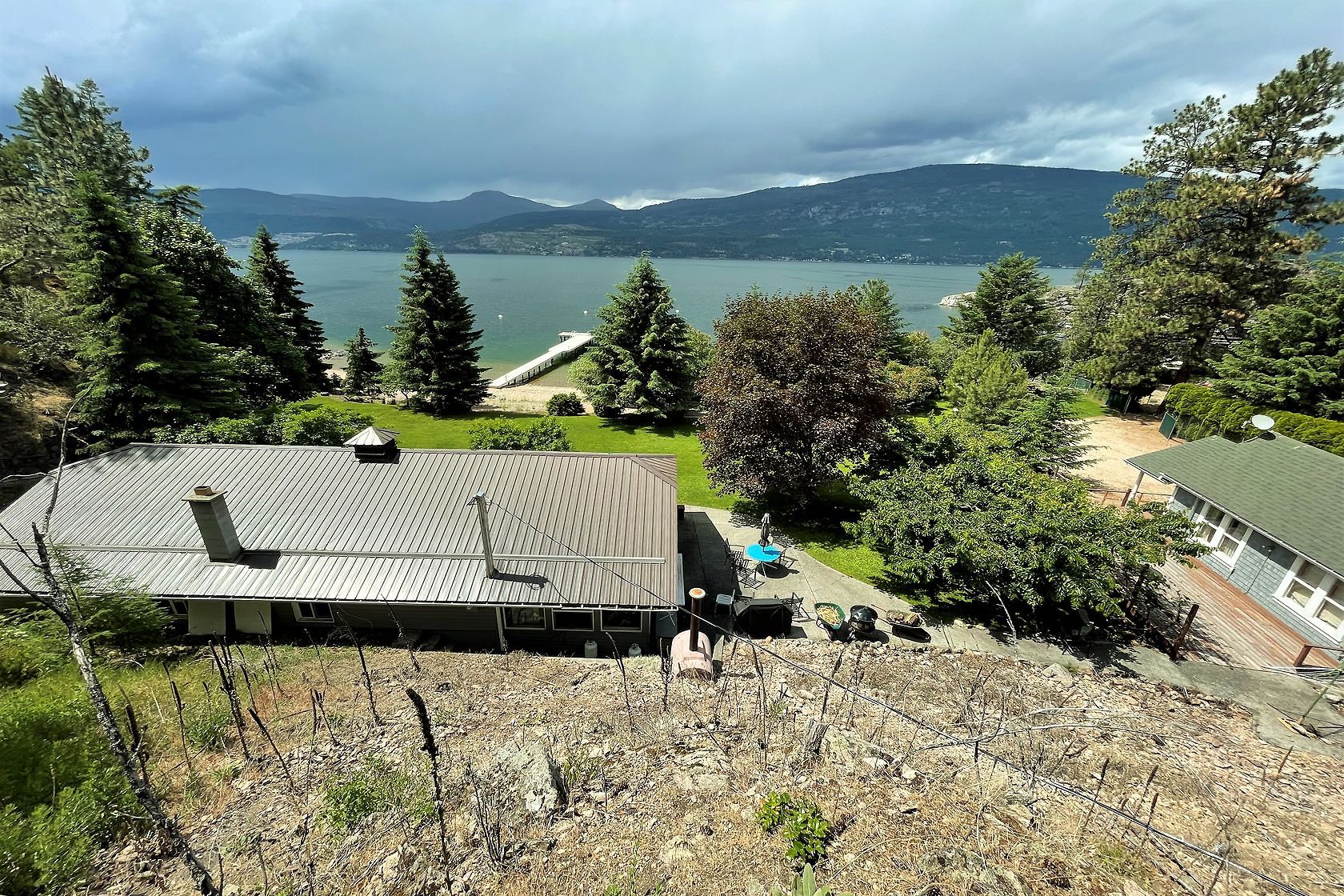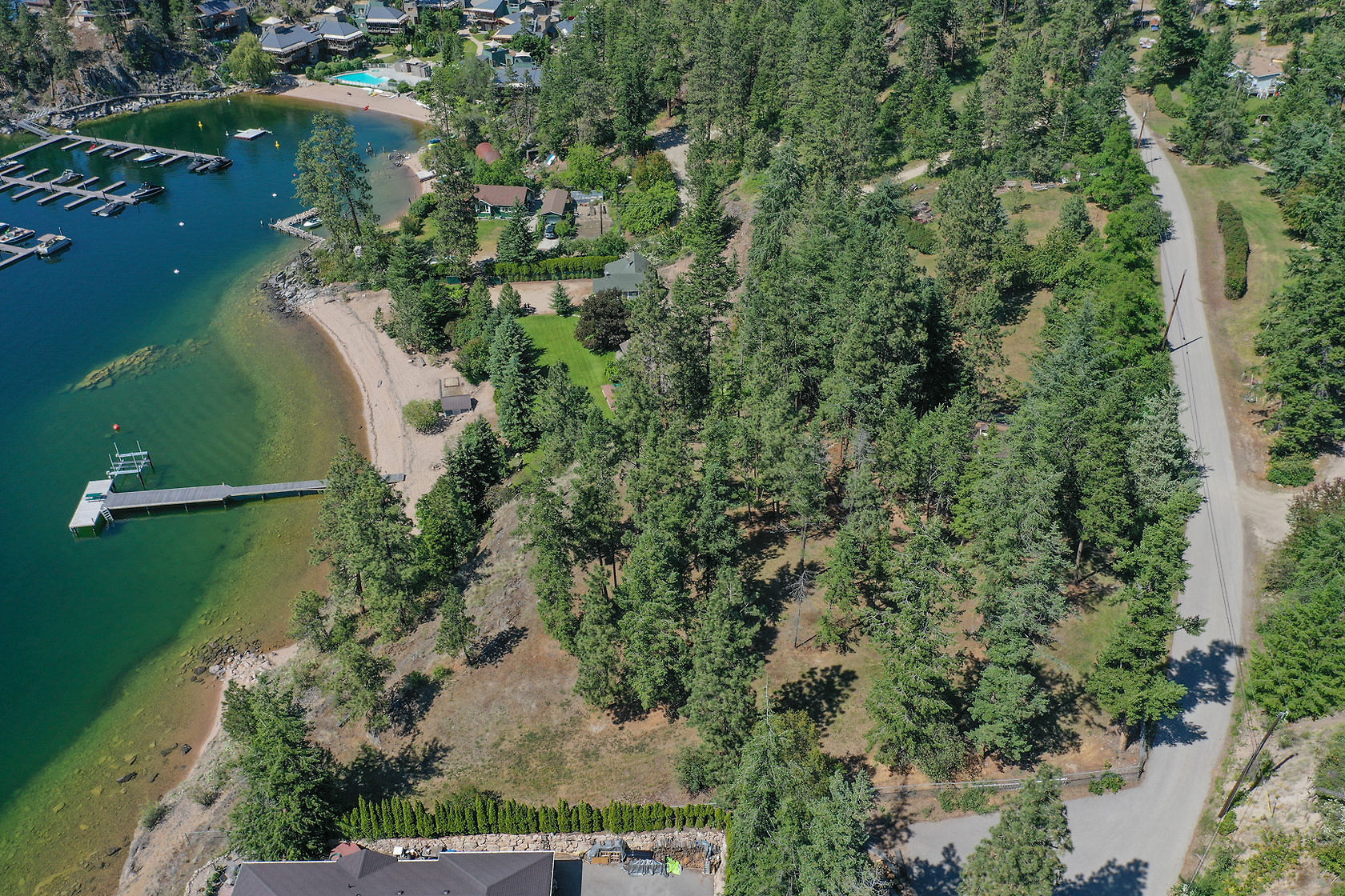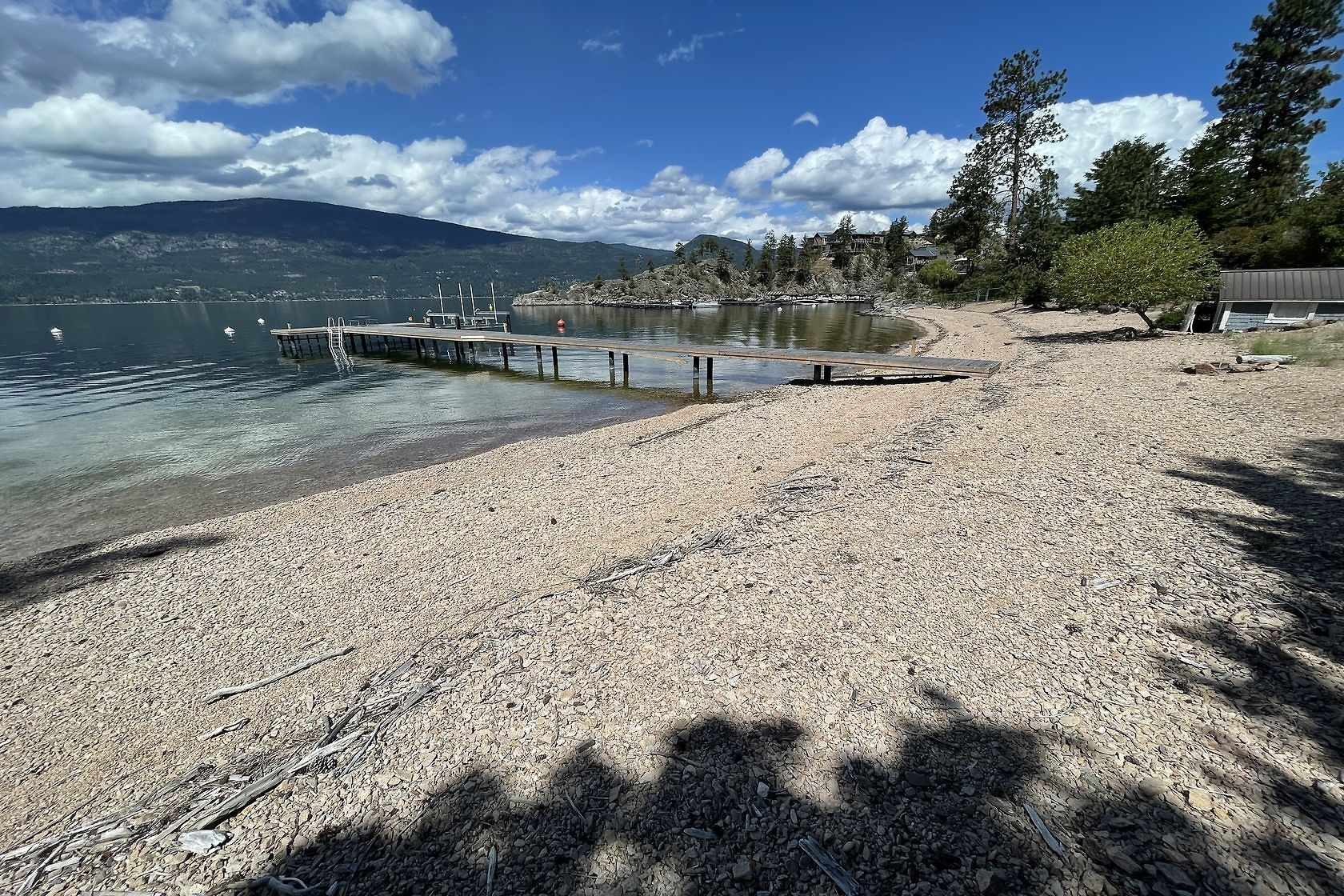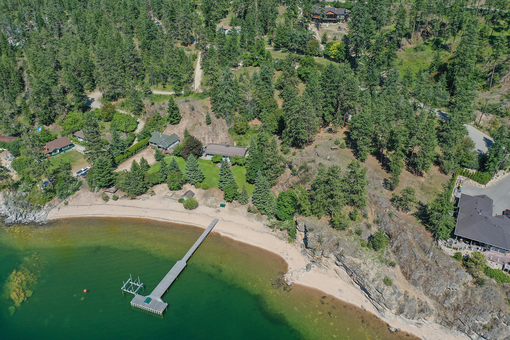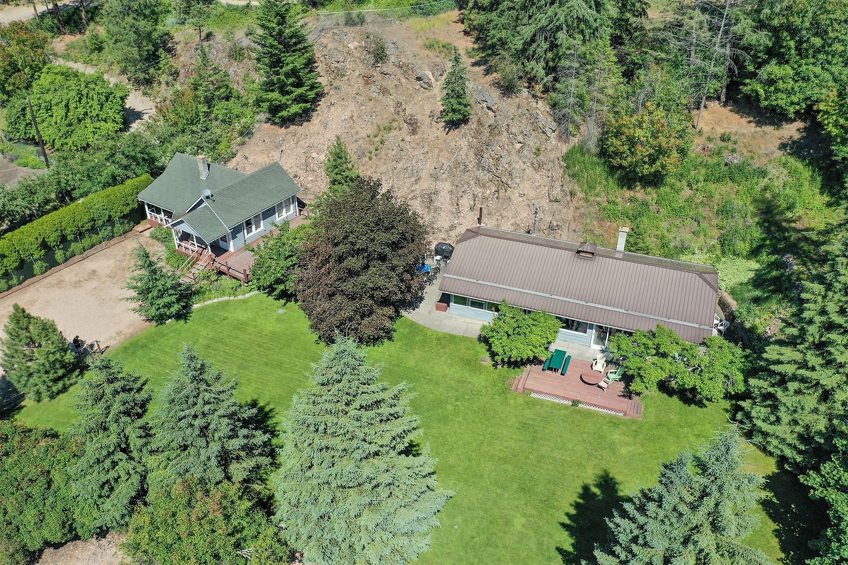 Sand, Sunsets & Space. This is a rare Gem with approx. 3 acres & 415 feet of gorgeous level Lakefront with a Home, Cottage & Shop awaiting your ideas....dream big, this property has it all and more! Large lawn area at Lakeside with the kind of privacy only a large acreage can provide and all gated and fenced. The upper area is huge with fruit trees, shop and an amazing rock bluff view of the lake and mountains. Recent dock with 16,000 Lb lift, end of the road privacy, expansive lawn, wide and deep lake frontage and crystal clear water awaits you. Truly, this property will inspire you and provide decades of enjoyment and memories. There is only one of these properties!