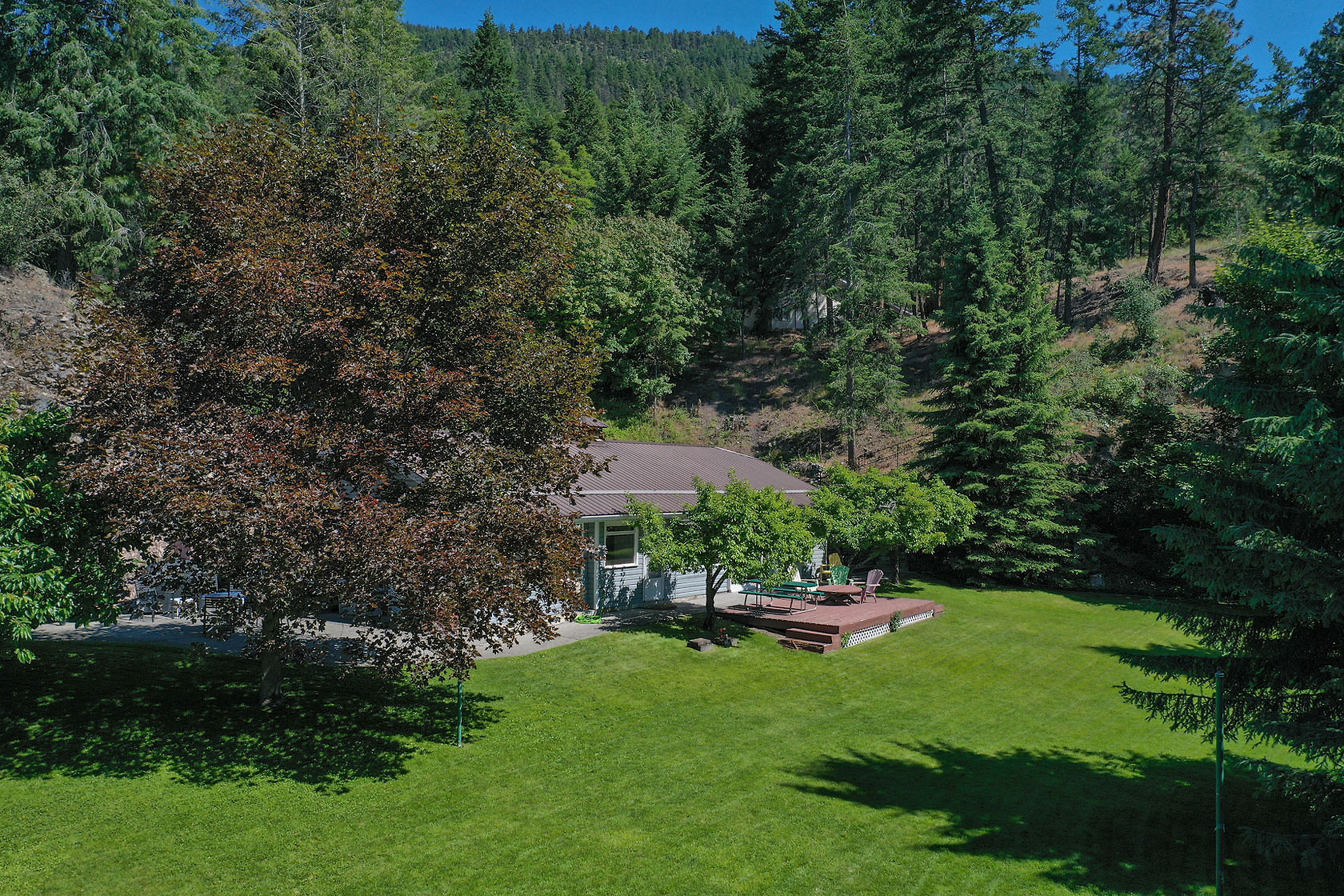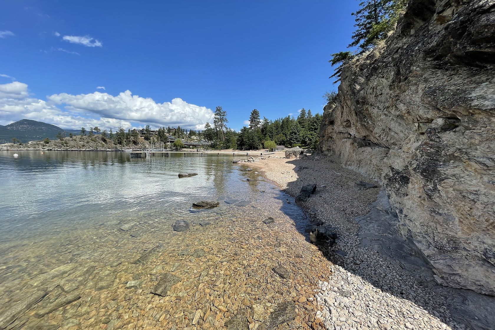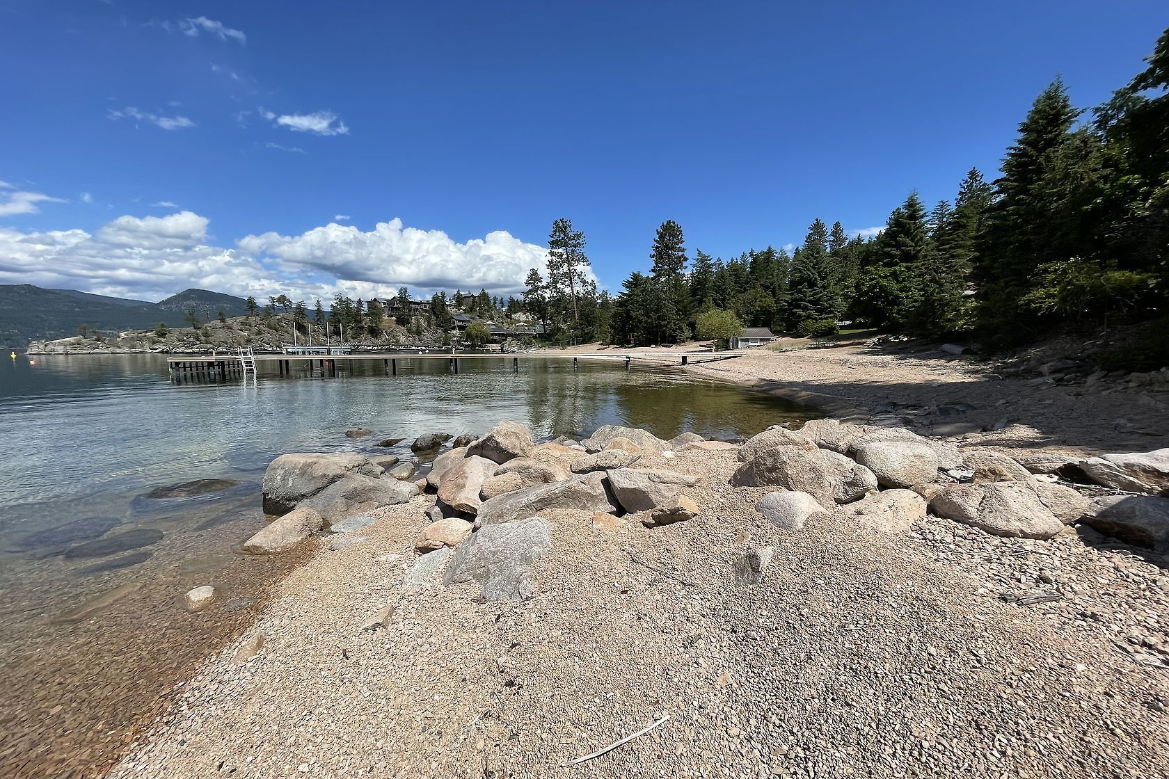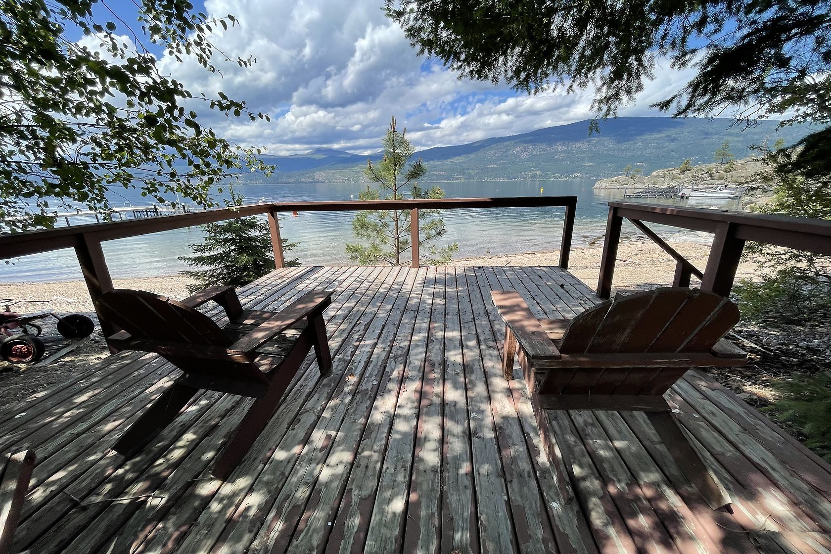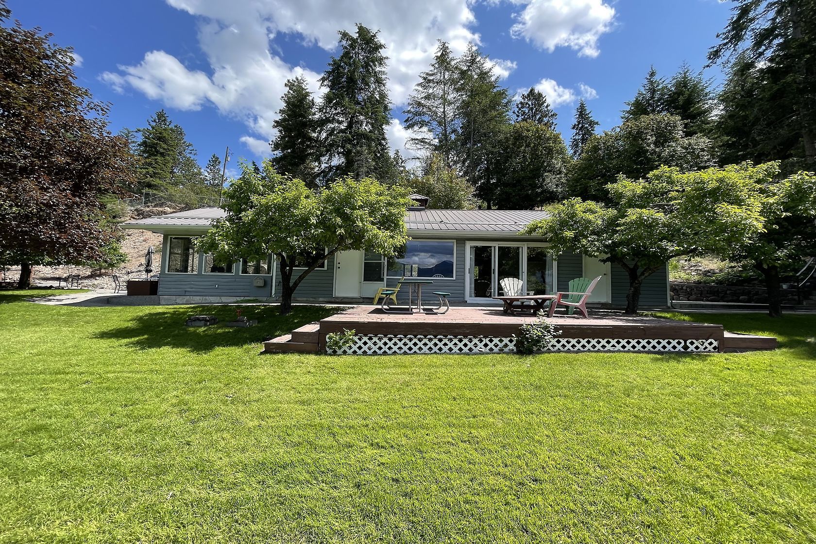 Sand, Sunsets & Space. This is a rare Gem with approx. 3 acres & 415 feet of gorgeous level Lakefront with a Home, Cottage & Shop awaiting your ideas....dream big, this property has it all and more! Large lawn area at Lakeside with the kind of privacy only a large acreage can provide and all gated and fenced. The upper area is huge with fruit trees, shop and an amazing rock bluff view of the lake and mountains. Recent dock with 16,000 Lb lift, end of the road privacy, expansive lawn, wide and deep lake frontage and crystal clear water awaits you. Truly, this property will inspire you and provide decades of enjoyment and memories. There is only one of these properties!