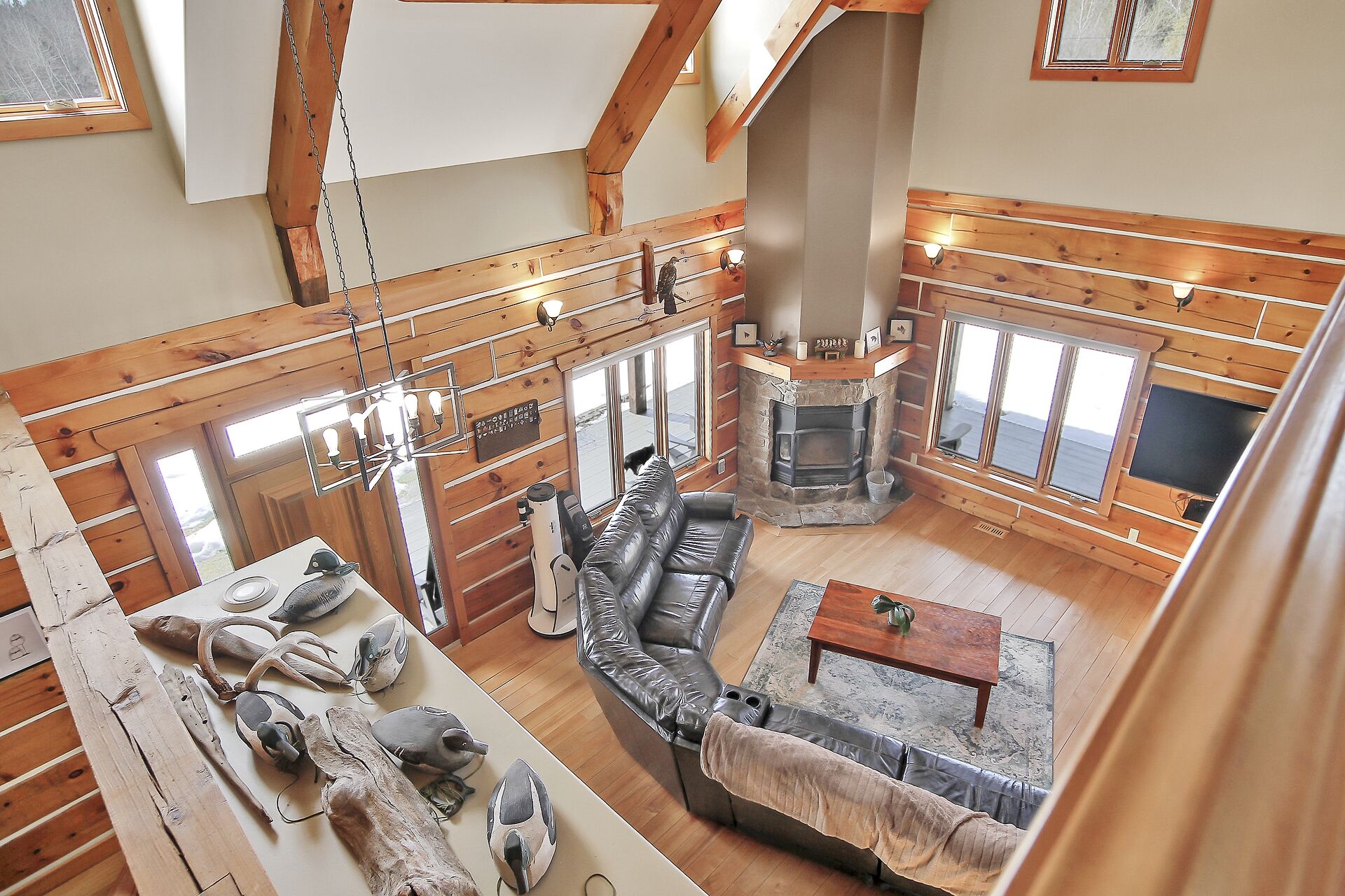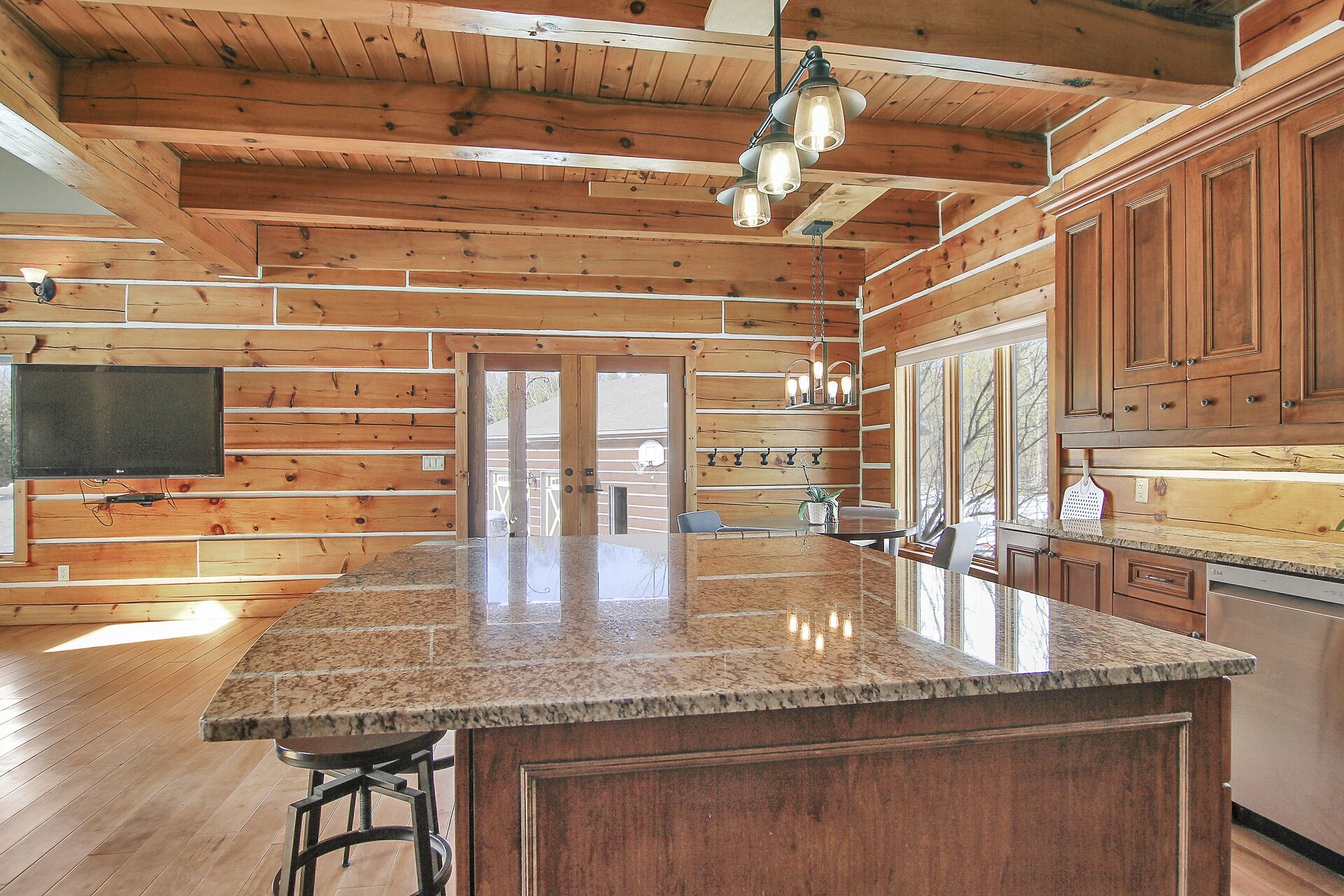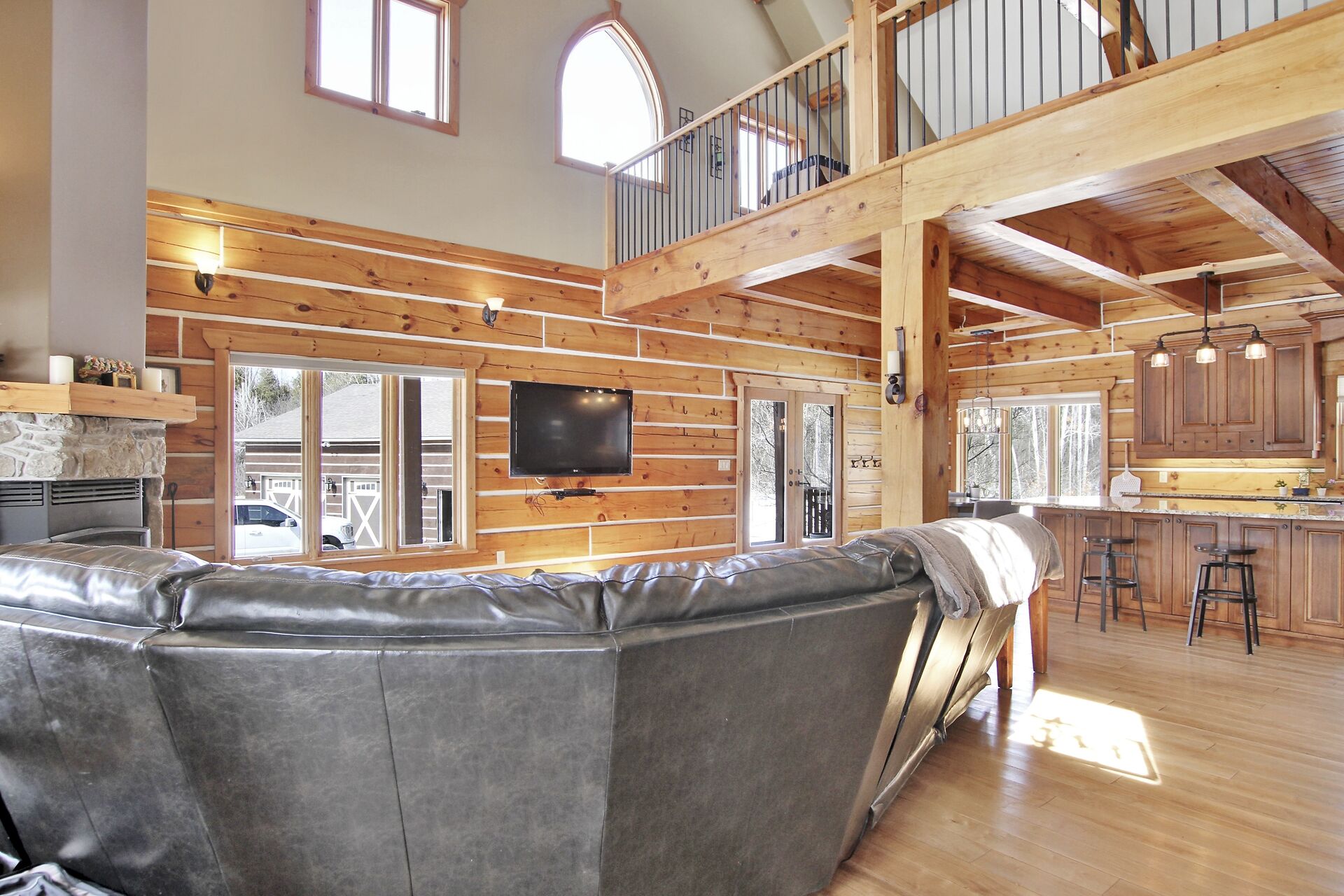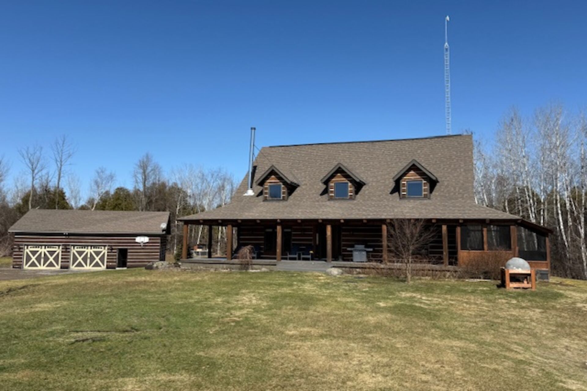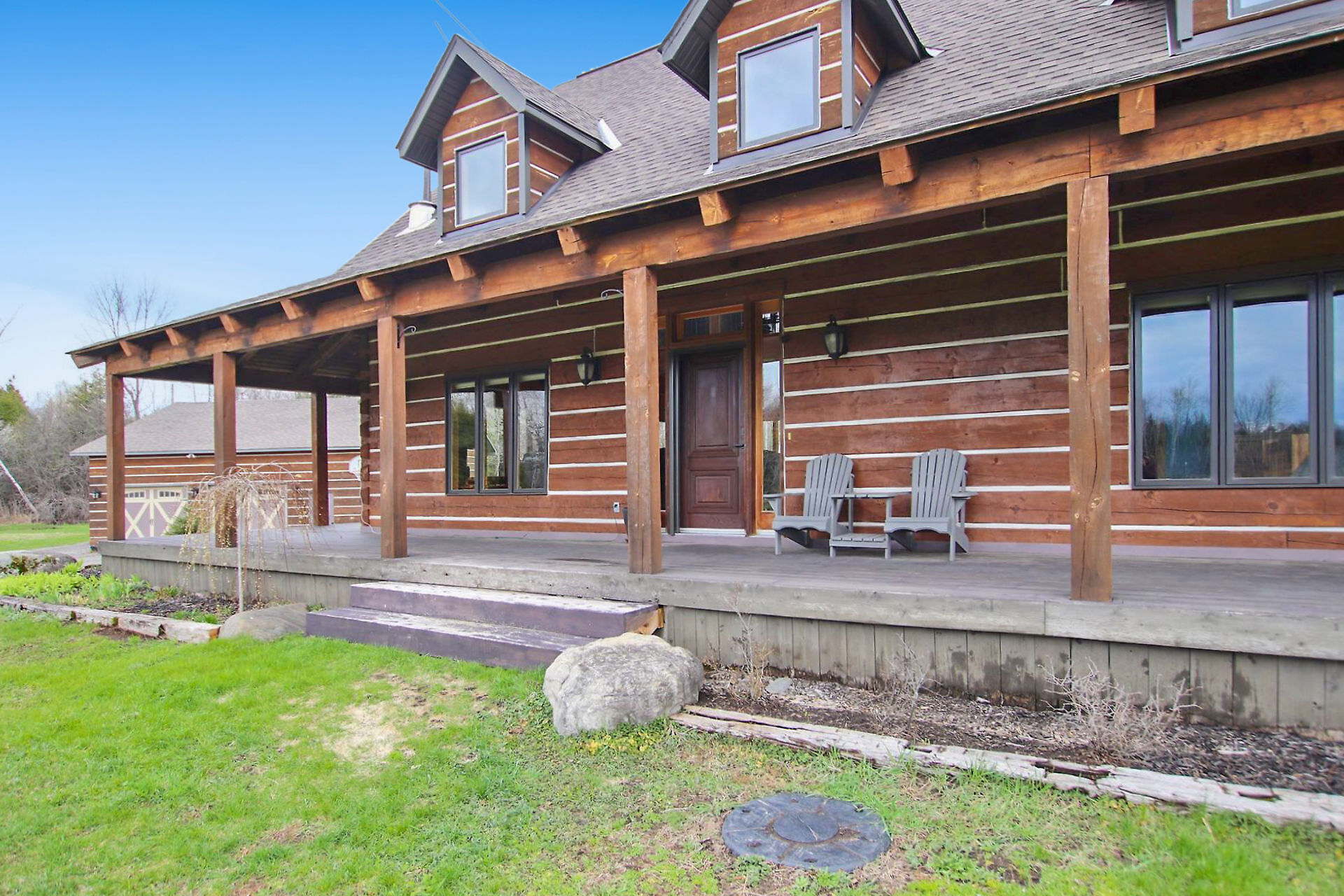 This Absolutely breathtaking custom built & designed log home is situated on 25 scenic acres w/walking trails and located only 10 min.south of Merrickville. Approx.4300 sq ft of fine living space and features incl.chef inspired kitchen w/loads of Maple cabinetry,granite counters,S.S appl.huge center island open to AWESOME lvgrm area with exposed log beams,open ceilings,H.E wood fireplace and large windows.2 bedrms,full main bathrm w/granite topped vanity and tile floors.Impressive,open riser staircase w/wrought iron spindles provide access to 2nd level where you'll find the Primary bedrm retreat w/ultra luxurious ensuite. + huge loft space! L/L recrm,hometheatre,bathrm.40x36 garage/workshop,30x12'barn.A must see !!