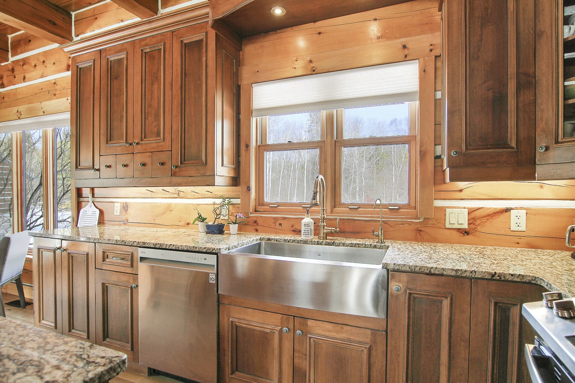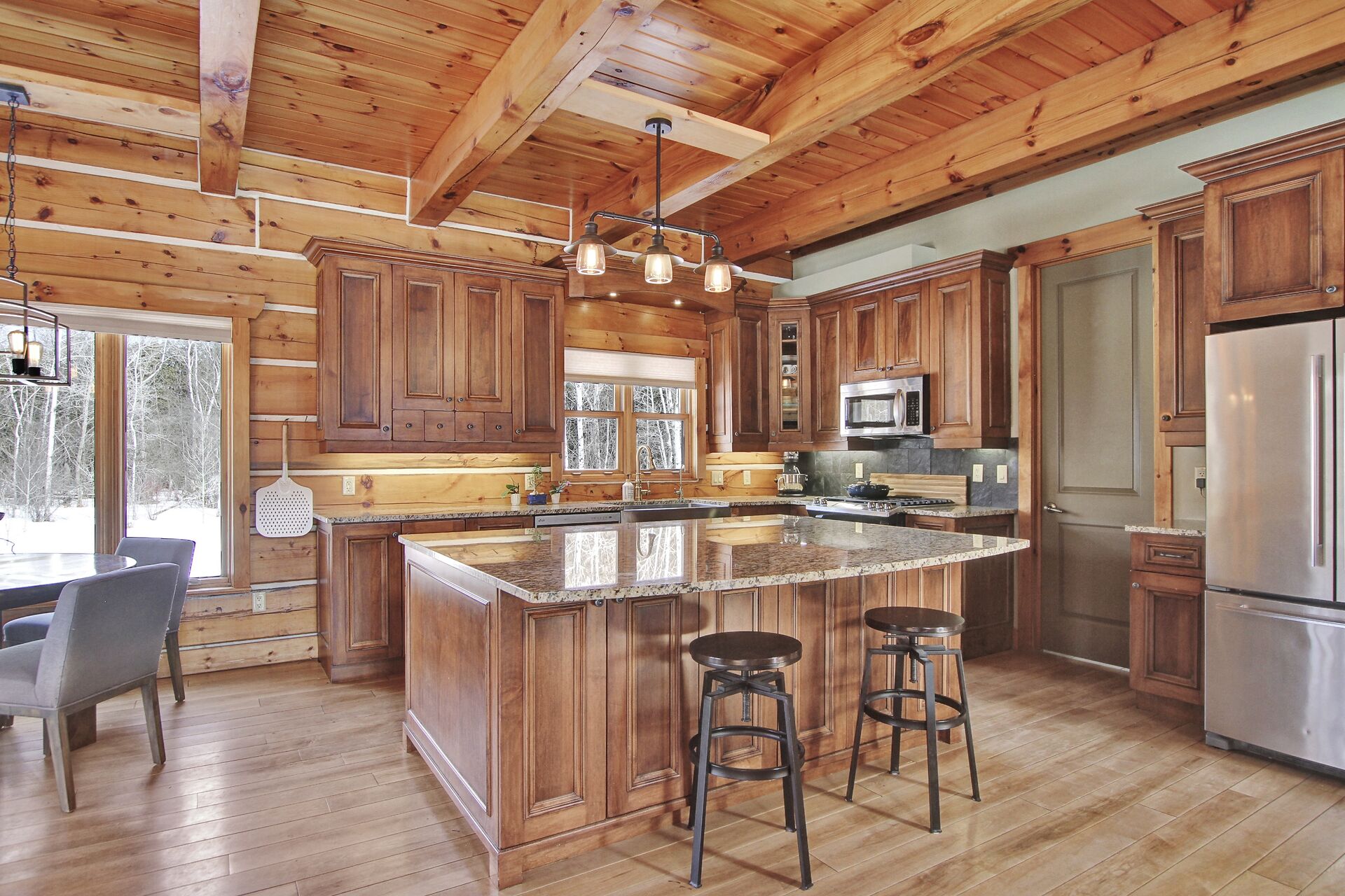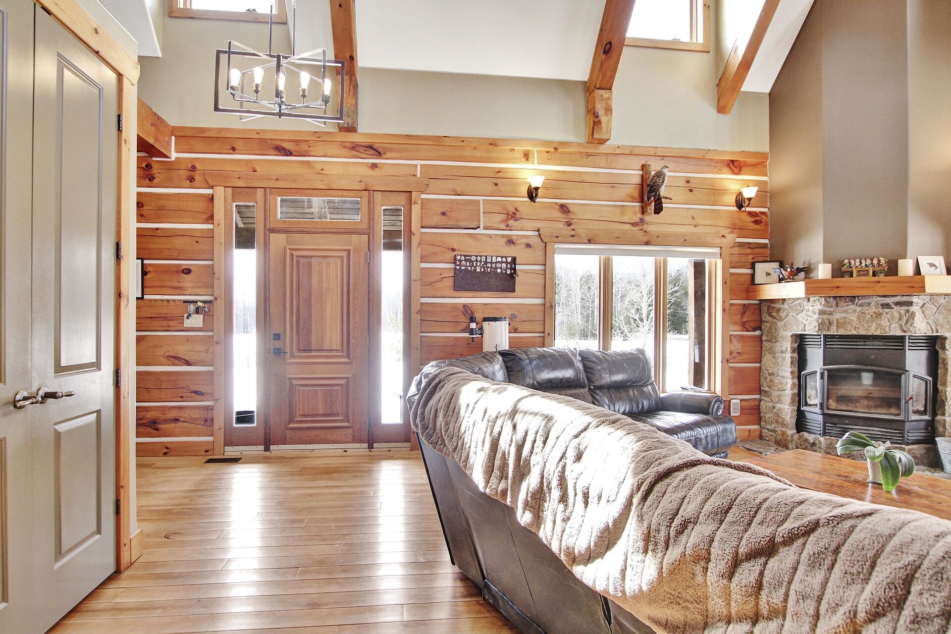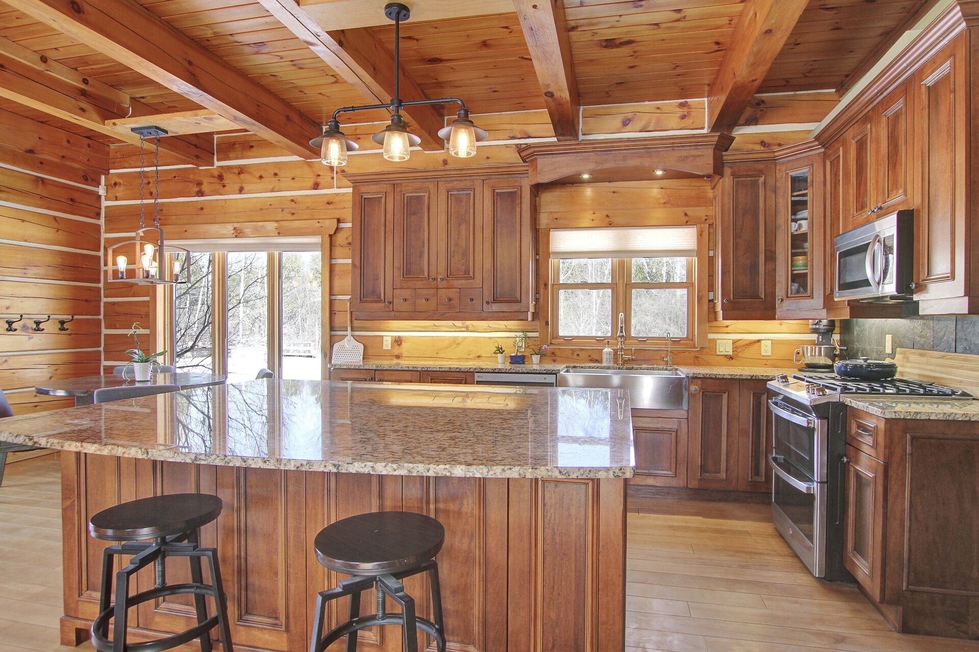 This Absolutely breathtaking custom built & designed log home is situated on 25 scenic acres w/walking trails and located only 10 min.south of Merrickville. Approx.4300 sq ft of fine living space and features incl.chef inspired kitchen w/loads of Maple cabinetry,granite counters,S.S appl.huge center island open to AWESOME lvgrm area with exposed log beams,open ceilings,H.E wood fireplace and large windows.2 bedrms,full main bathrm w/granite topped vanity and tile floors.Impressive,open riser staircase w/wrought iron spindles provide access to 2nd level where you'll find the Primary bedrm retreat w/ultra luxurious ensuite. + huge loft space! L/L recrm,hometheatre,bathrm.40x36 garage/workshop,30x12'barn.A must see !!