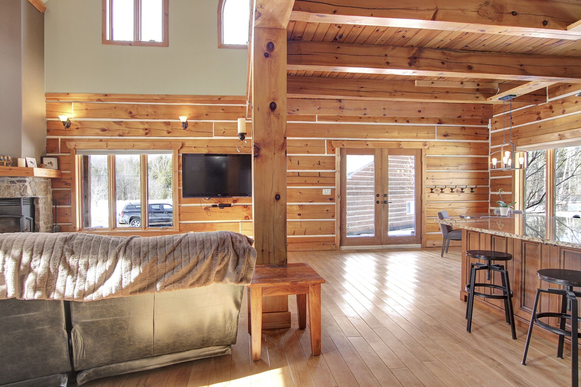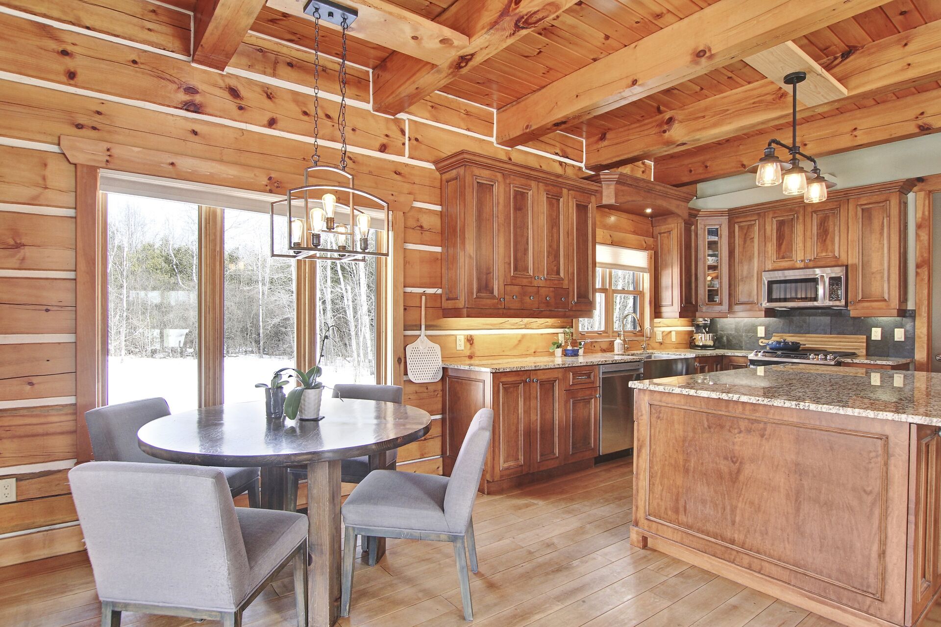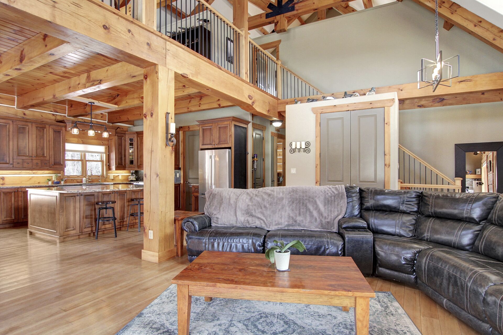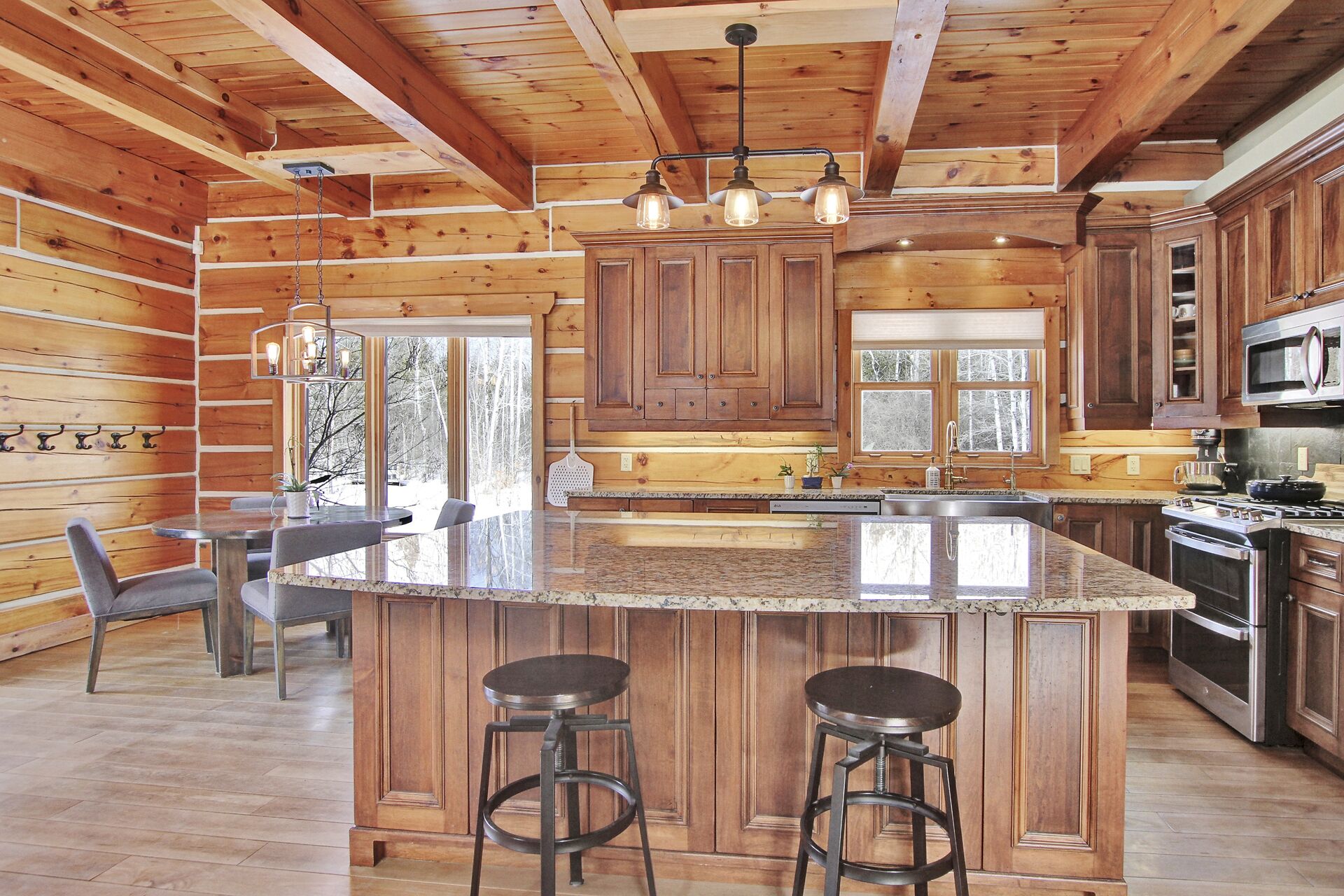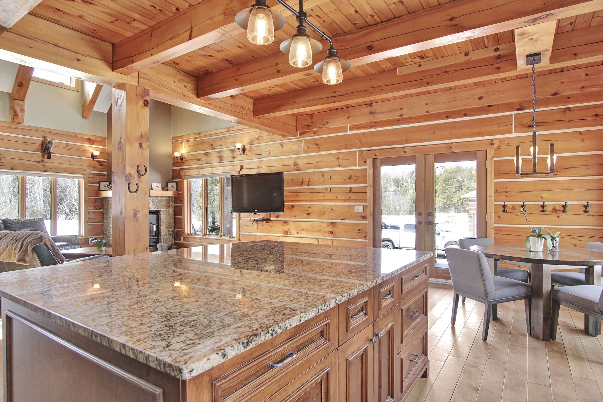 This Absolutely breathtaking custom built & designed log home is situated on 25 scenic acres w/walking trails and located only 10 min.south of Merrickville. Approx.4300 sq ft of fine living space and features incl.chef inspired kitchen w/loads of Maple cabinetry,granite counters,S.S appl.huge center island open to AWESOME lvgrm area with exposed log beams,open ceilings,H.E wood fireplace and large windows.2 bedrms,full main bathrm w/granite topped vanity and tile floors.Impressive,open riser staircase w/wrought iron spindles provide access to 2nd level where you'll find the Primary bedrm retreat w/ultra luxurious ensuite. + huge loft space! L/L recrm,hometheatre,bathrm.40x36 garage/workshop,30x12'barn.A must see !!
