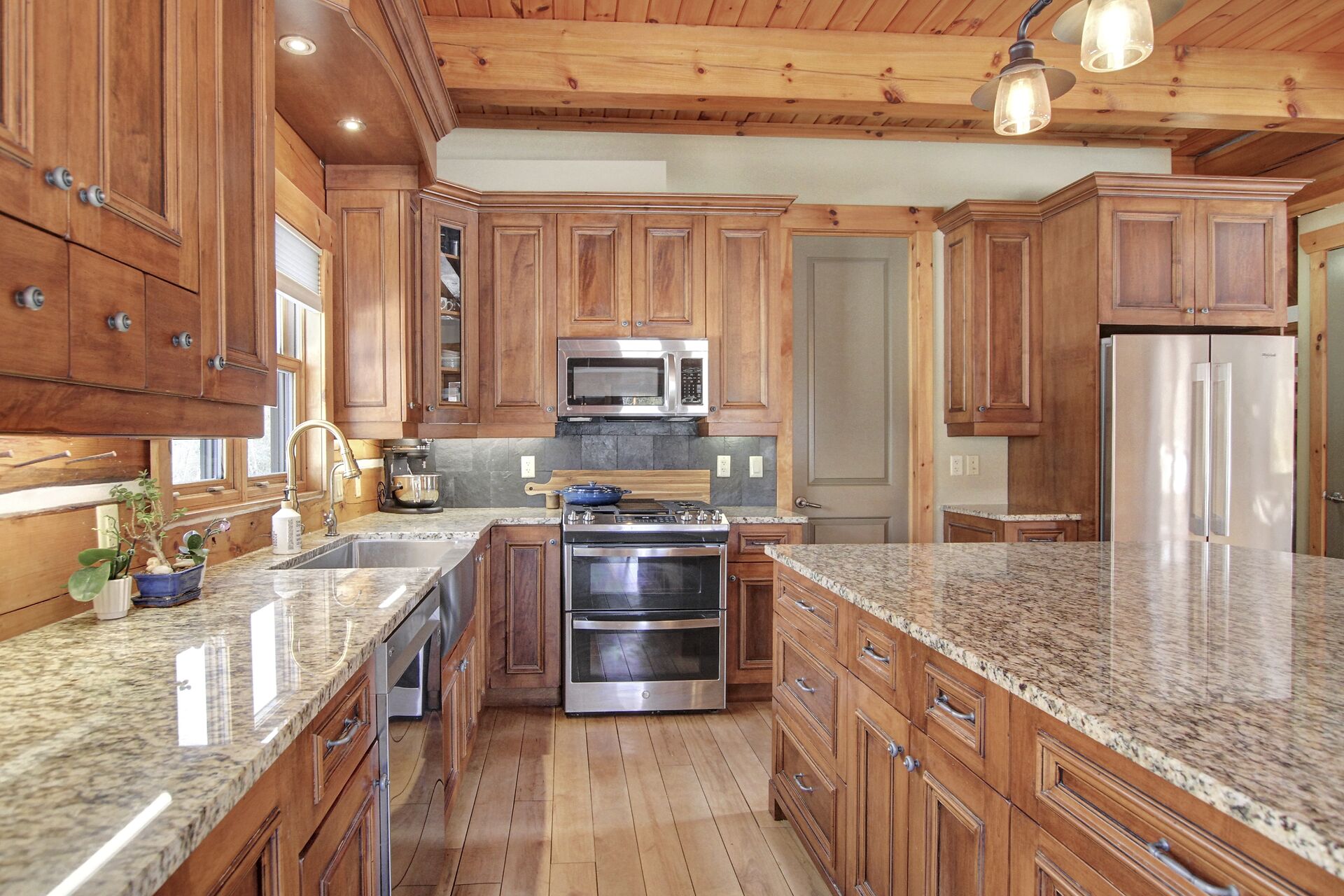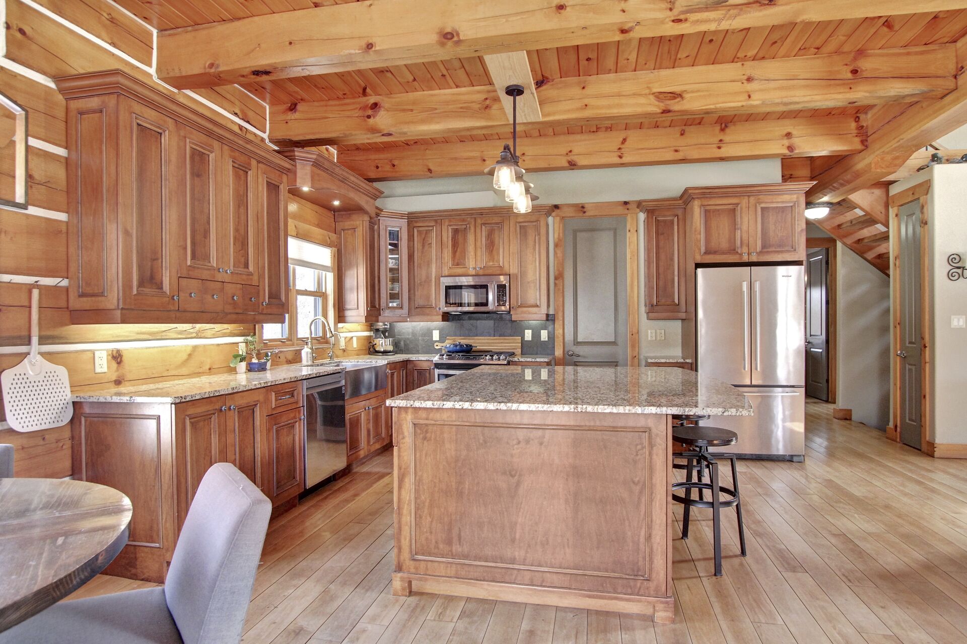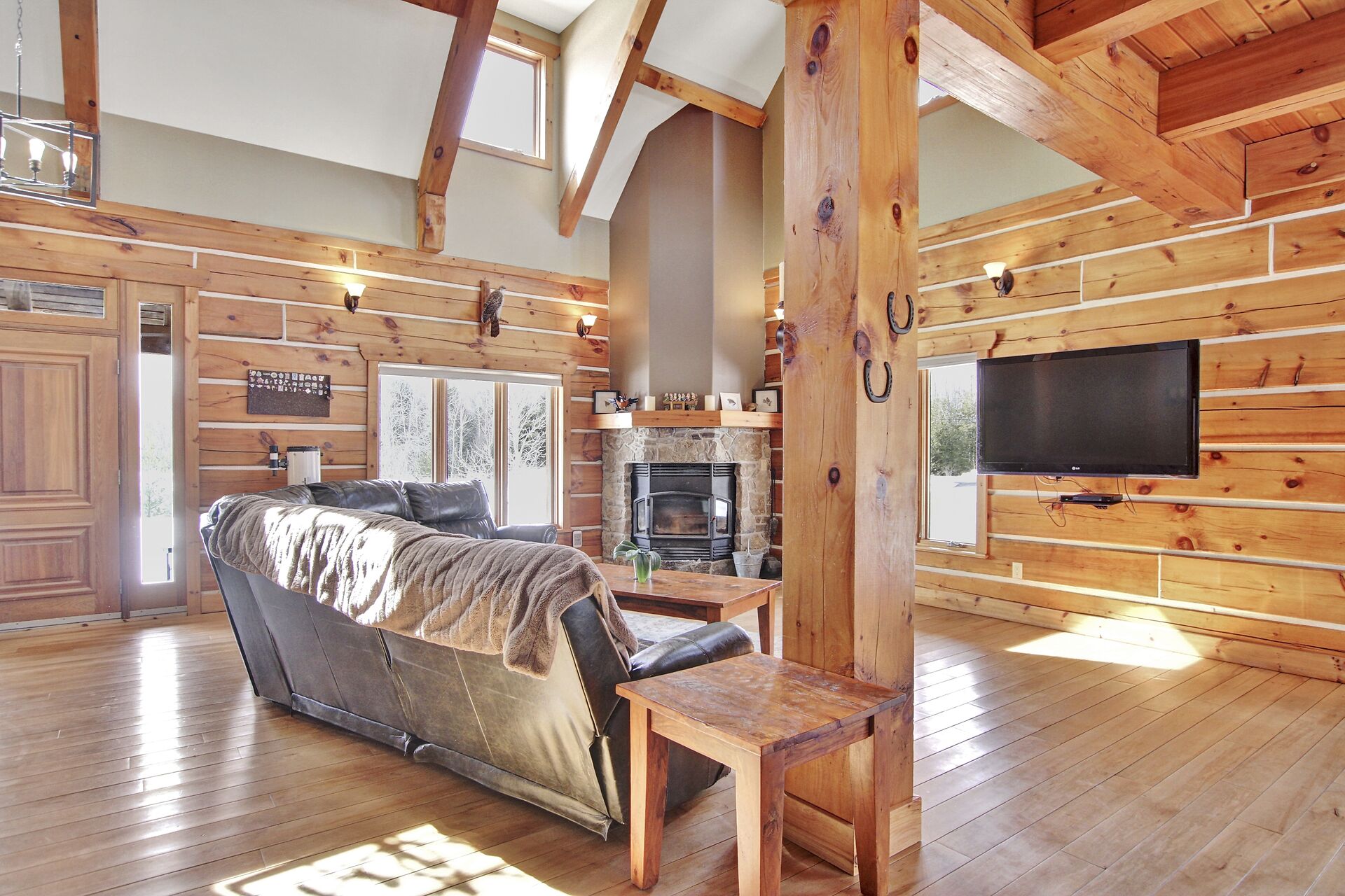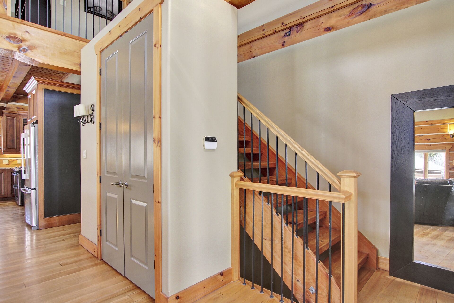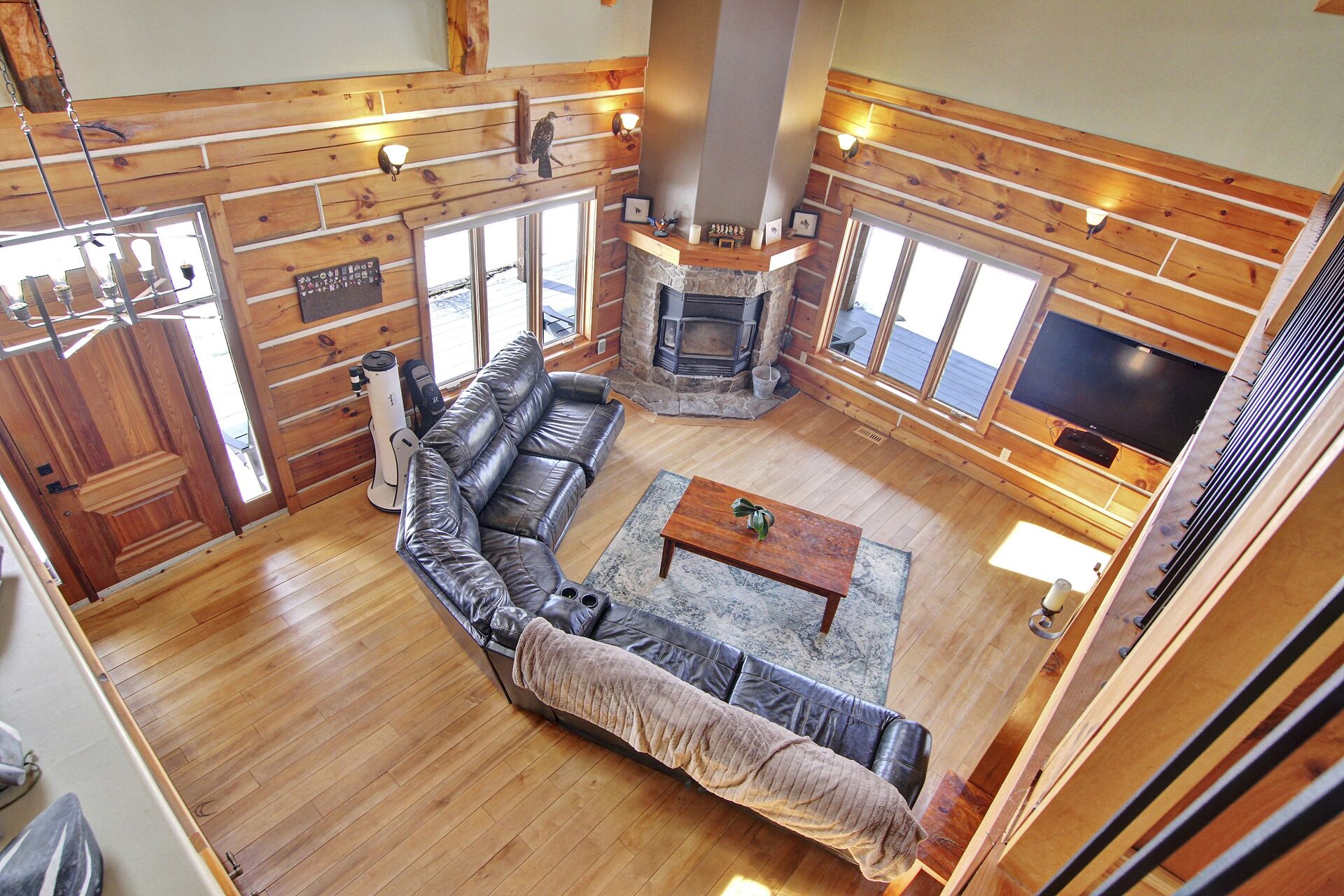 This Absolutely breathtaking custom built & designed log home is situated on 25 scenic acres w/walking trails and located only 10 min.south of Merrickville. Approx.4300 sq ft of fine living space and features incl.chef inspired kitchen w/loads of Maple cabinetry,granite counters,S.S appl.huge center island open to AWESOME lvgrm area with exposed log beams,open ceilings,H.E wood fireplace and large windows.2 bedrms,full main bathrm w/granite topped vanity and tile floors.Impressive,open riser staircase w/wrought iron spindles provide access to 2nd level where you'll find the Primary bedrm retreat w/ultra luxurious ensuite. + huge loft space! L/L recrm,hometheatre,bathrm.40x36 garage/workshop,30x12'barn.A must see !!