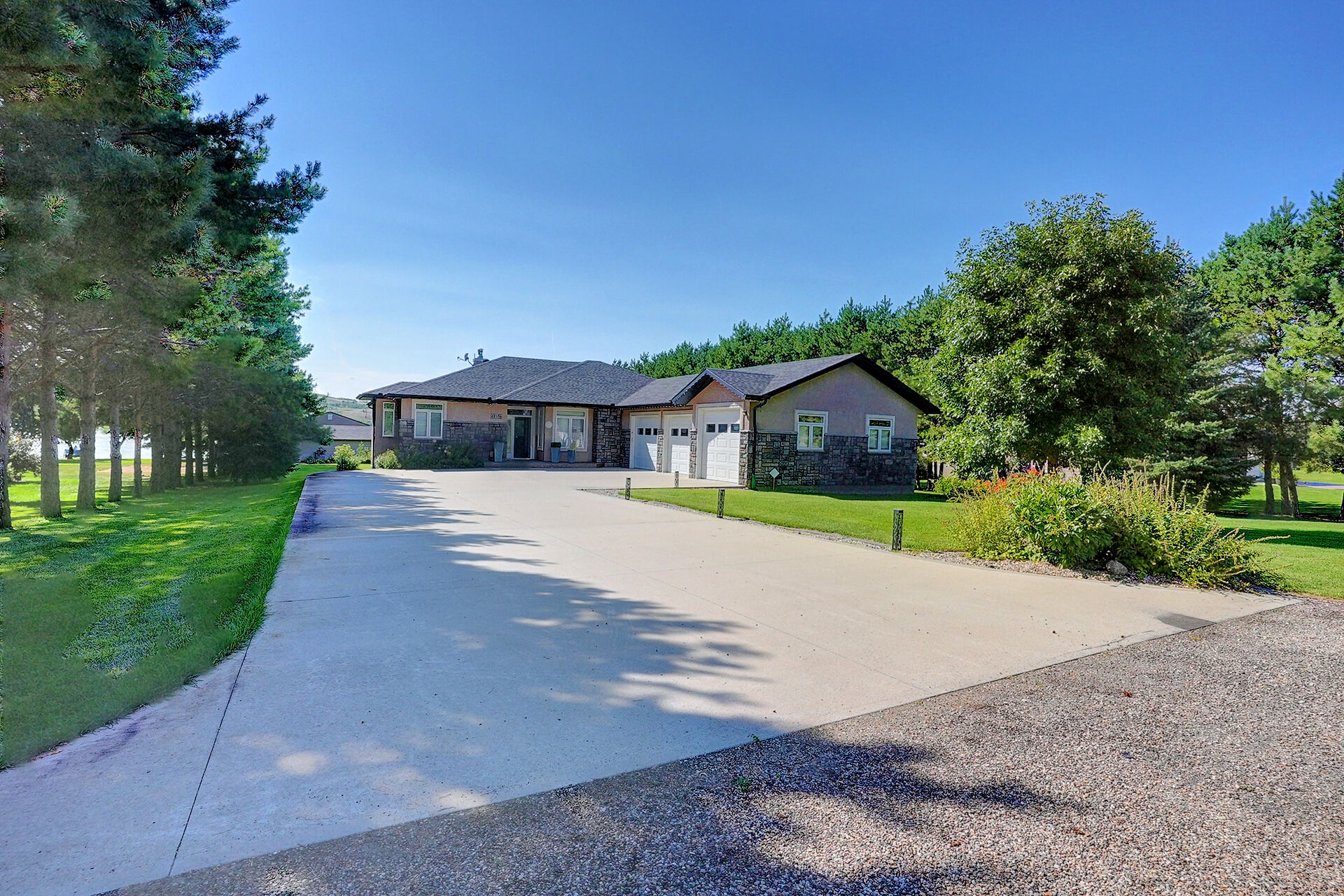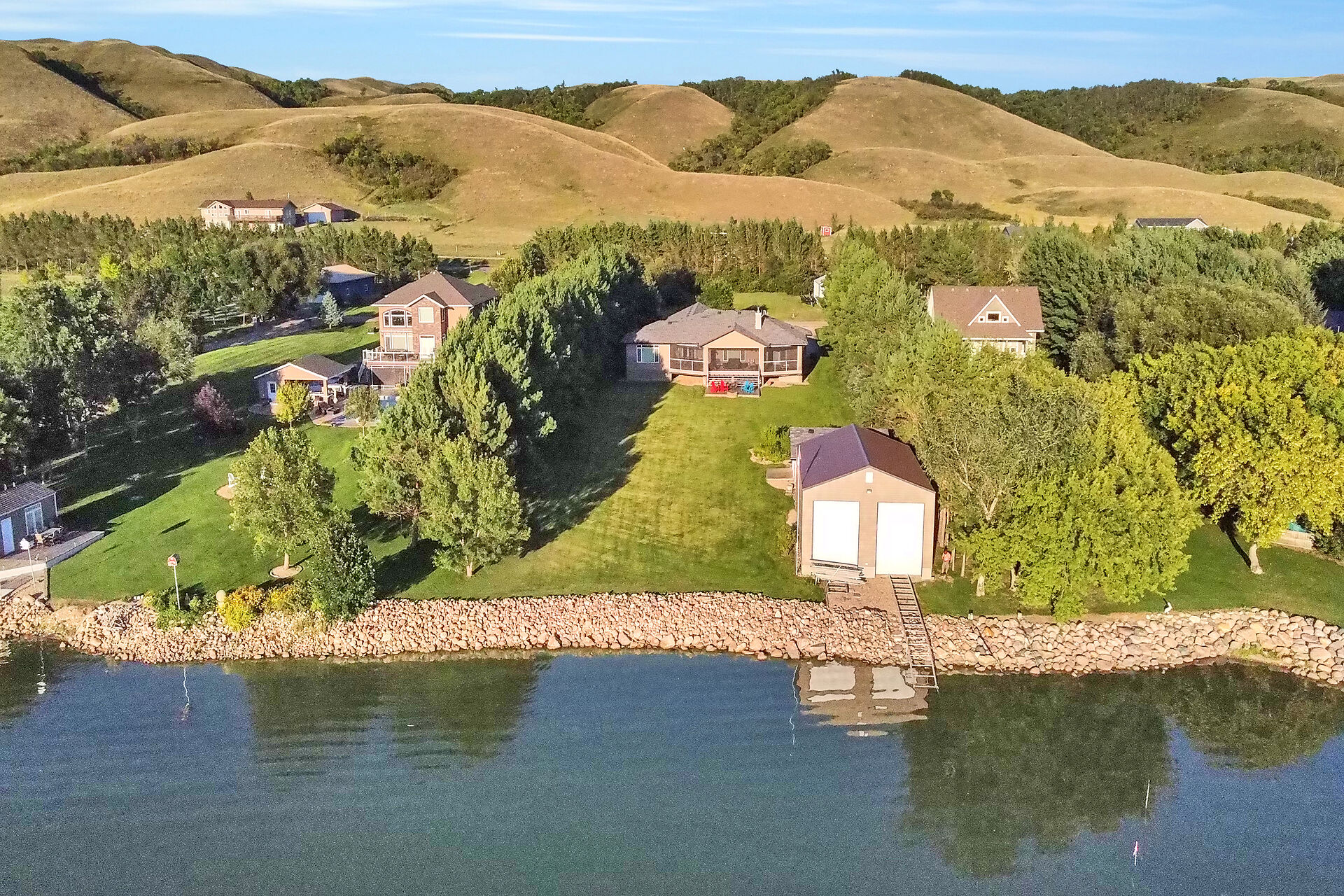 Located at Buffalo Pound Lake's North Shore Estates is the Custom-Built Waterfront Estate. Situated on three stunning parcels, this home boasts over 4100 square feet of finished living space, exquisite furnishings, and extra conveniences you will not want to live without. The stunning grounds, street appeal, and drive welcome you to the prestigious North Shore. With its tile and hardwood floors, the foyer welcomes you into the open-concept living, dining, and kitchen spaces, which are only complemented by breathtaking windows that overlook the rolling hills and lake. Off the dining room are patio doors leading to a covered deck that can be enjoyed on any day thanks to remote-controlled retractable screens!