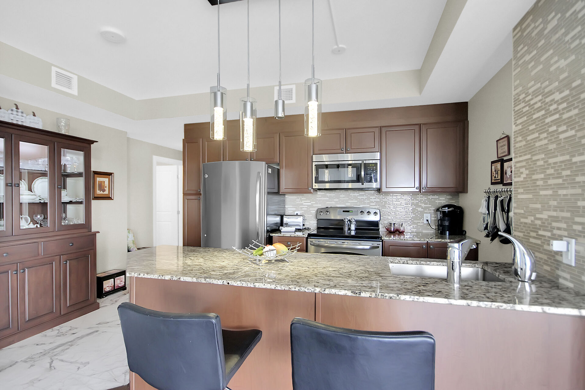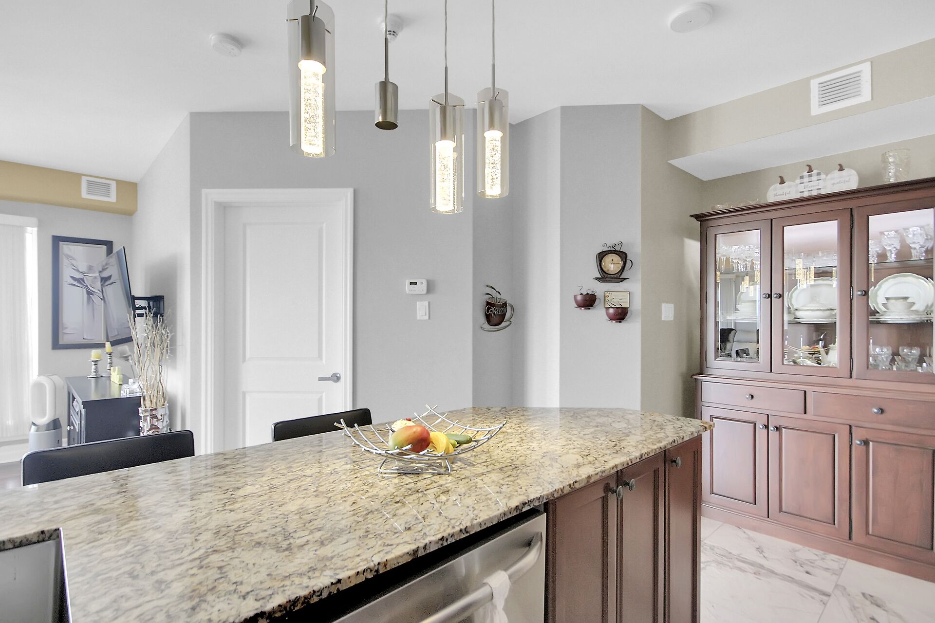 Welcome to Tiffany 2. Enjoy stunning views of the Ottawa/ Gatineau skyline from this luxurious 2-bed, 2-bath corner unit. The open concept features granite counters, a large pantry & upgraded appliances. Gleaming hardwood & new tiles add warmth & elegance. Convenient in-suite laundry, lower-level locker (P2/147) & underground parking (P2/33)! Extras include over $6K of window covering, ceiling fans, extra bath cabinets, backsplash, TV unit, 2023 washer & dryer & a China cabinet matching the kitchen. Fees include water, fitness centre, indoor pool, & party room. Walking distance to Beachwood Village, Byward Market, & NCC bike paths. You have got to Love That Home! F244-24 hrs irrevocable.
