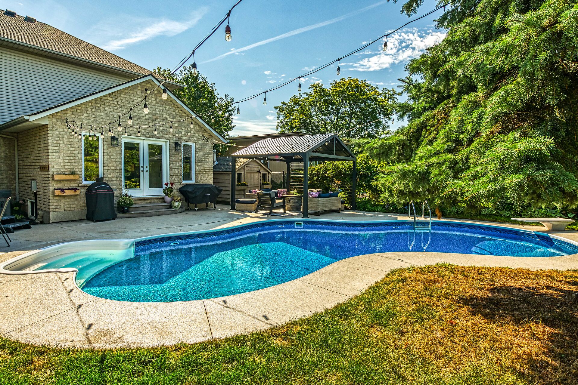 Welcome to 201 Jones Road – an executive family home blending style, function & lifestyle. This updated 3+2 bed, 3.5 bath home offers nearly 3,000 sq. ft. of finished space. Main floor features separate living, dining & family rooms, with a gas fireplace & built-ins, plus an open-concept kitchen. Upstairs boasts 3 spacious bedrooms with walk-in closets, including a primary with 4-pc ensuite. The finished lower level adds 2 bedrooms & versatile living space. Outside, enjoy a saltwater pool, hot tub & gazebo – a true backyard oasis. Close to schools, escarpment trails, wine country & quick QEW access. Move-in ready & perfect for families!