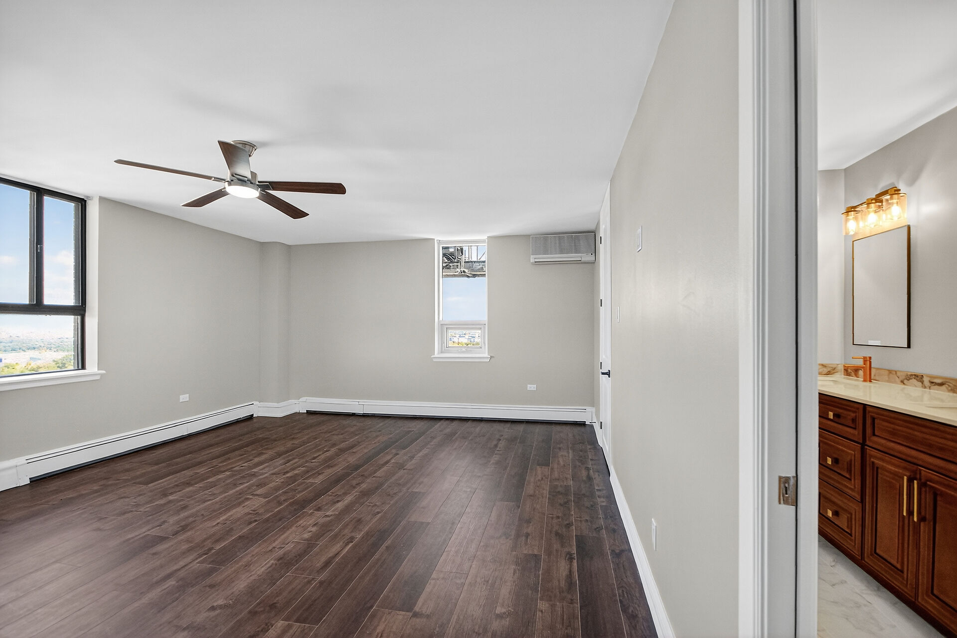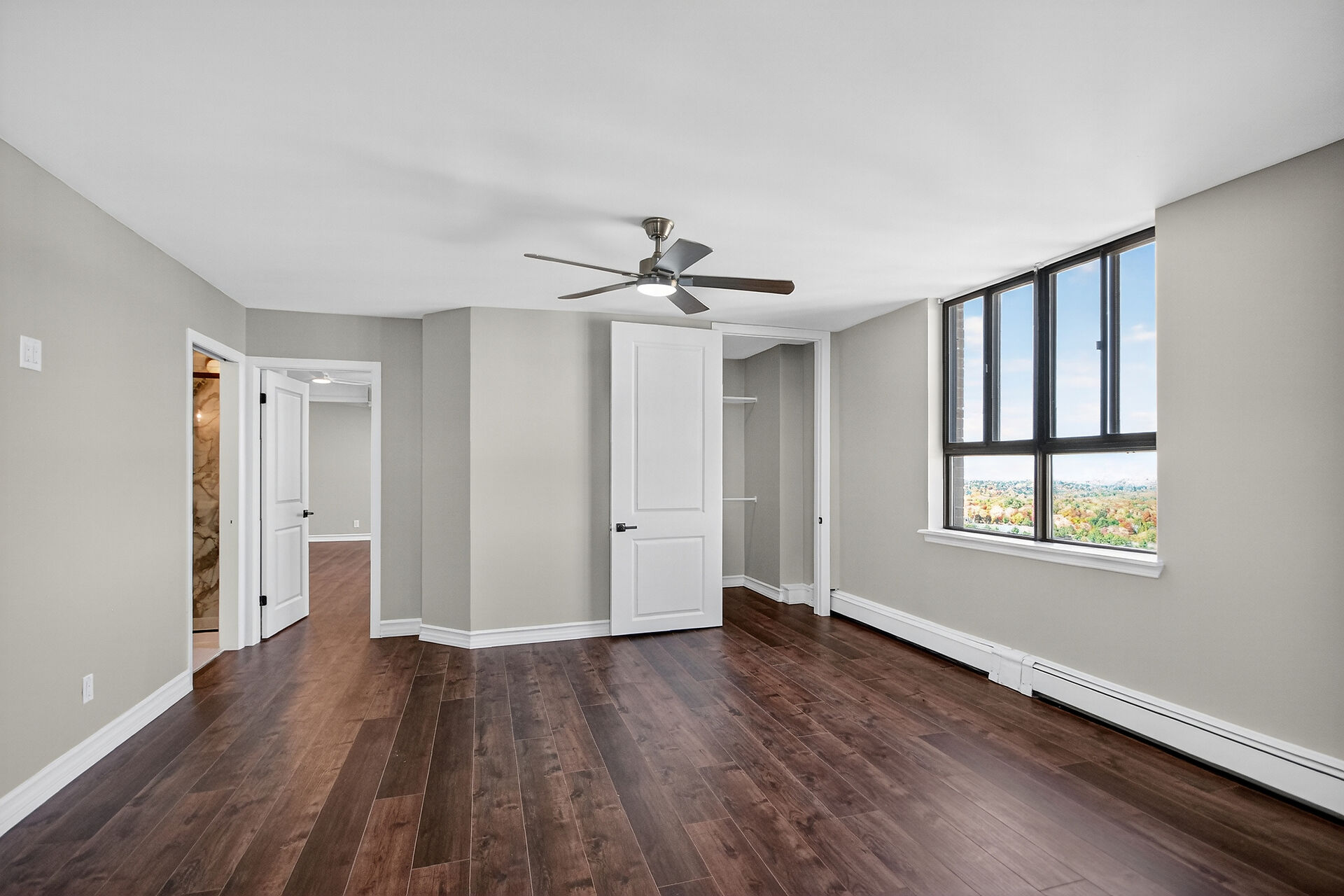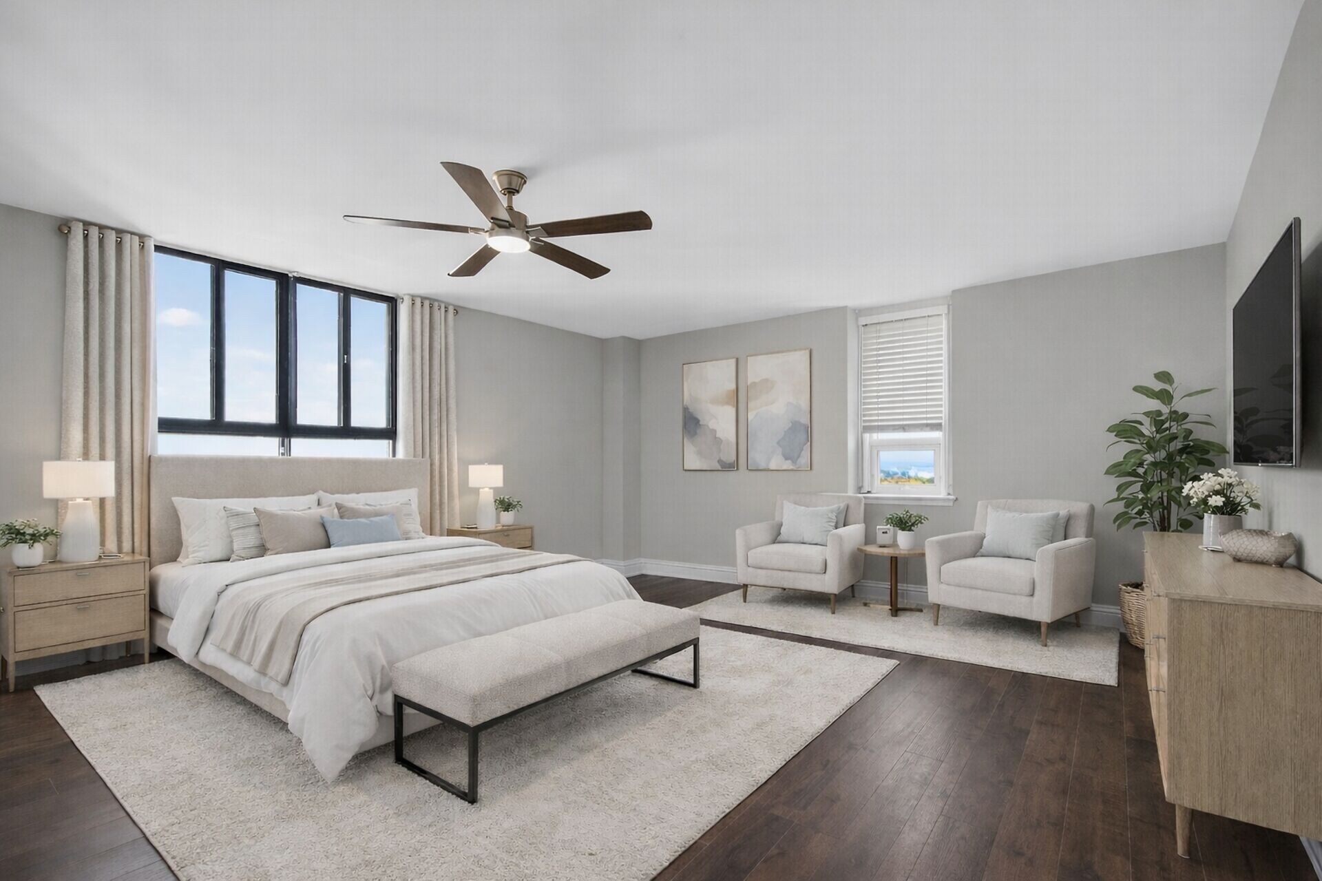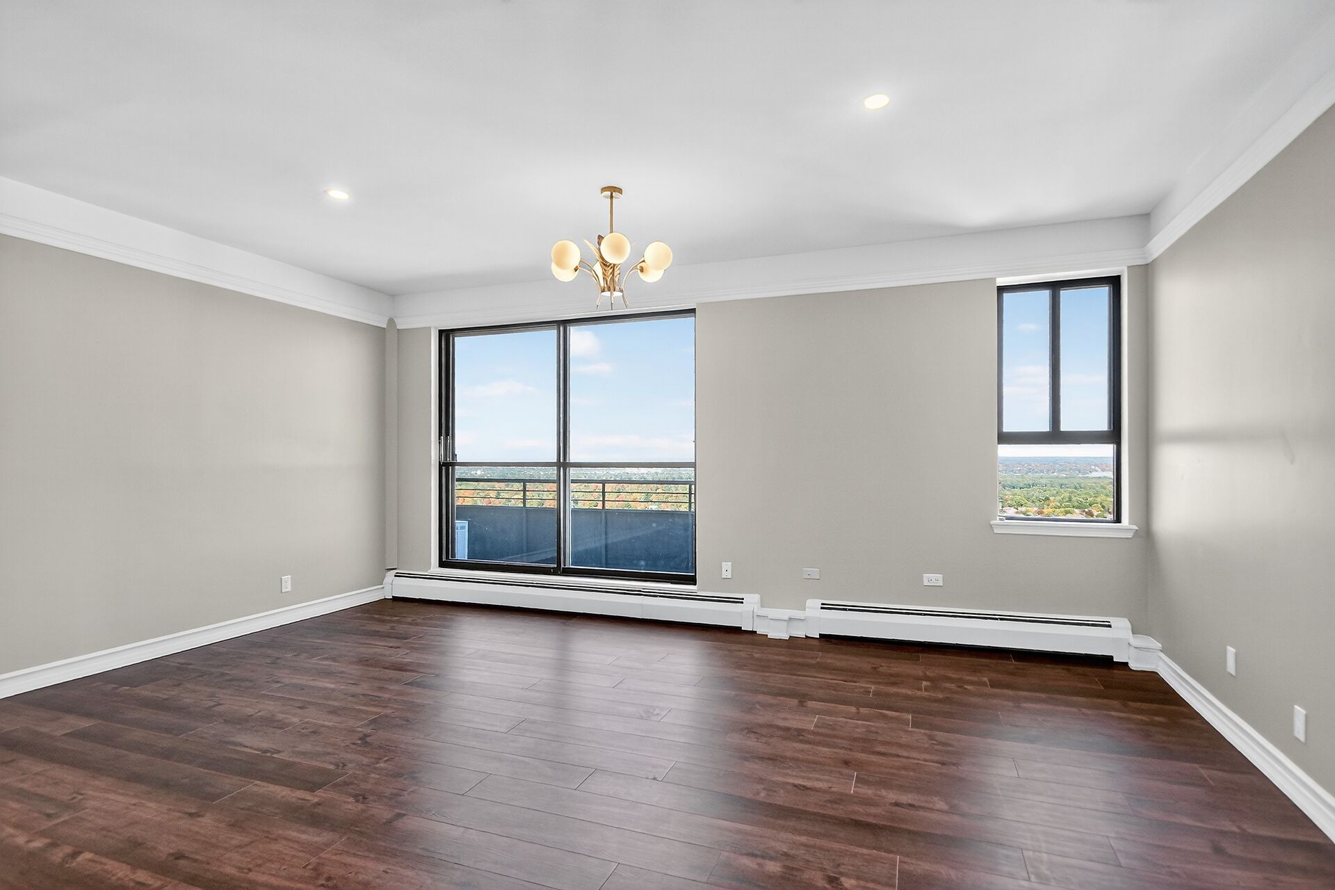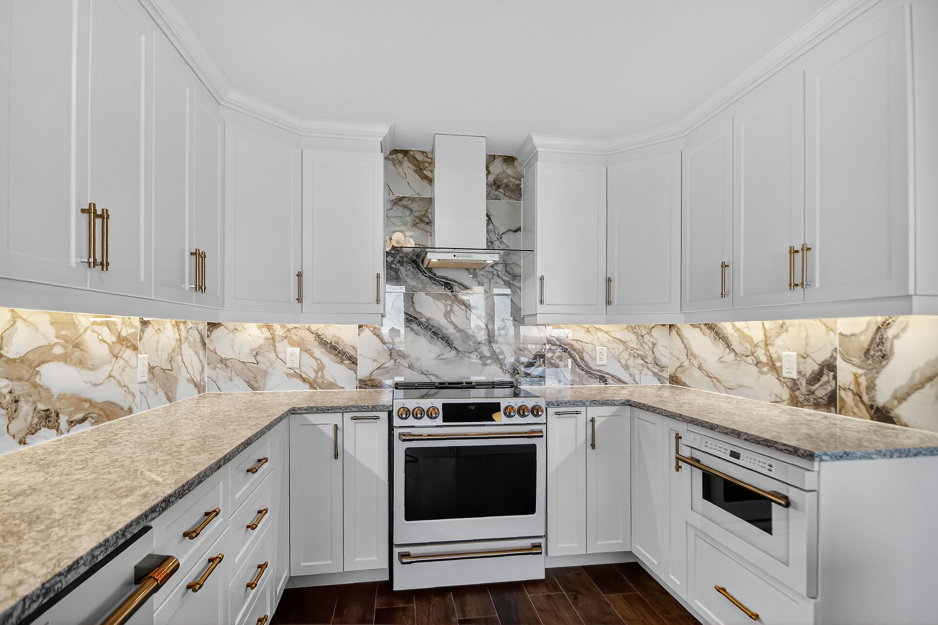 Stop the Car! Penthouse Perfection! Spectacular living, offering over 1900 sq ft of beautifully renovated living space. This stunning "home in the sky" boasts a kitchen to remember with high-end Cafe appliances, including the fridge, stove, microwave, and dishwasher, complemented with a wine fridge and euro style hood fan. Note the elegant granite countertops and gorgeous dramatic backsplash, under cabinet lighting along with an 8-foot island / breakfast bar. Ample storage in this kitchen and room for a large kitchen table. A balcony off the kitchen. The unit features continuous vinyl click flooring throughout, no carpets. This exquisite penthouse features a massive great room - living room and dining room combo ...