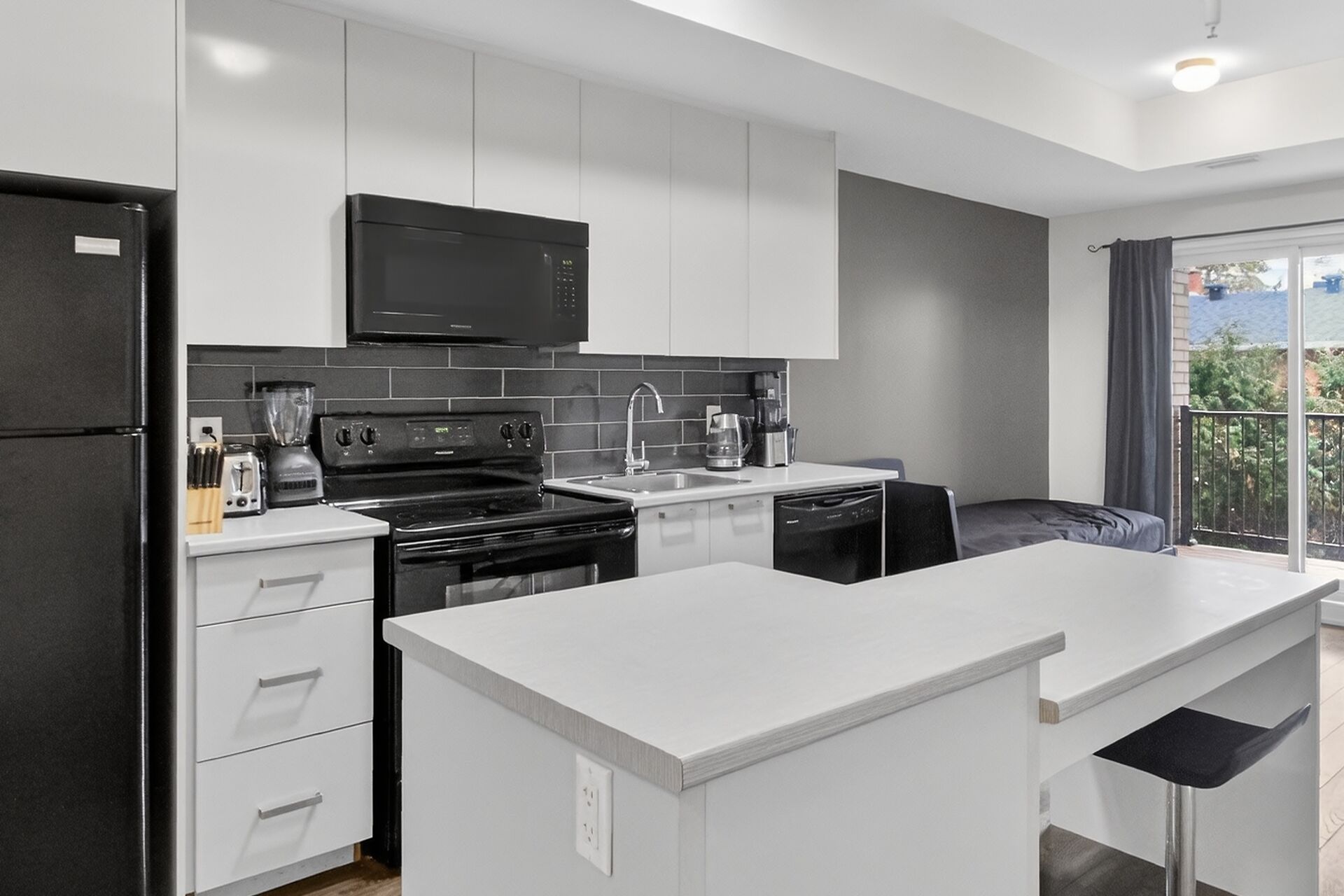 - Ample counter and cabinetry space