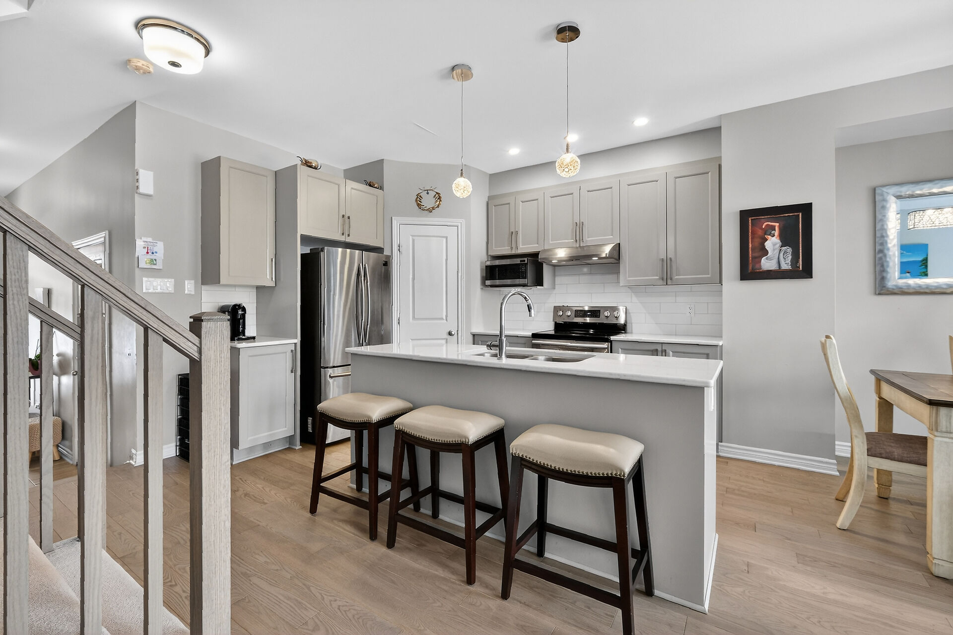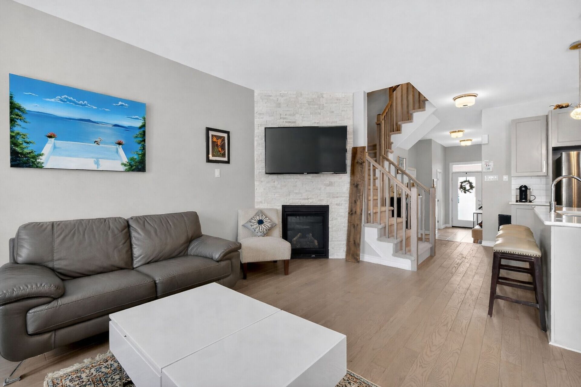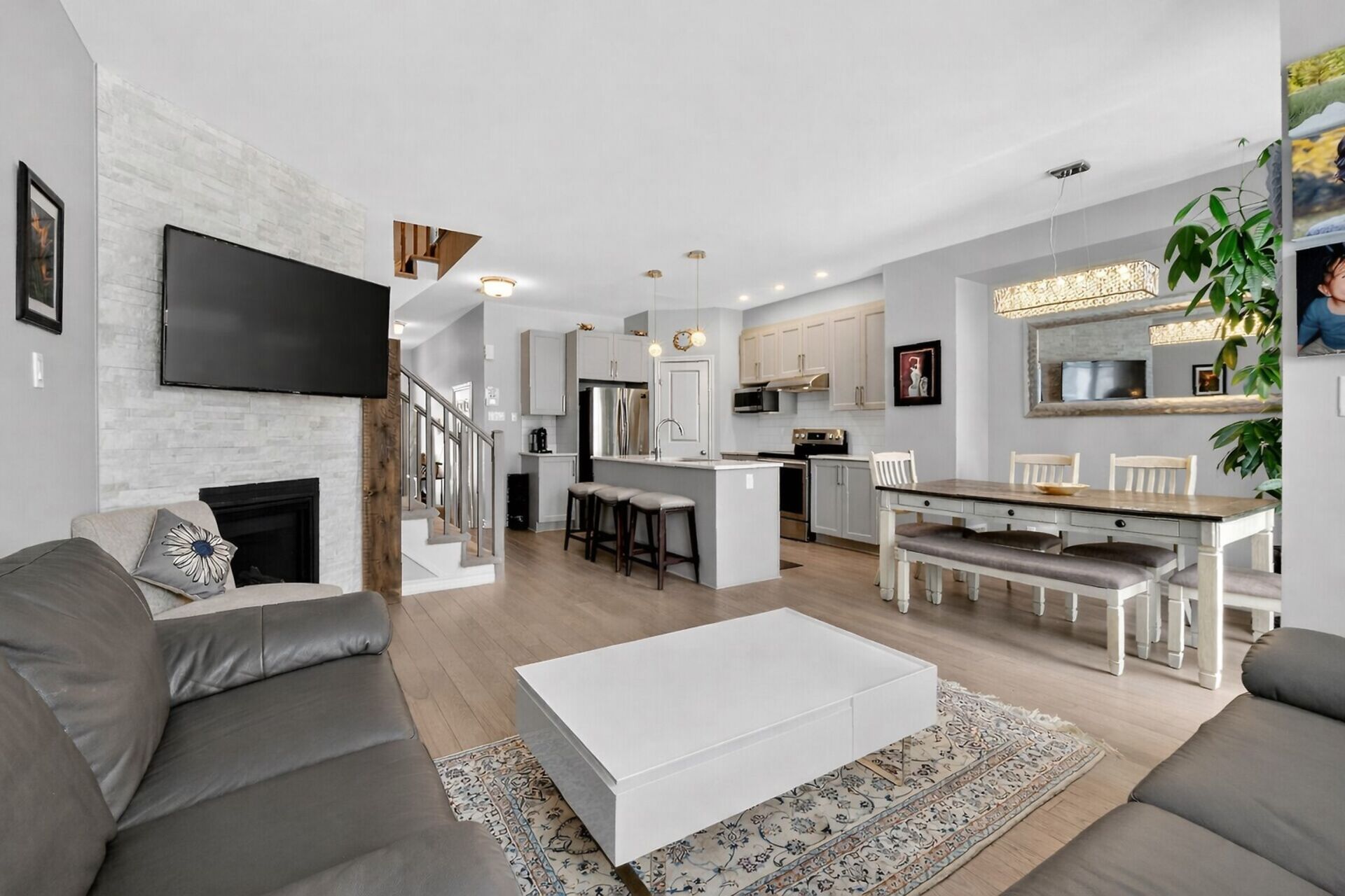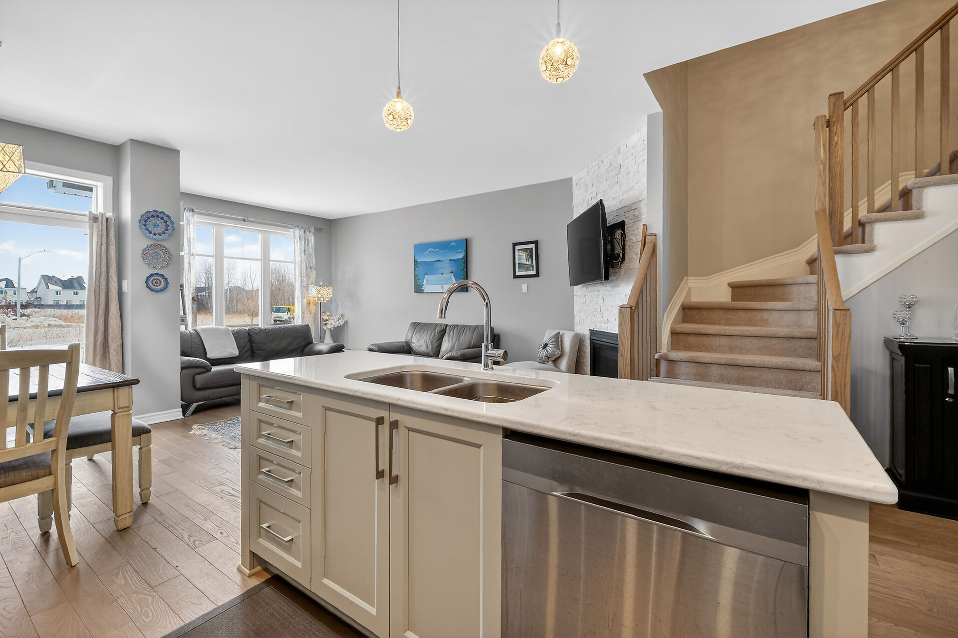 Welcome to the beautifully maintained 3 bedroom, 2.5 bath townhome located in the vibrant and family friendly community of Findlay Creek! The chef-inspired kitchen features quartz countertops, ample cabinetry, and generous prep space-ideal for hosting family and friends. Hardwood flooring flows throughout the main level, cozy fireplace that creates a warm and inviting atmosphere. Spacious eating area can accommodate a large table and chairs. On the second level, you will find 3 spacious bedrooms, including a well-appointed primary retreat with ensuite bath with separate tub and shower. Two other well-sized bedrooms, 4 pc main bath & 2nd floor laundry room. The lower level is spacious with a family room and utililty.