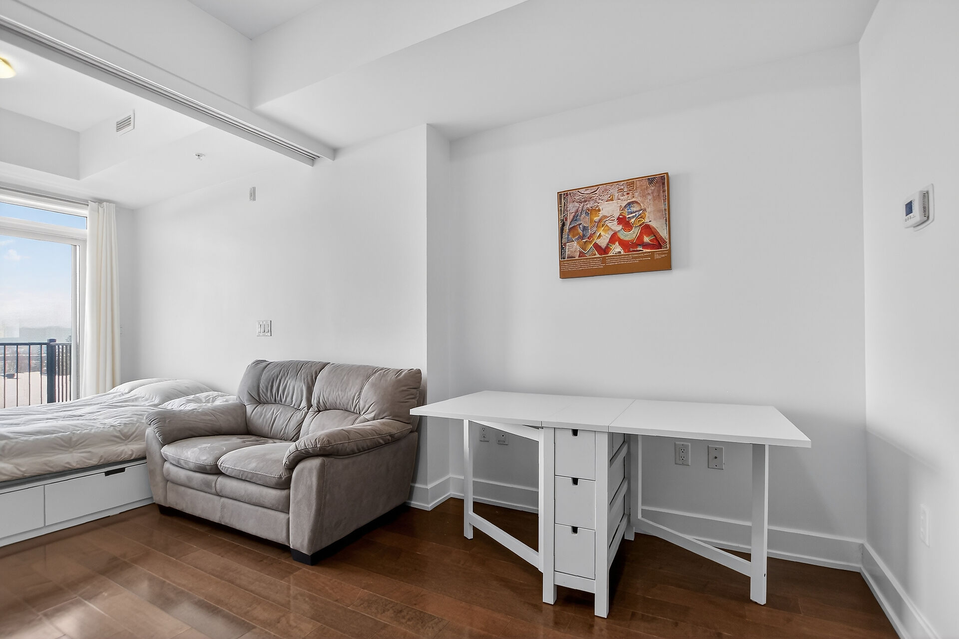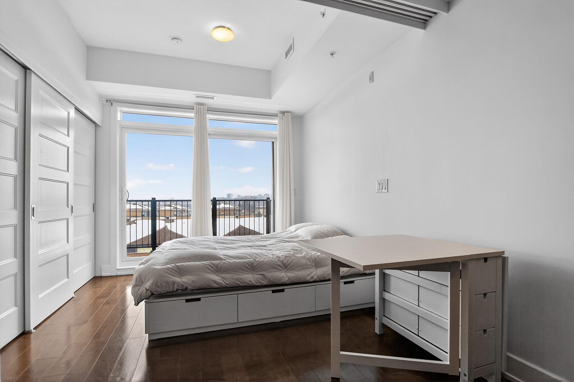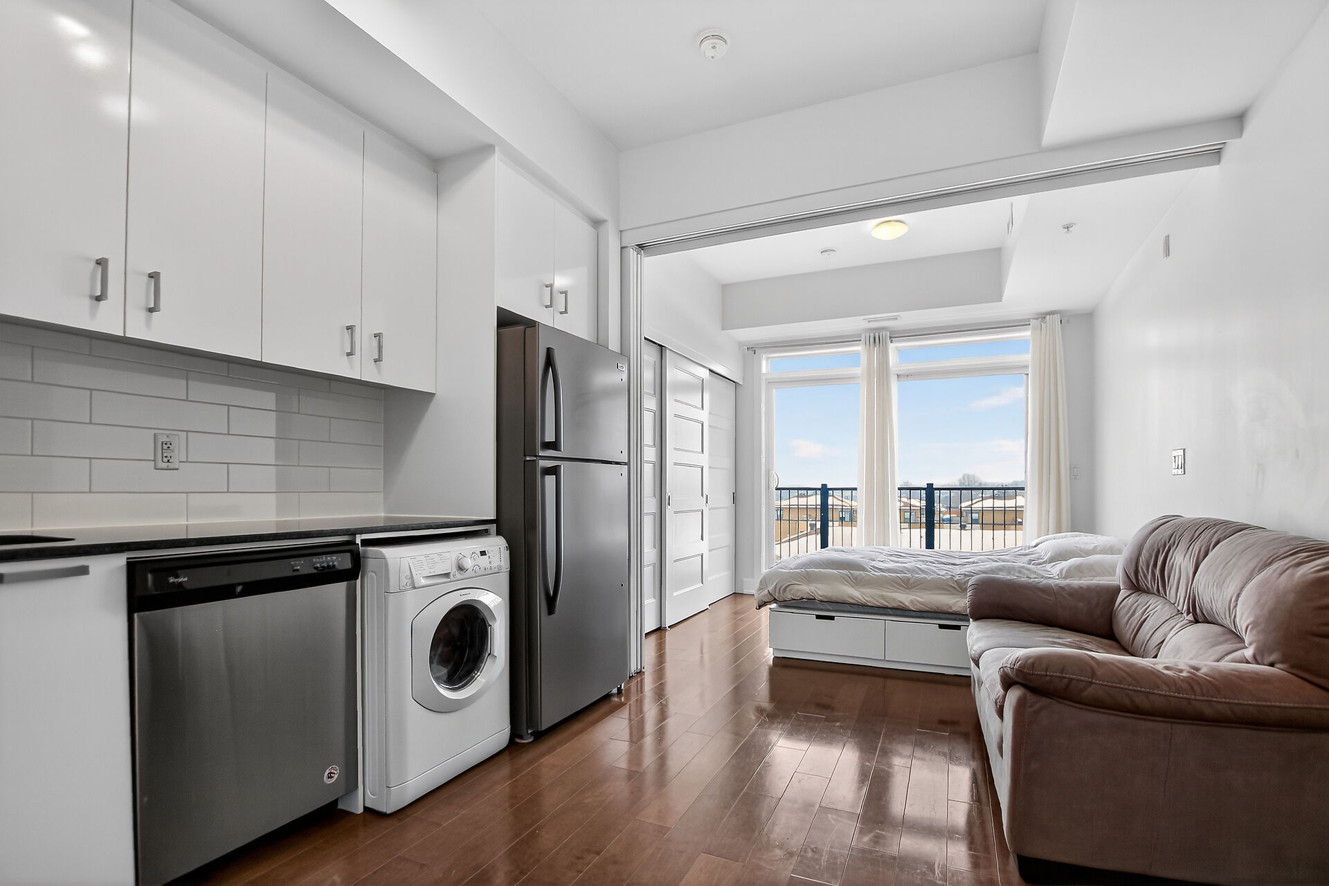 Welcome to this move-in ready condo in centrally located and amenities-filled Redwood Park & Qualicum area. Located on the top floor of this low-rise 4 level building, this bright & modern condo features hardwood floors, high ceilings and views of the city & the Gatineau Hills. The open concept living space offers a kitchen with Granite countertops, undermount sink, plenty of cabinetry, stainless steel appliances and flexible side living/dining area. Sliding panels separate the living space from the bedroom for on-demand privacy. This condo also hosts a stylish full bathroom, North facing balcony and convenient in-suite laundry. Condo includes underground parking, storage locker and can be sold fully furnished!