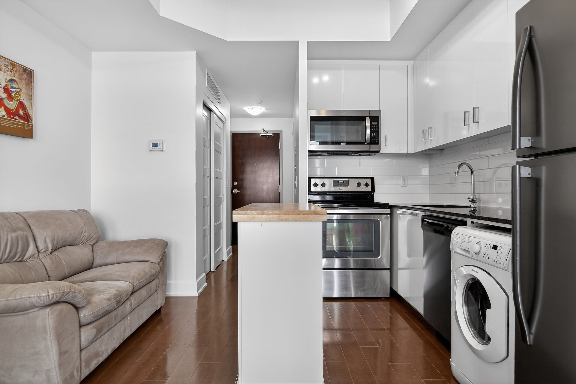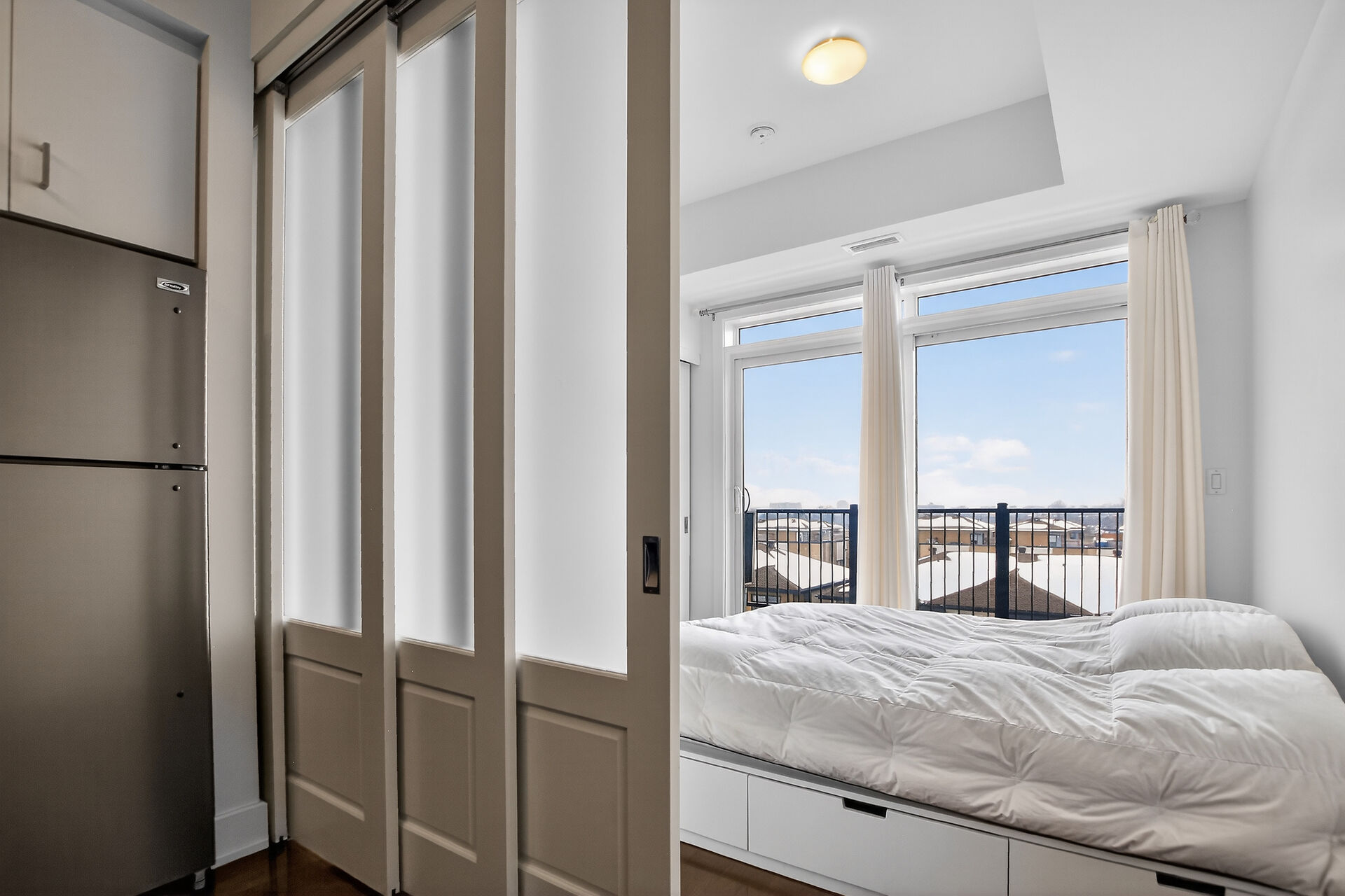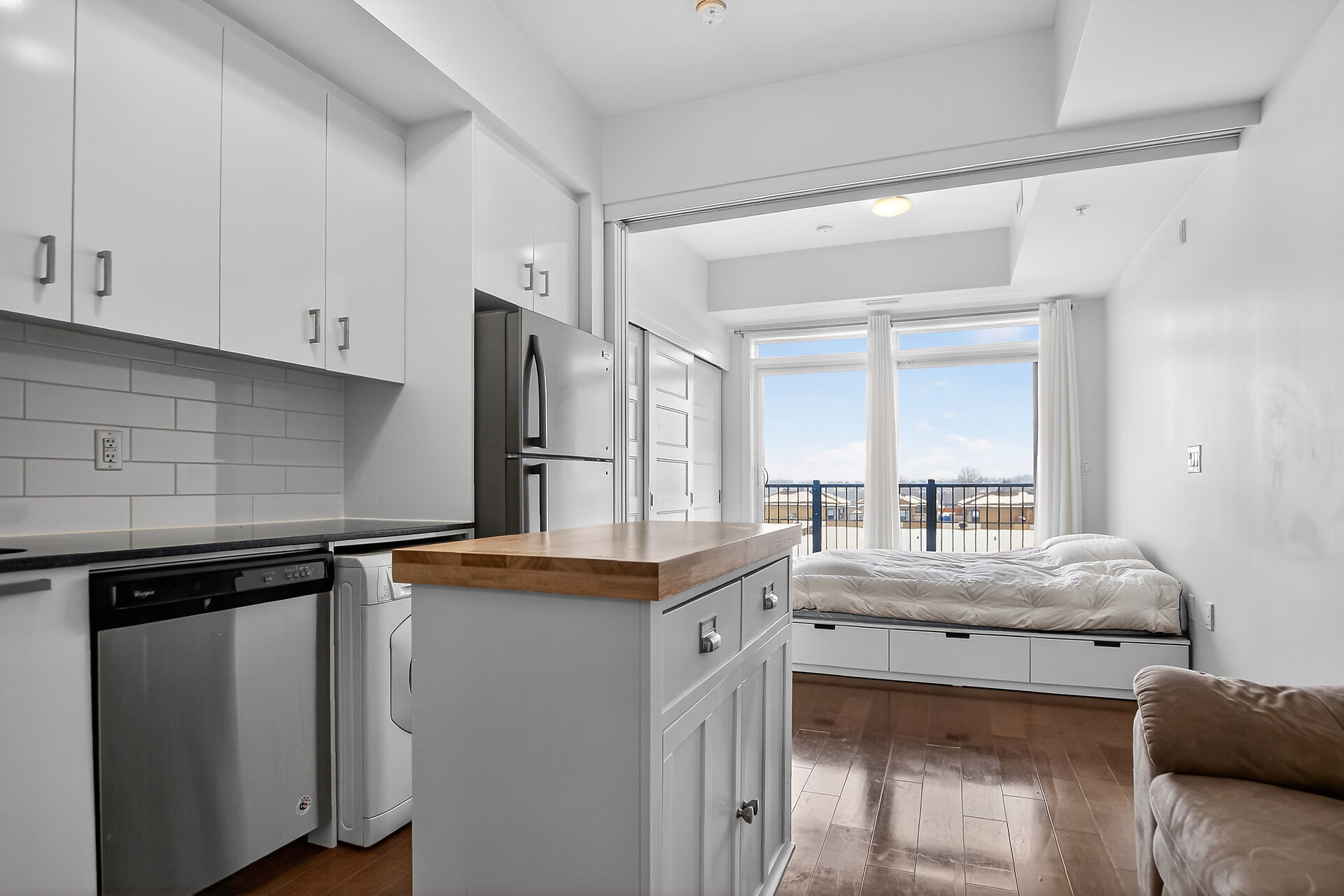 Welcome to this move-in ready condo in centrally located and amenities-filled Redwood Park & Qualicum area. Located on the top floor of this low-rise 4 level building, this bright & modern condo features hardwood floors, high ceilings and views of the city & the Gatineau Hills. The open concept living space offers a kitchen with Granite countertops, undermount sink, plenty of cabinetry, stainless steel appliances and flexible side living/dining area. Sliding panels separate the living space from the bedroom for on-demand privacy. This condo also hosts a stylish full bathroom, North facing balcony and convenient in-suite laundry. Condo includes underground parking, storage locker and can be sold fully furnished!