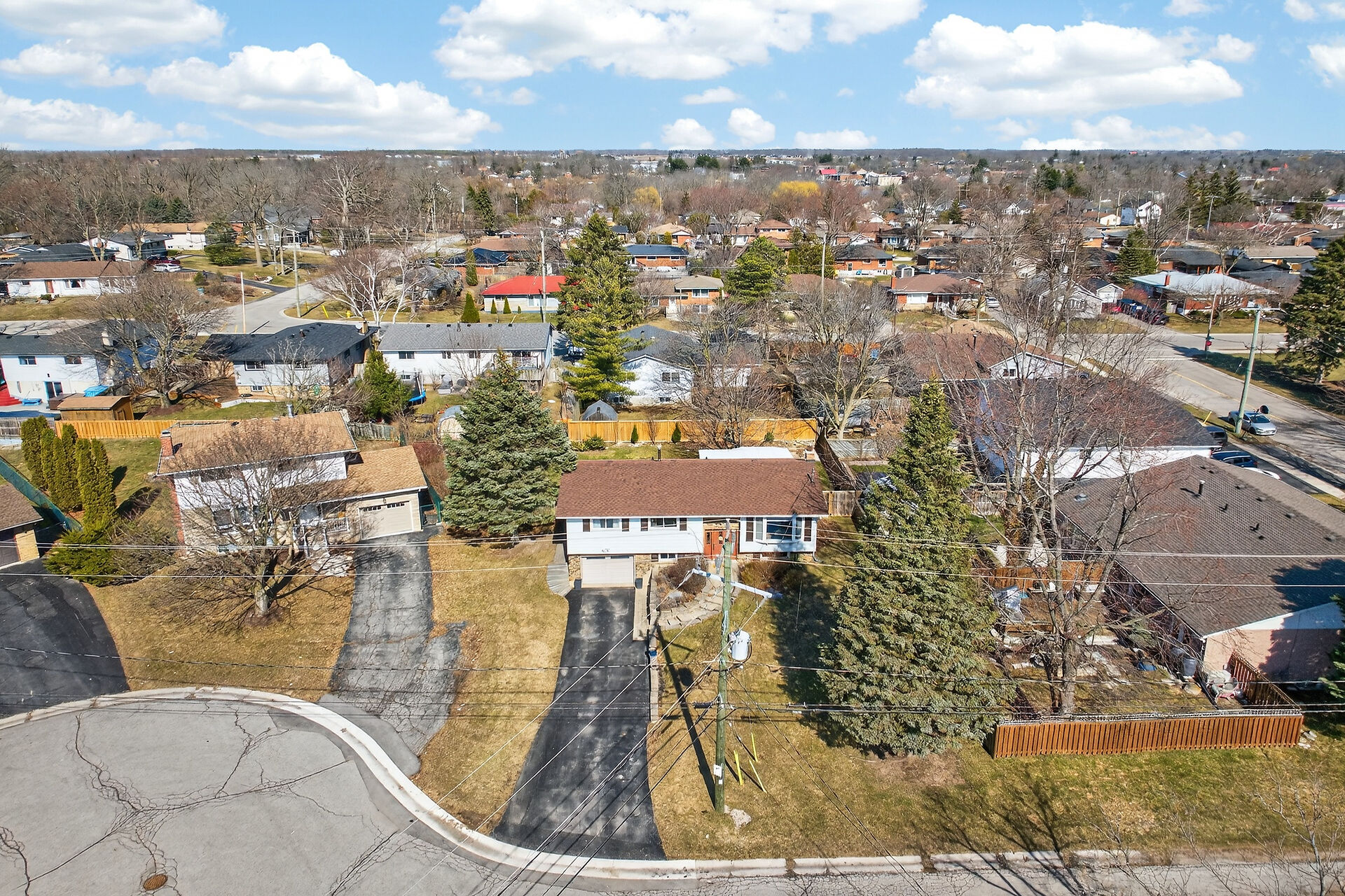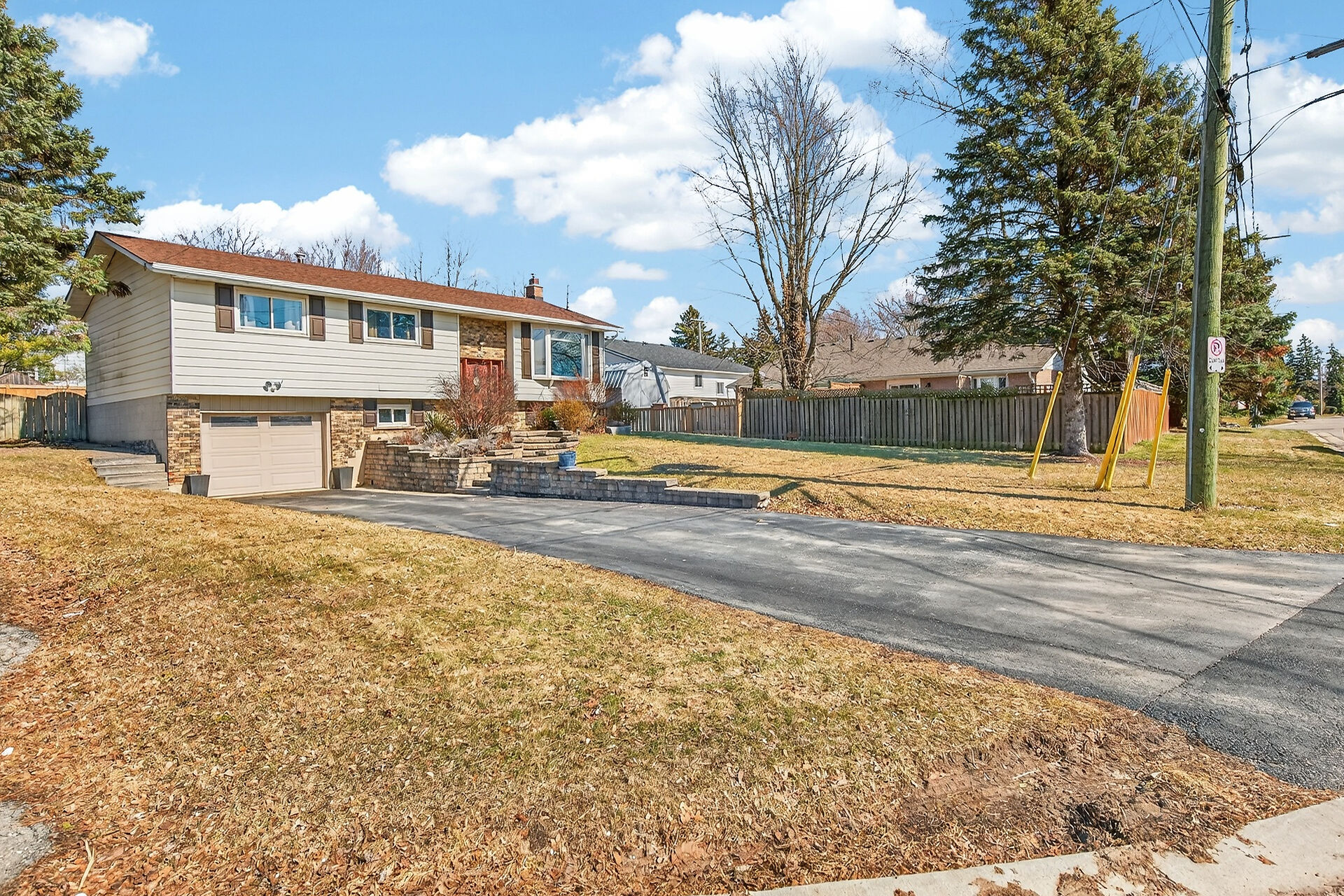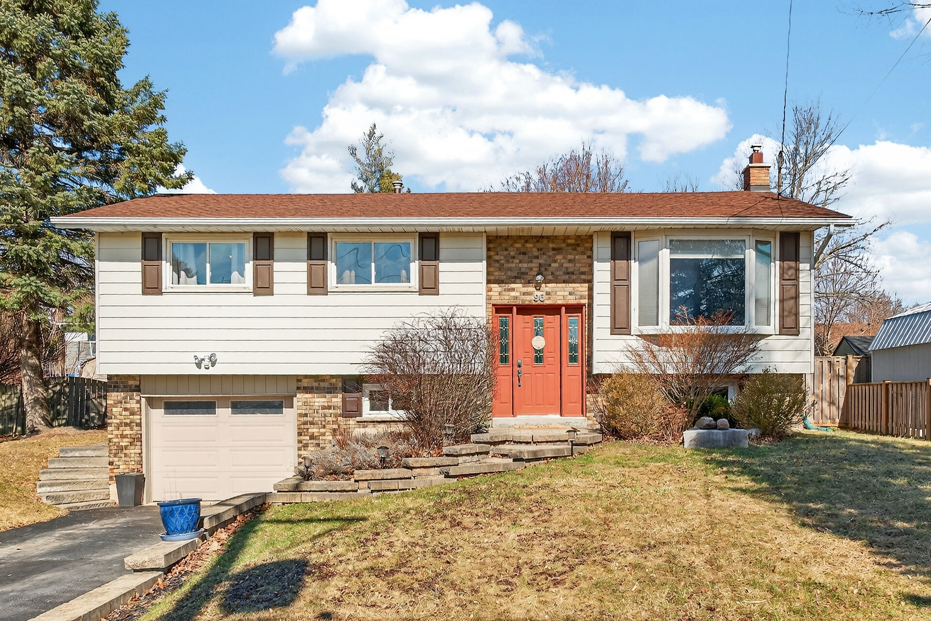 Nestled on an oversized pie-shaped lot, this well-maintained raised bungalow offers space & style. The welcoming entry features wainscoting & opens to a bright living room with hardwood floors & a bay window. The dining area has sliding doors to a 3-season sunroom overlooking the backyard. The kitchen offers abundant white cabinetry & newer appliances. The main floor includes three bedrooms & a beautifully renovated bathroom. The lower level features a large family room with gas fireplace & above-grade window, a fourth bedroom, laundry/utility room, 2-pc bath and garage access. Parking for 4+1. Close to amenities, schools, parks, trails and the Grand River. Numerous updates completed (roof '22; furnace/a/c '21 etc.)