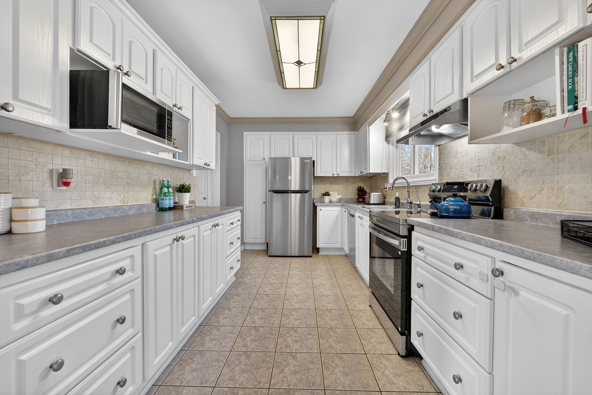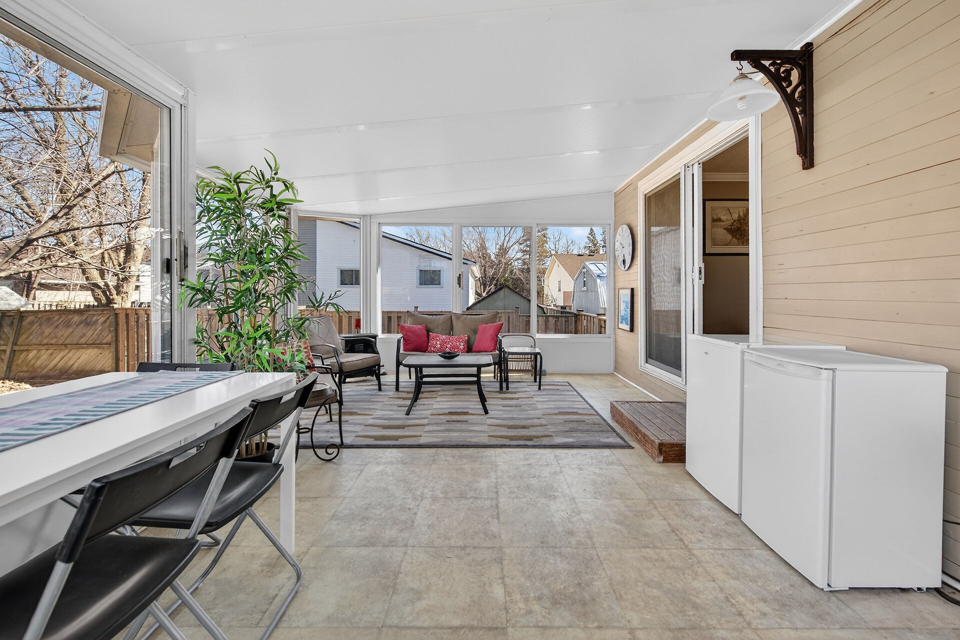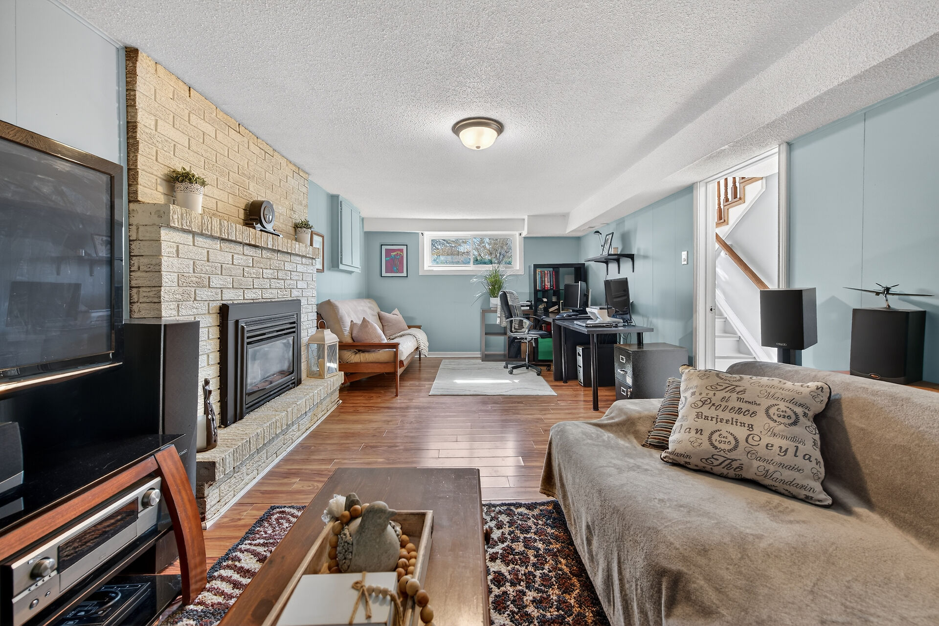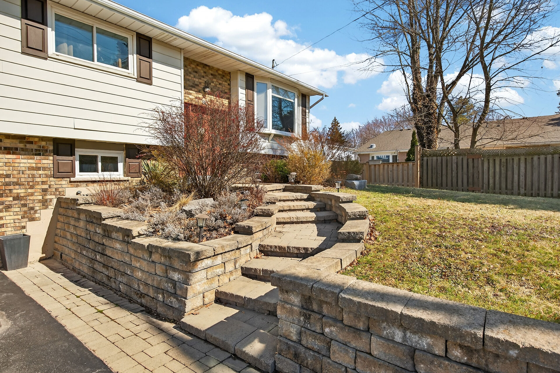 Nestled on an oversized pie-shaped lot, this well-maintained raised bungalow offers space & style. The welcoming entry features wainscoting & opens to a bright living room with hardwood floors & a bay window. The dining area has sliding doors to a 3-season sunroom overlooking the backyard. The kitchen offers abundant white cabinetry & newer appliances. The main floor includes three bedrooms & a beautifully renovated bathroom. The lower level features a large family room with gas fireplace & above-grade window, a fourth bedroom, laundry/utility room, 2-pc bath and garage access. Parking for 4+1. Close to amenities, schools, parks, trails and the Grand River. Numerous updates completed (roof '22; furnace/a/c '21 etc.)