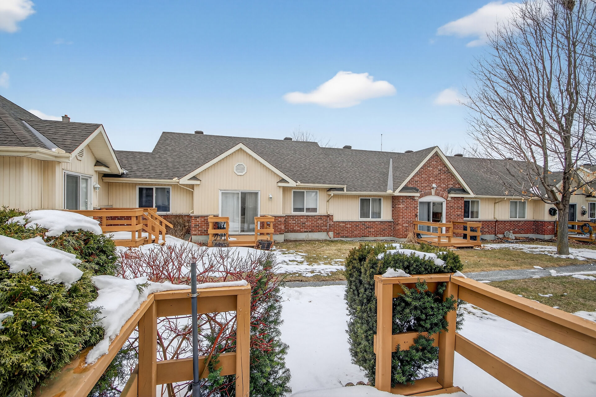Welcome to a rare 55+ life lease corner bungalow row home in heart of Stittsville! Enjoy a maintenance-free lifestyle in a well-managed adult community with low monthly fees covering property taxes, bldg insurance, lawn care, and snow removal—plus no land transfer tax. This bright, open-concept home features granite counters, a walk-in pantry, main-floor laundry, and a sunny living area leading to a private deck and landscaped courtyard. The finished basement adds a large rec room, den, and massive storage. Included is an exclusive use parking at your door. Lots of visitor parking! Walk to local shops, cafes, library, and trails. Affordable, low-maintenance living at its best. Offers welcome 10am Thursday April 9th.