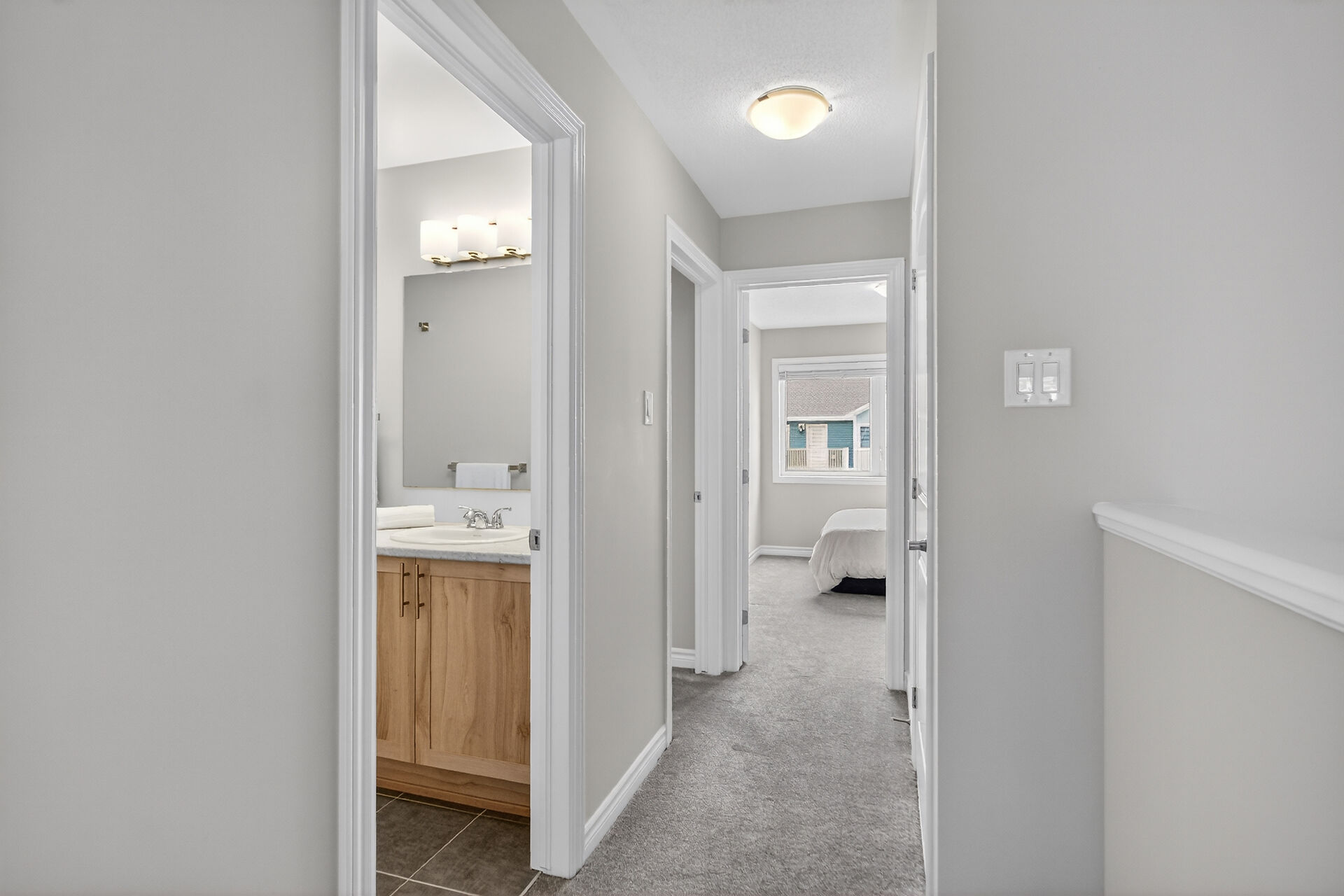 Welcome to this beautifully built (2021) 3-bedroom, 4-bath townhome in the heart of Richmond. Featuring hardwood floors and a bright open-concept layout, the main level offers spacious living and dining areas, a 2-piece bath, and a gourmet kitchen with granite countertops, stainless steel appliances, upgraded cabinetry, backsplash, and valance lighting. Upstairs includes a versatile flex space, three bedrooms, full bath, and laundry. The primary suite boasts a walk-in closet and private ensuite. The finished lower level offers a large family room, new 3-piece bath, and storage. Enjoy a large deck and double-car garage, just steps to parks, schools, and amenities.
