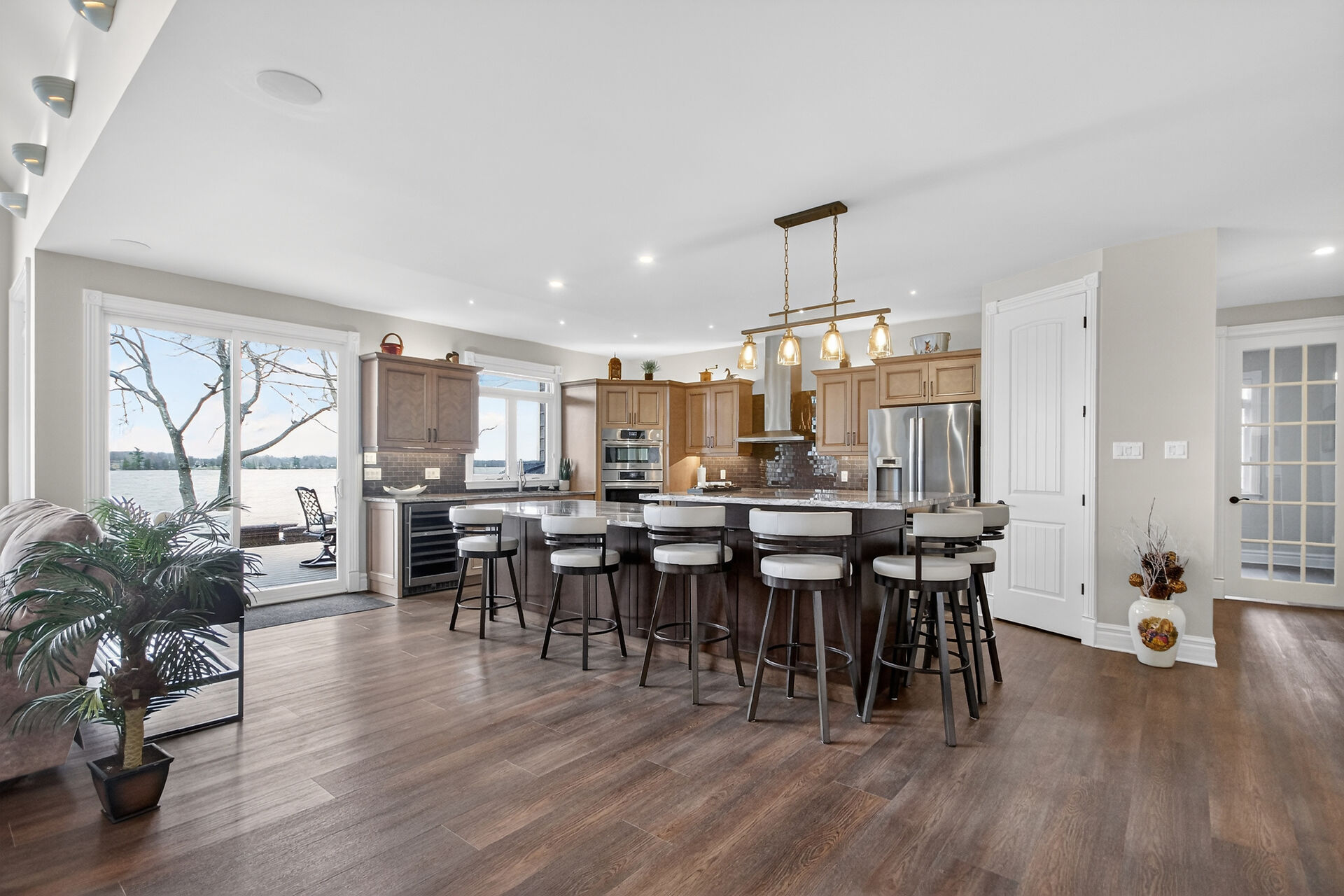 Welcome to this stunning Mississippi Lake custom-built bungalow offering over 2,900 sq ft of refined living, designed w/ all the luxury and craftsmanship you would expect in a high-end home. Ideally located just a short drive from Carleton Place, w/easy access to Highway 7, this exceptional for commuters seeking both convenience and tranquility.Set on a beautifully landscaped waterfront lot with 100 feet of shoreline to enjoy breathtaking sunrises and all-day natural light.The outdoor space is truly an entertainer's dream-featuring a spacious deck, a sitting area, a covered porch, and a 26-foot dock with custom stairs. 3+1 bdrm, 2.5 bath, landscaped, Generac, attached garage with bonus room above and so much more!