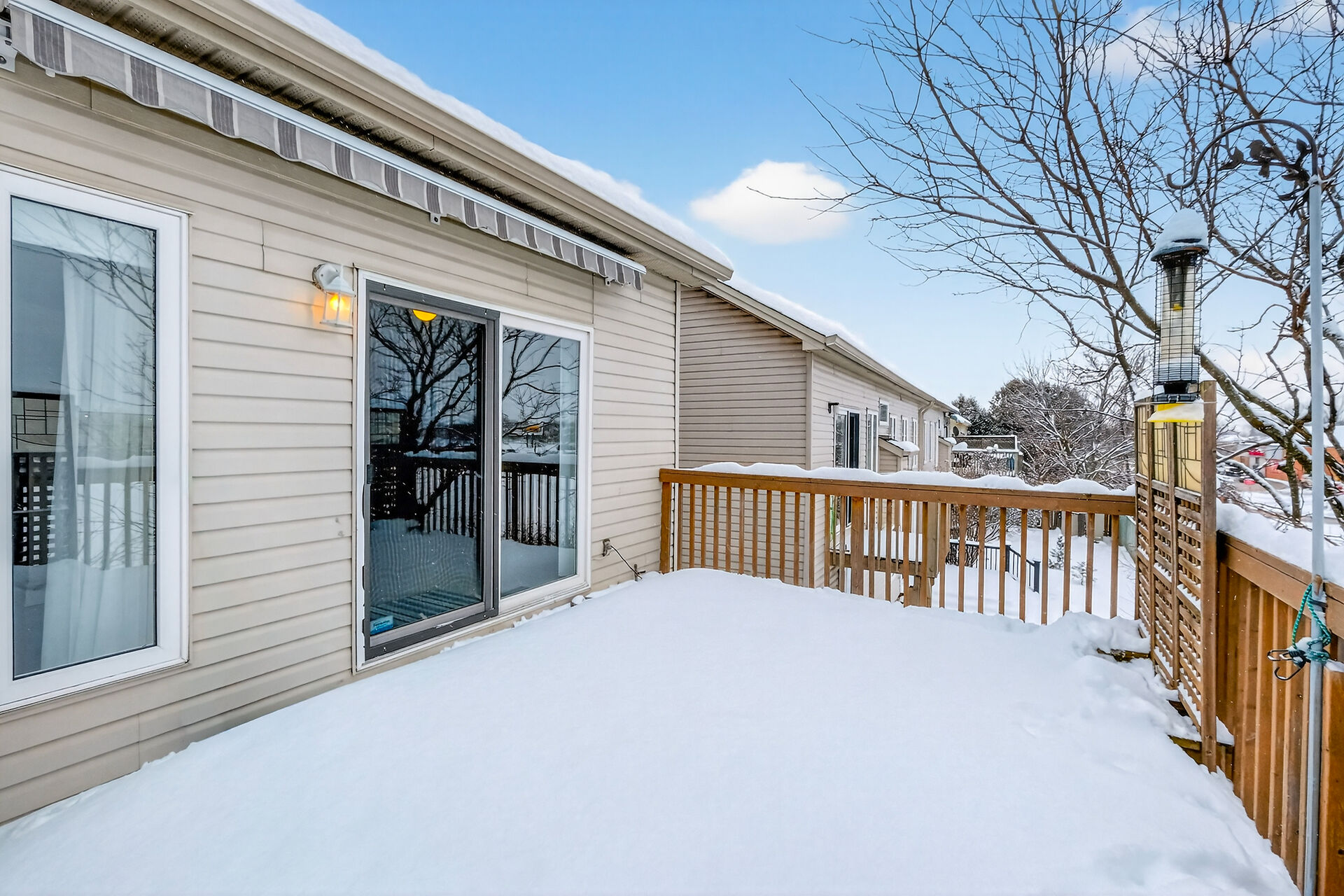 Kanata's peaceful adult community. With 3 cozy bedrooms and 2 bathrooms, this main floor unit rental exudes warmth and charm. The vaulted ceiling makes everything feel more spacious and brighter! The living room has large windows flanking the gas fireplace; ideal for relaxation and entertaining. Open kitchen has tons of cupboards and counterspace, pantry, desk and 5 appliances. Sliding patio doors lead to your private deck, making barbecues so much easier; and, no rear neighbours! The primary bedroom has a walk-in closet, ensuite with separate shower and soaker tub. Bedroom two with window bench seat has a 4-piece ensuite. Bedroom three is conveniently located at front of house - great office/den.